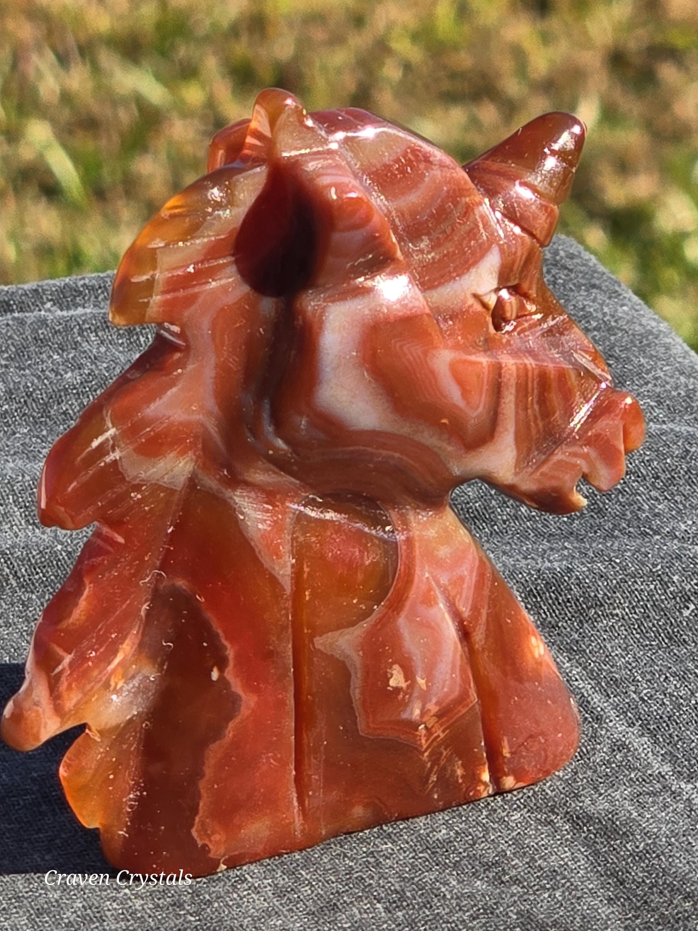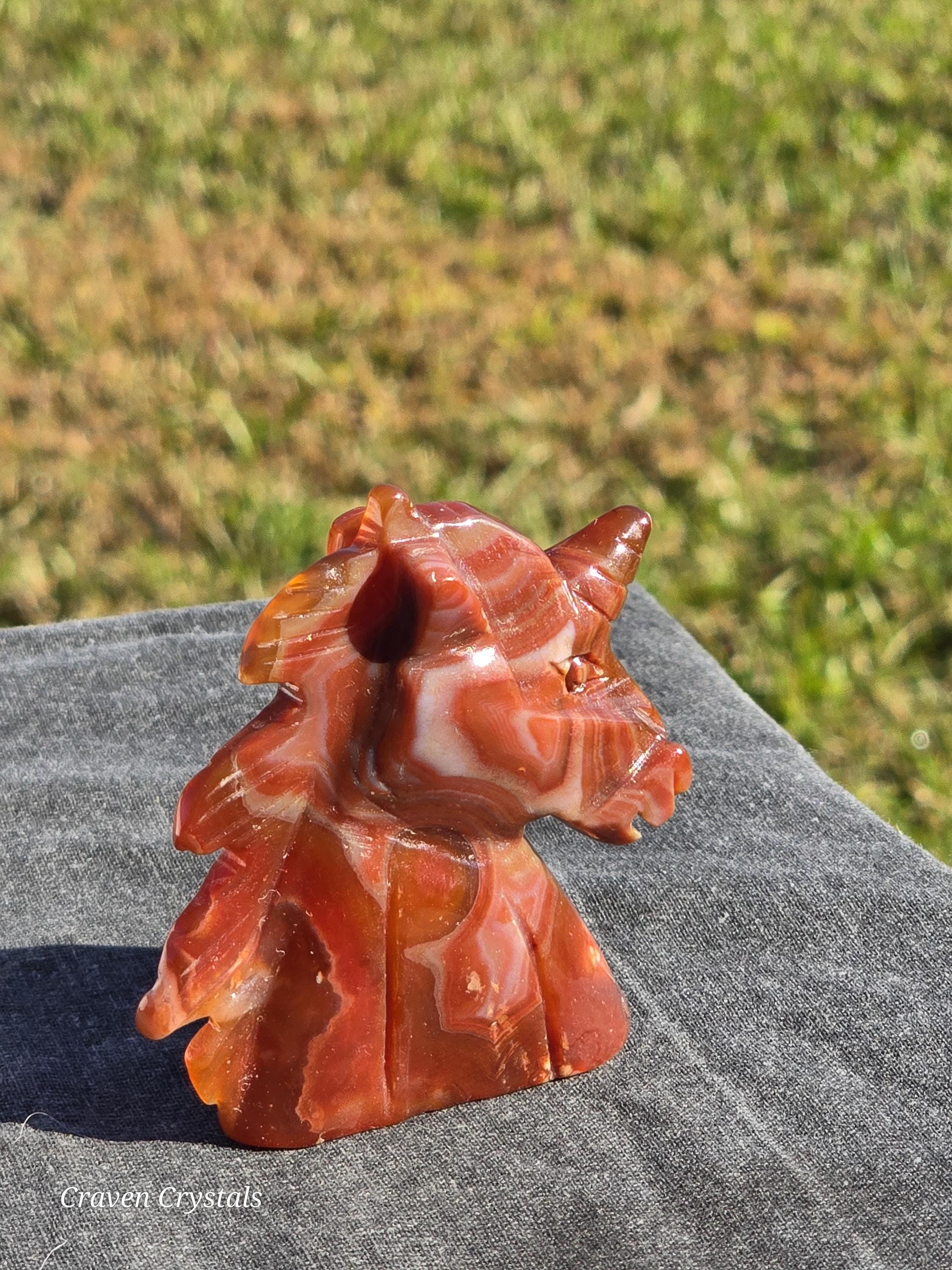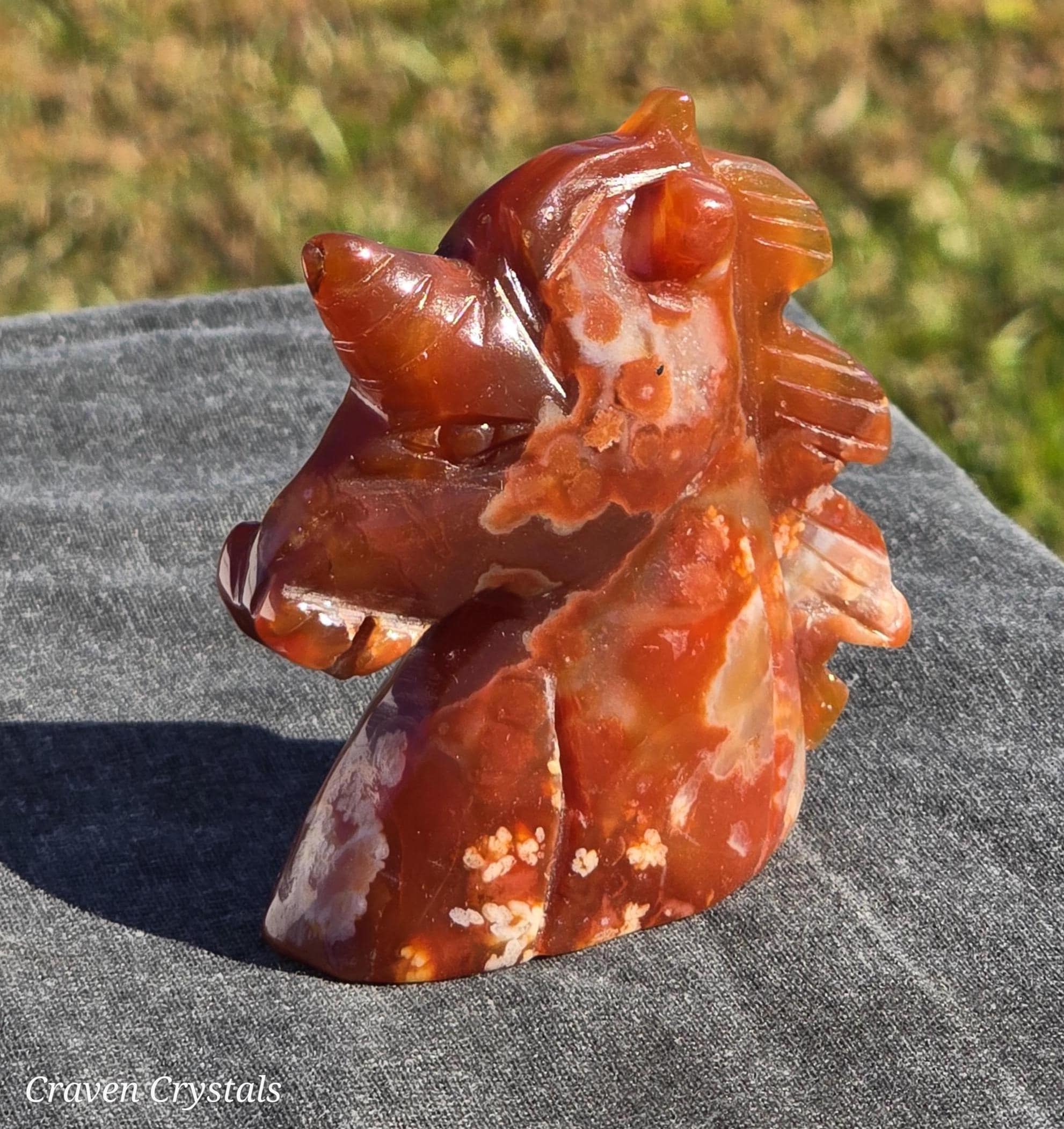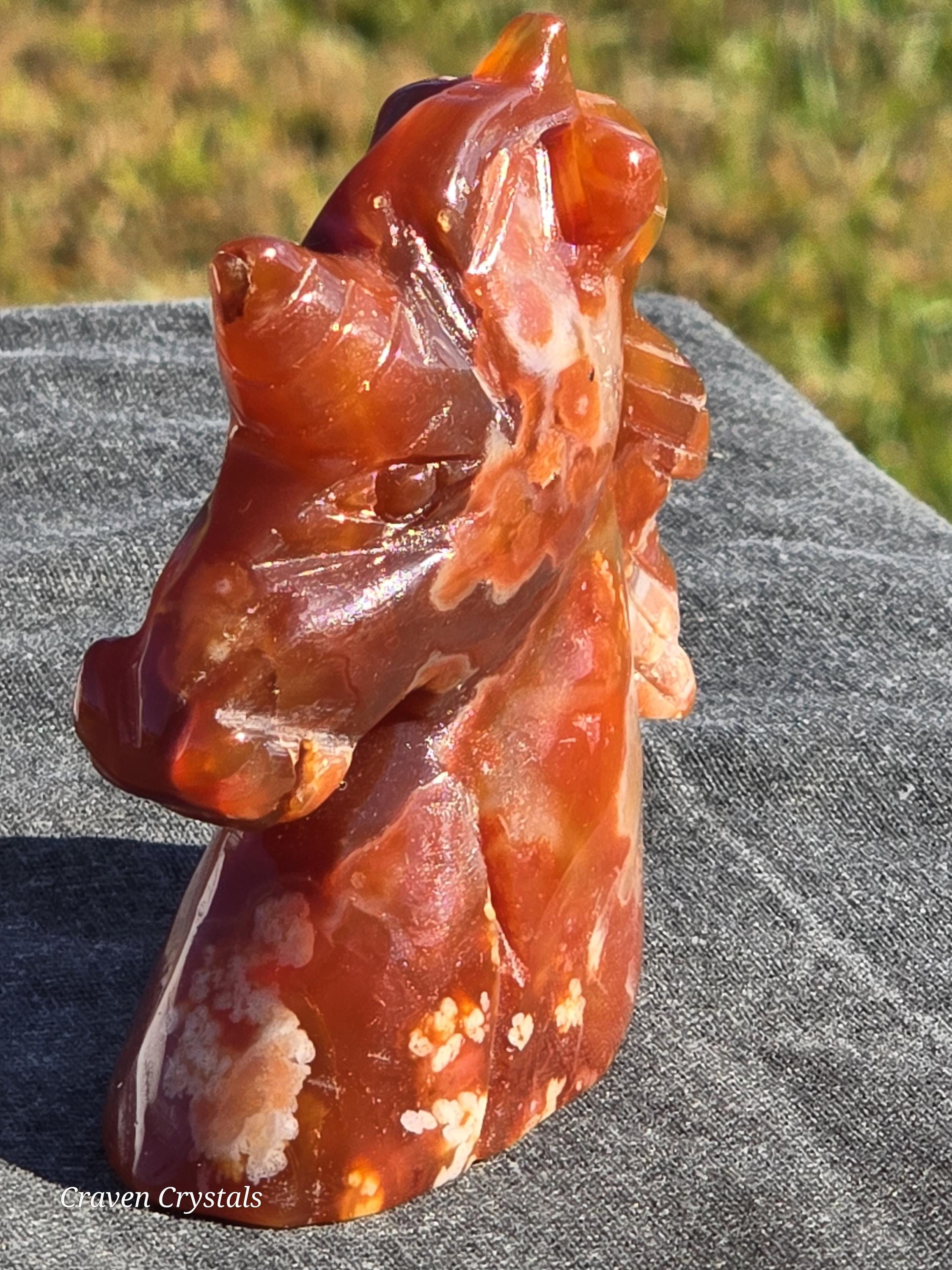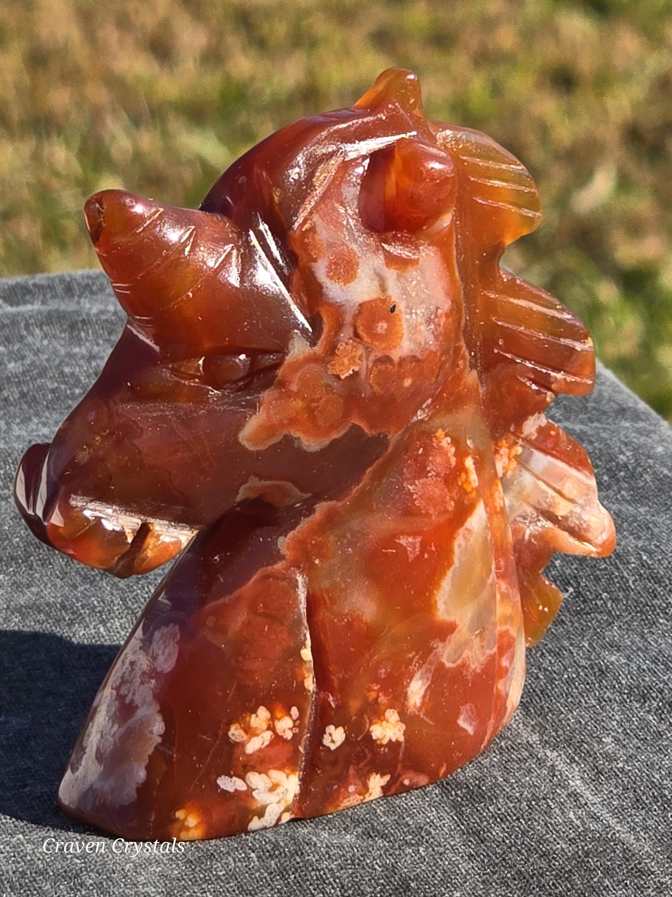 Red Carnelian Flower Agate Crystal Unicorn Bust