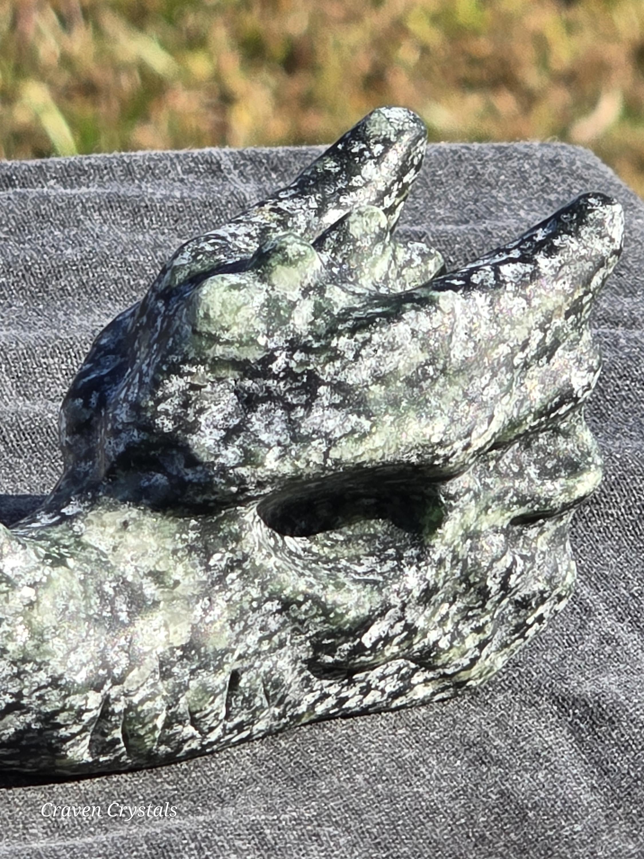 Serpentine jade is highly regarded for its grounding, healing, and spiritual properties. It is associated with renewal, transformation, and connection to earth energies. Known as a cleanser, serpentine jade is believed to clear stagnant energy and release blocked emotions. It promotes growth, encouraging users to shed old habits and embrace change.