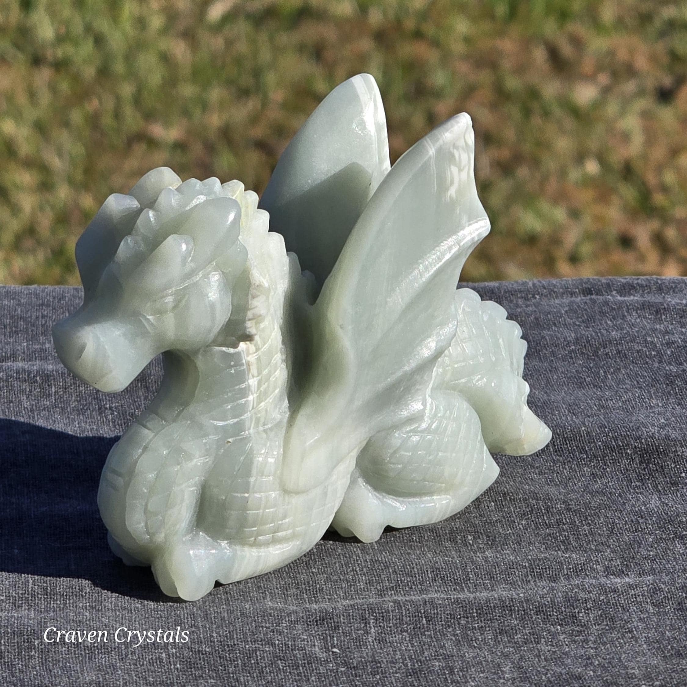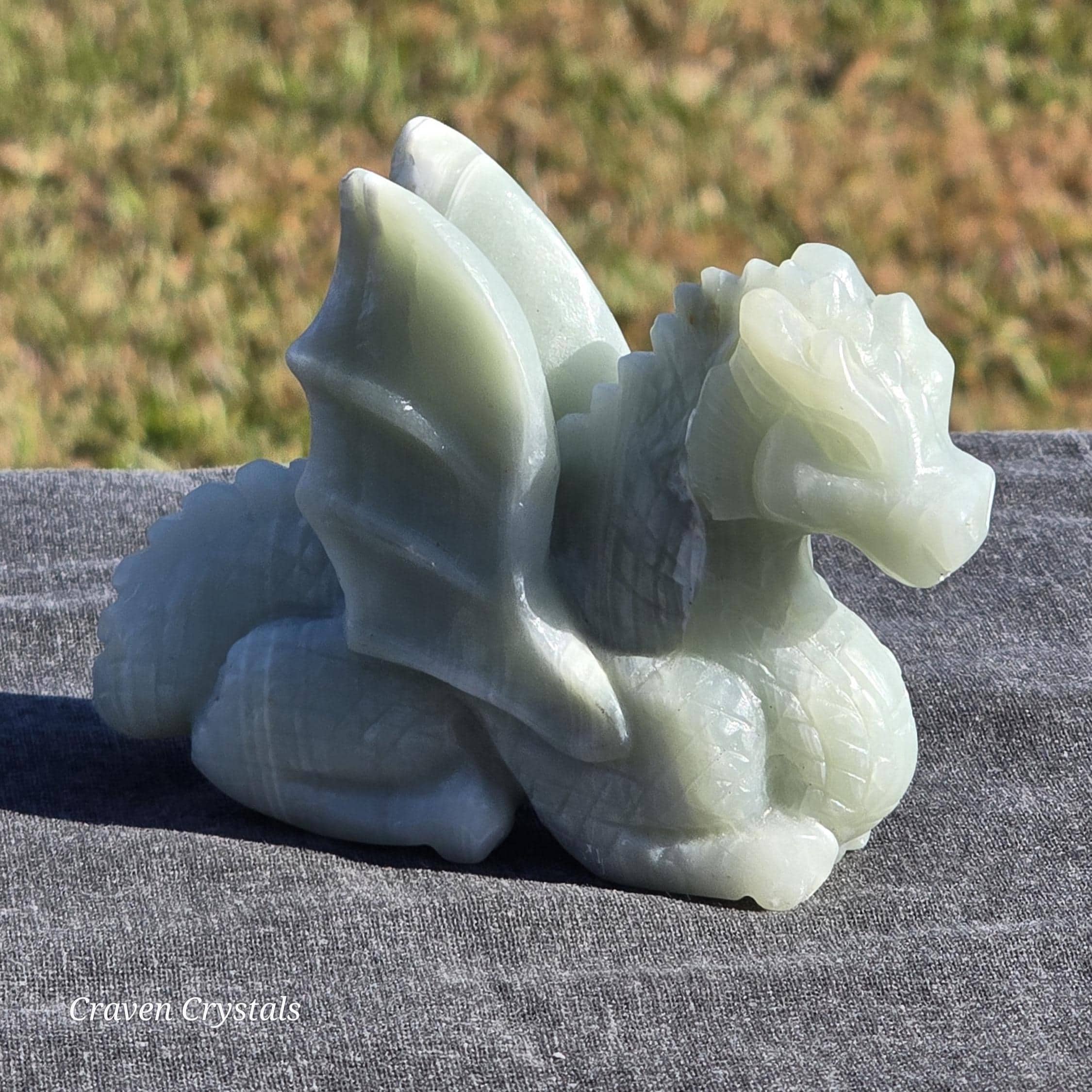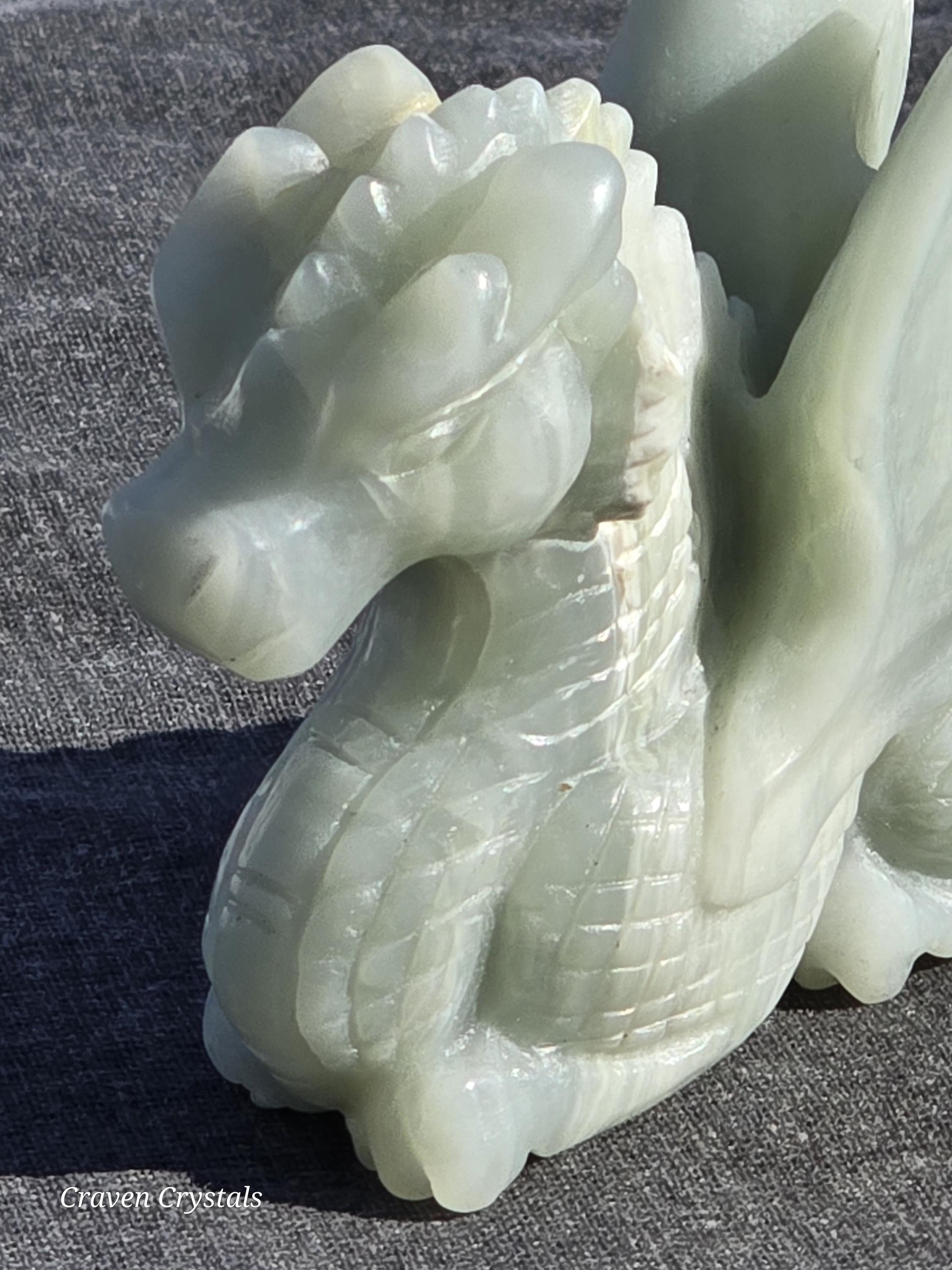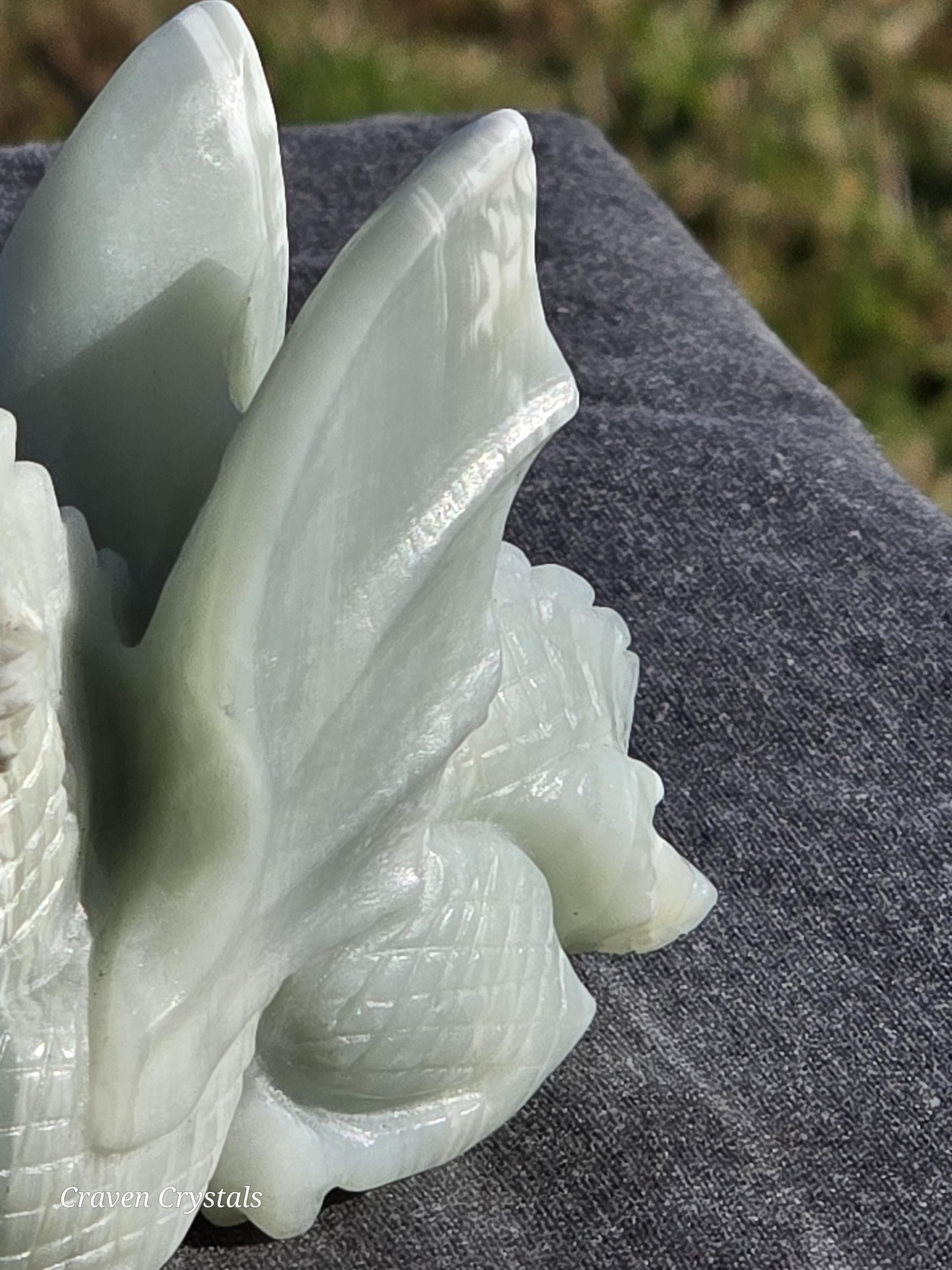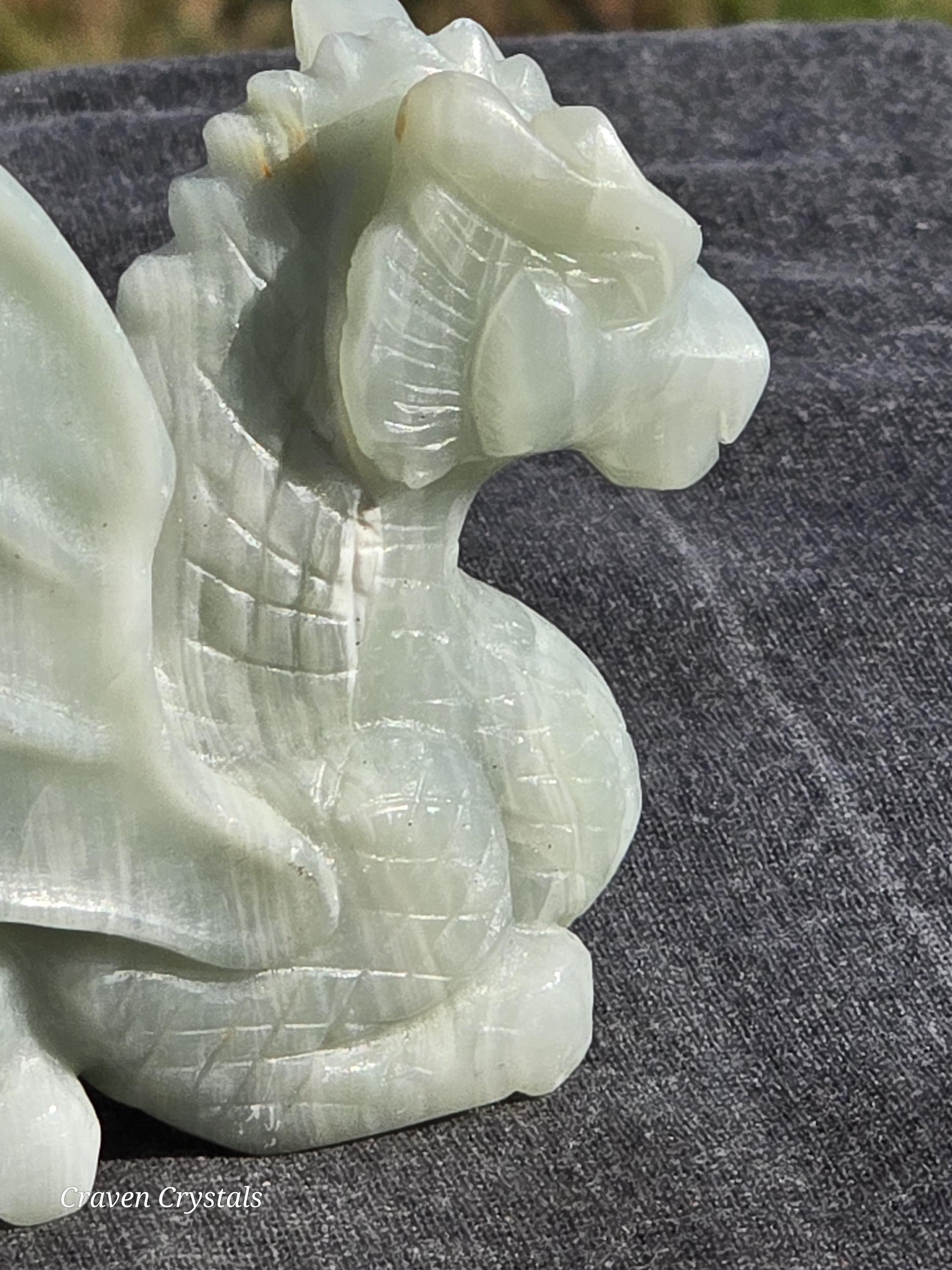 Beautiful pastel blue Caribbean Calcite hand carved Crystal Dragon