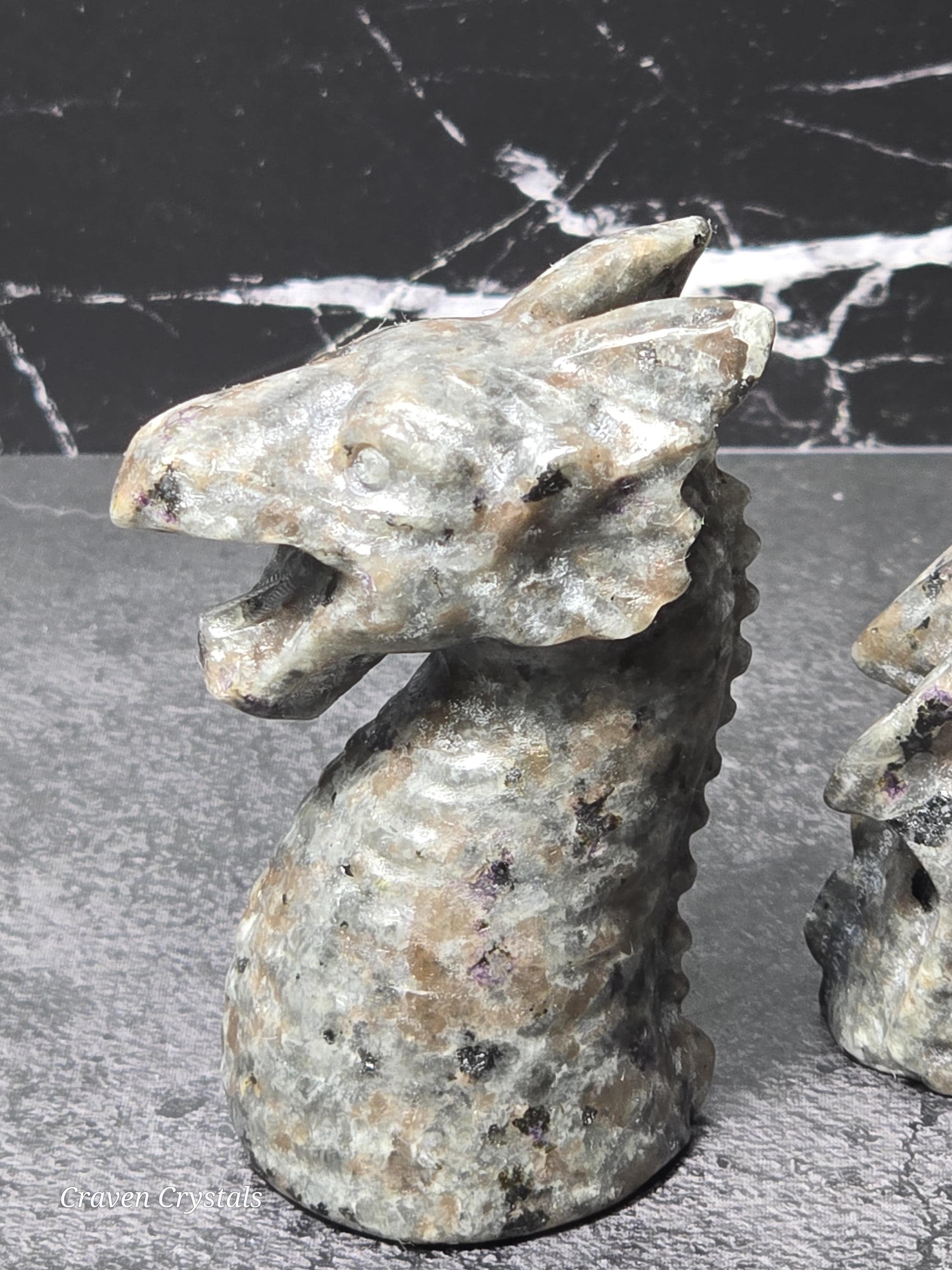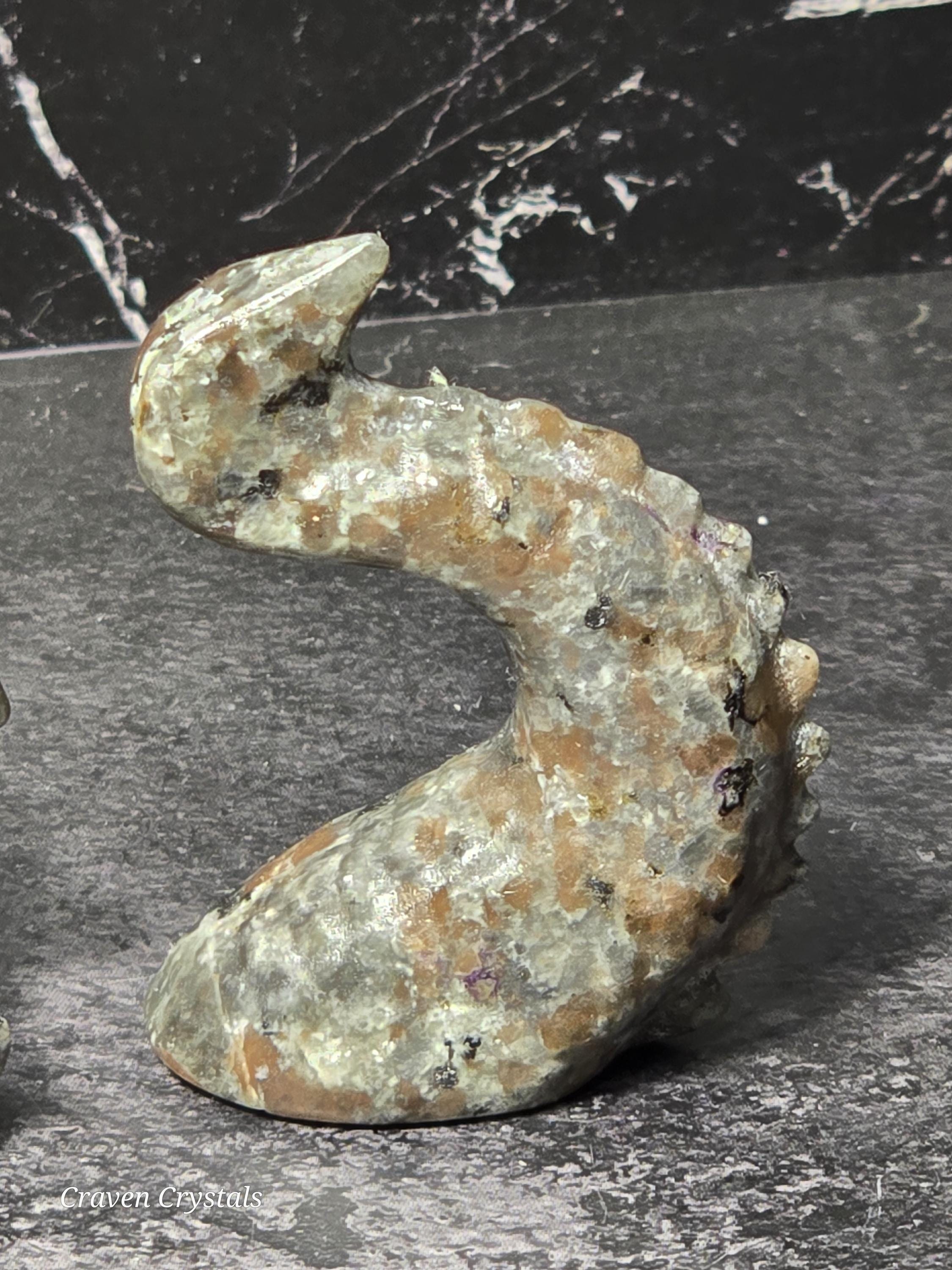 Dragons are often seen as powerful and majestic creatures in mythology and folklore. Dragon-shaped crystals may be associated with attributes like strength, courage, and protection. They can serve as symbols of personal empowerment.