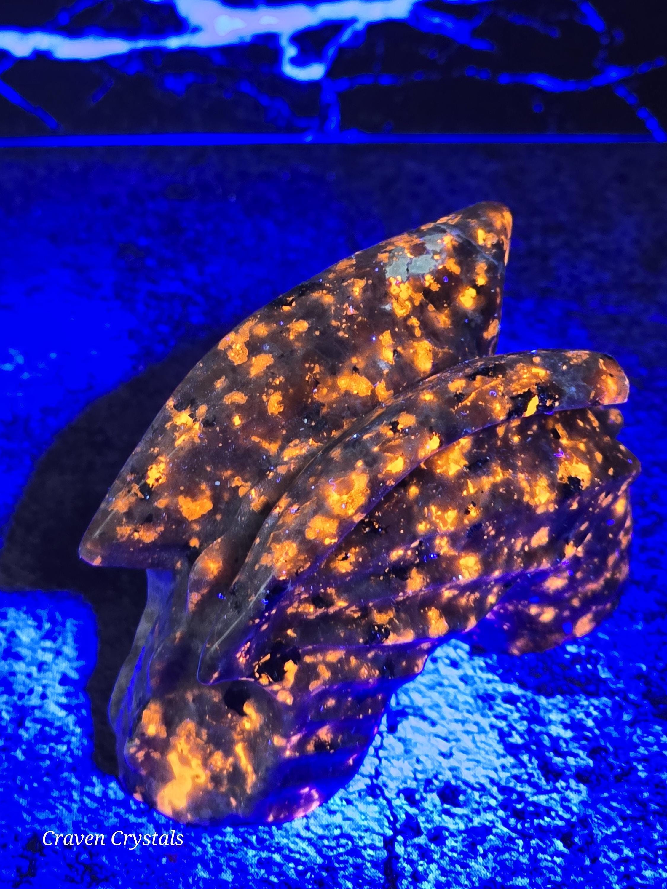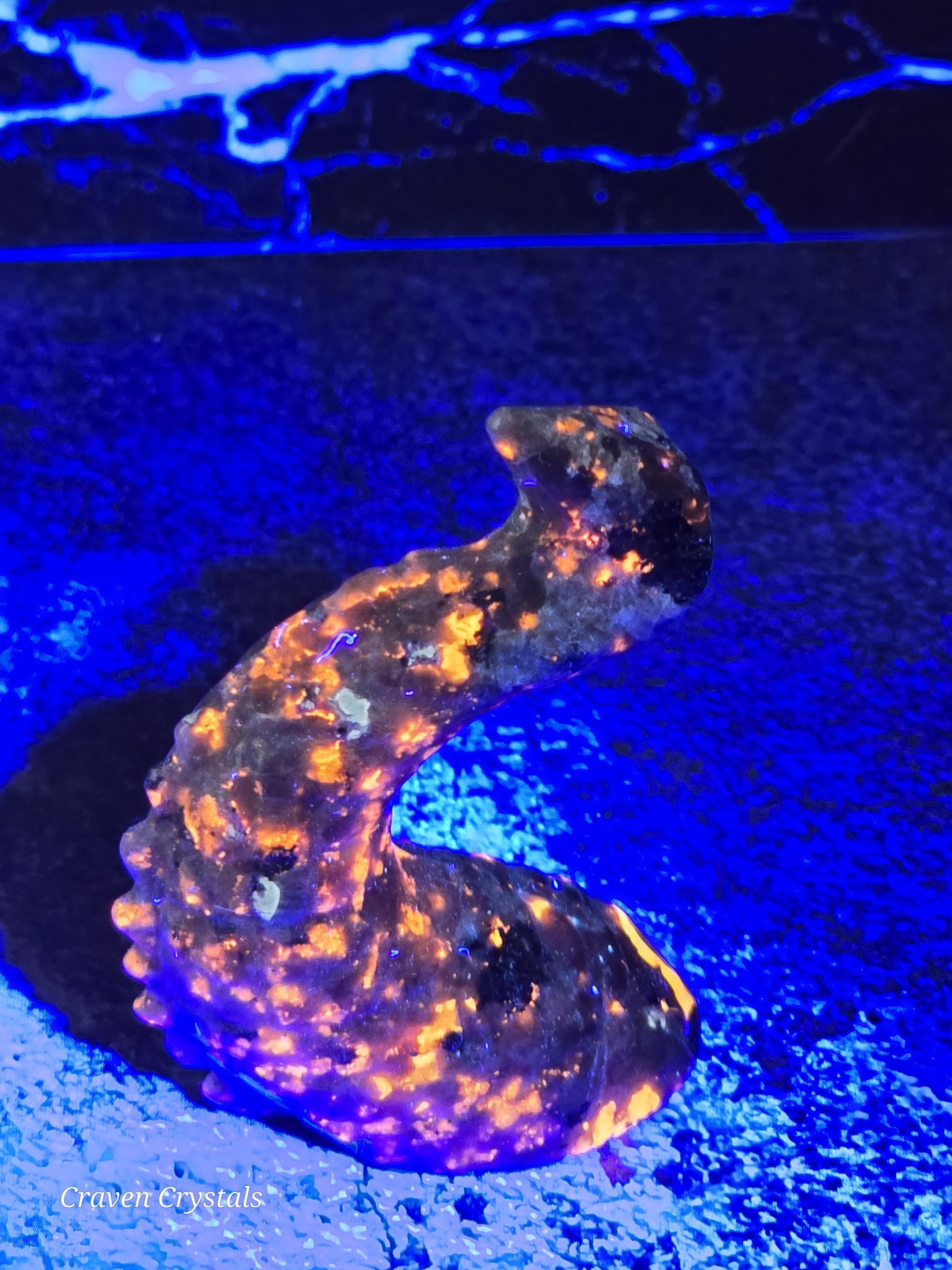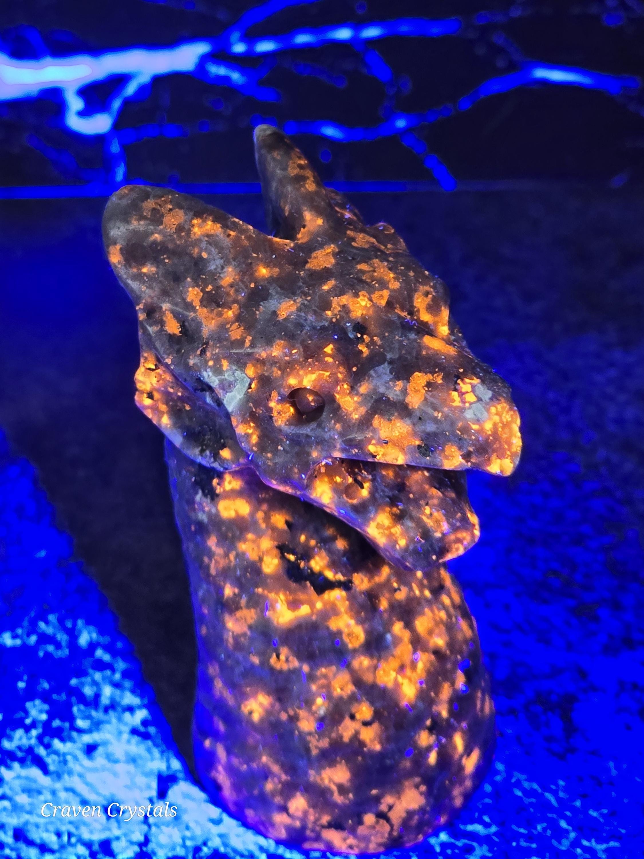 UV reactive Yooperlite Crystal Water Dragon Carving.