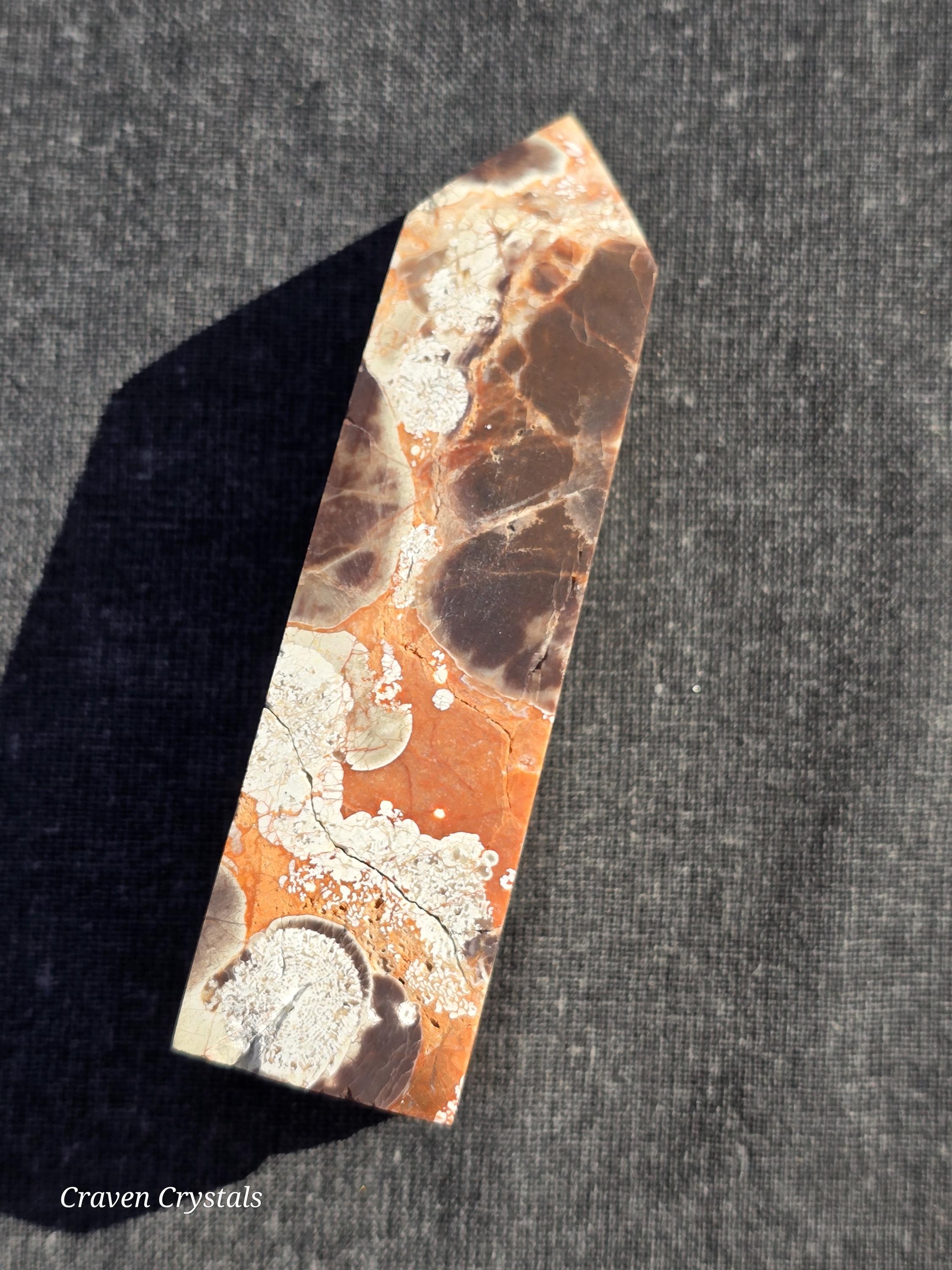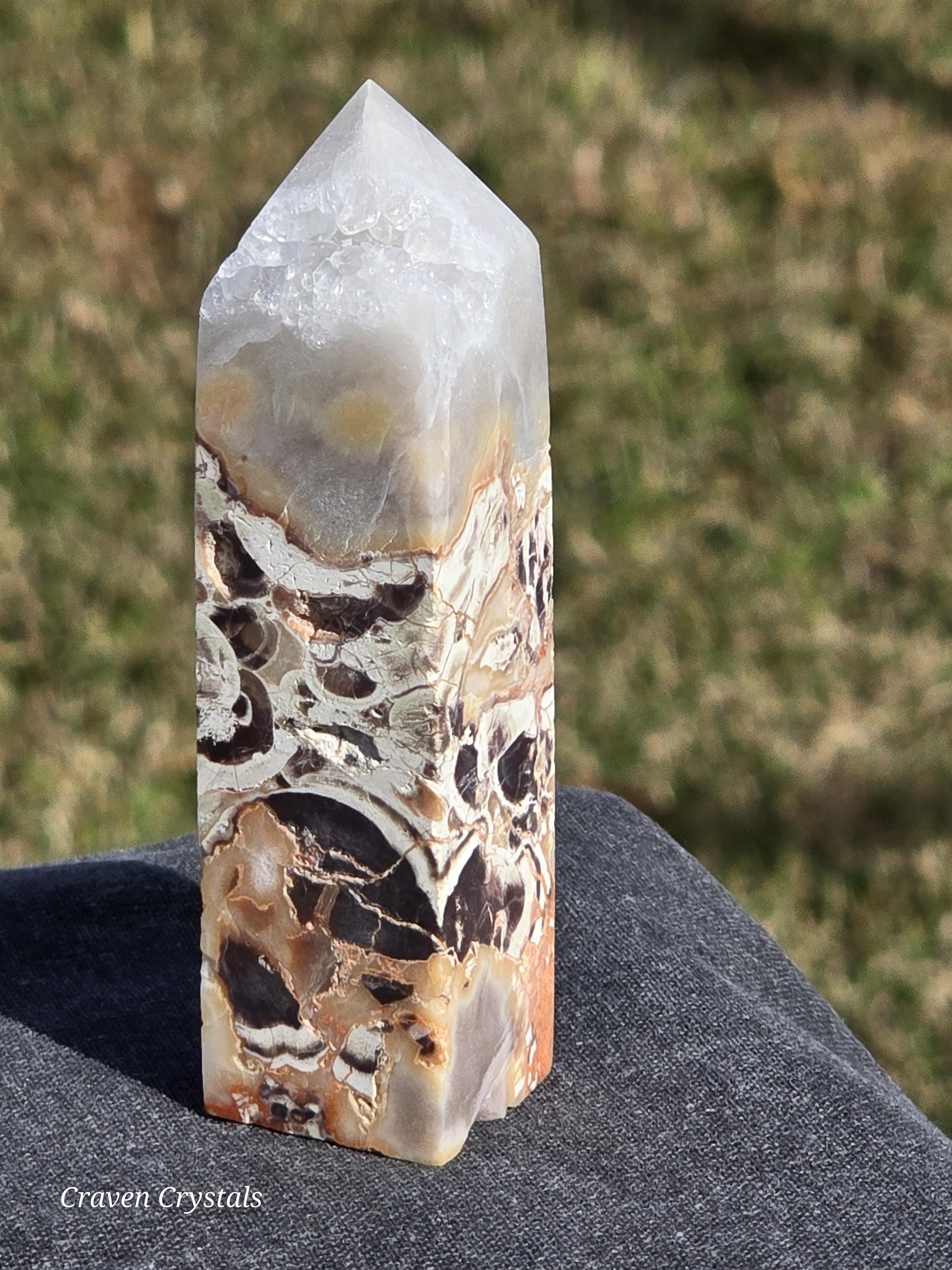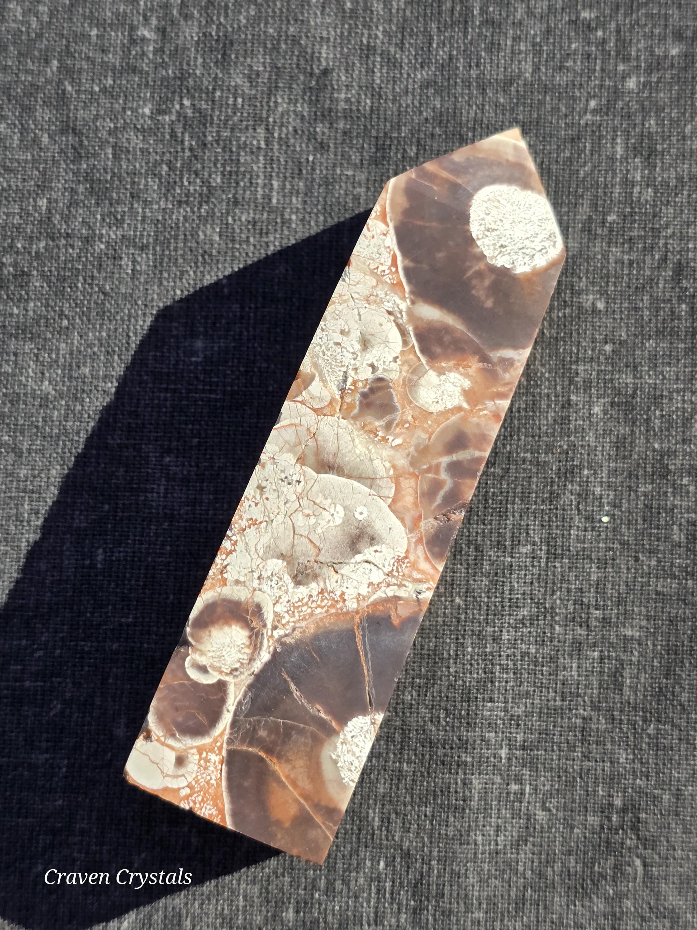 Money agate, also known as Bird Eye Rhyolite Jasper, Crystal Towers