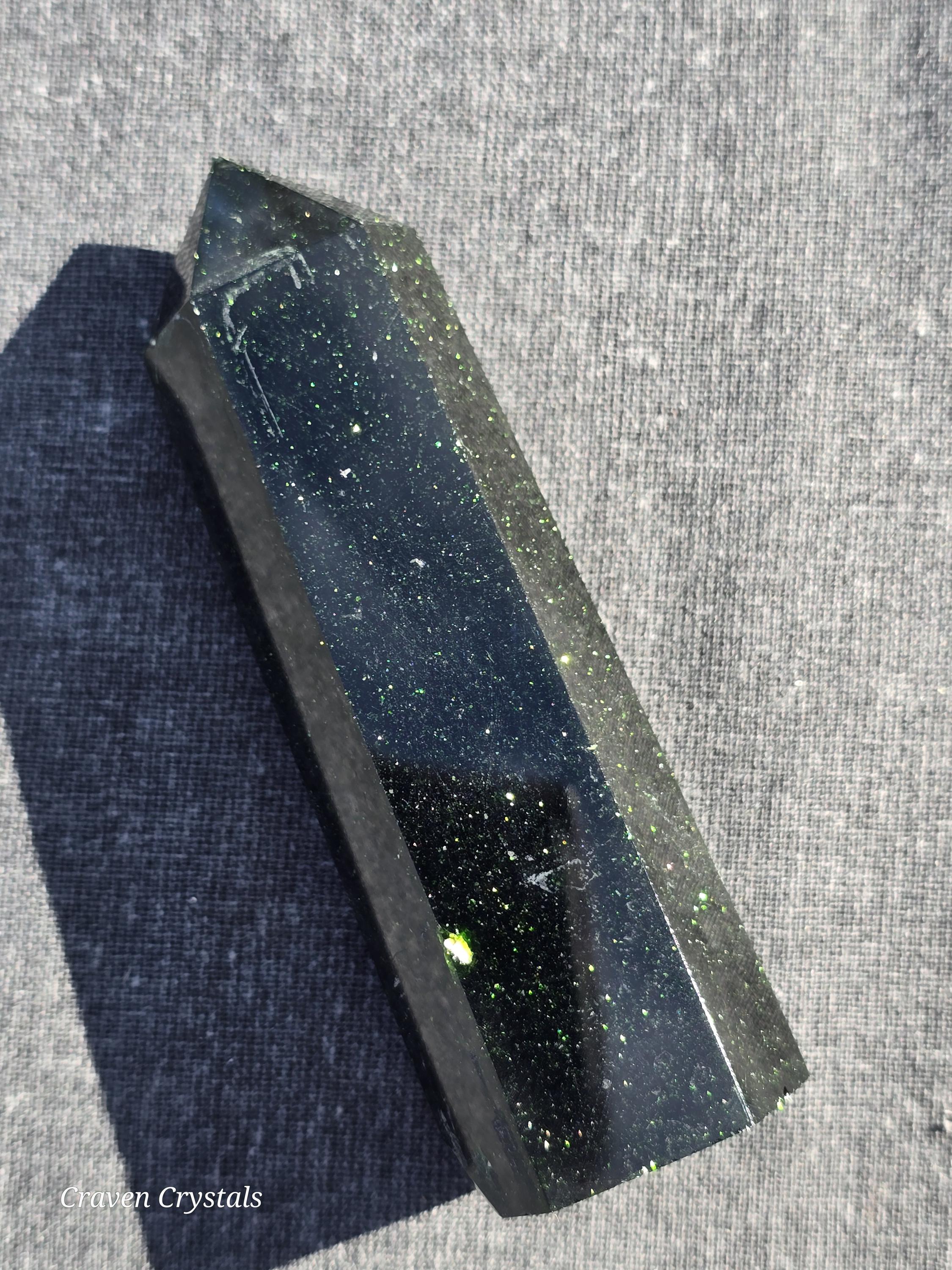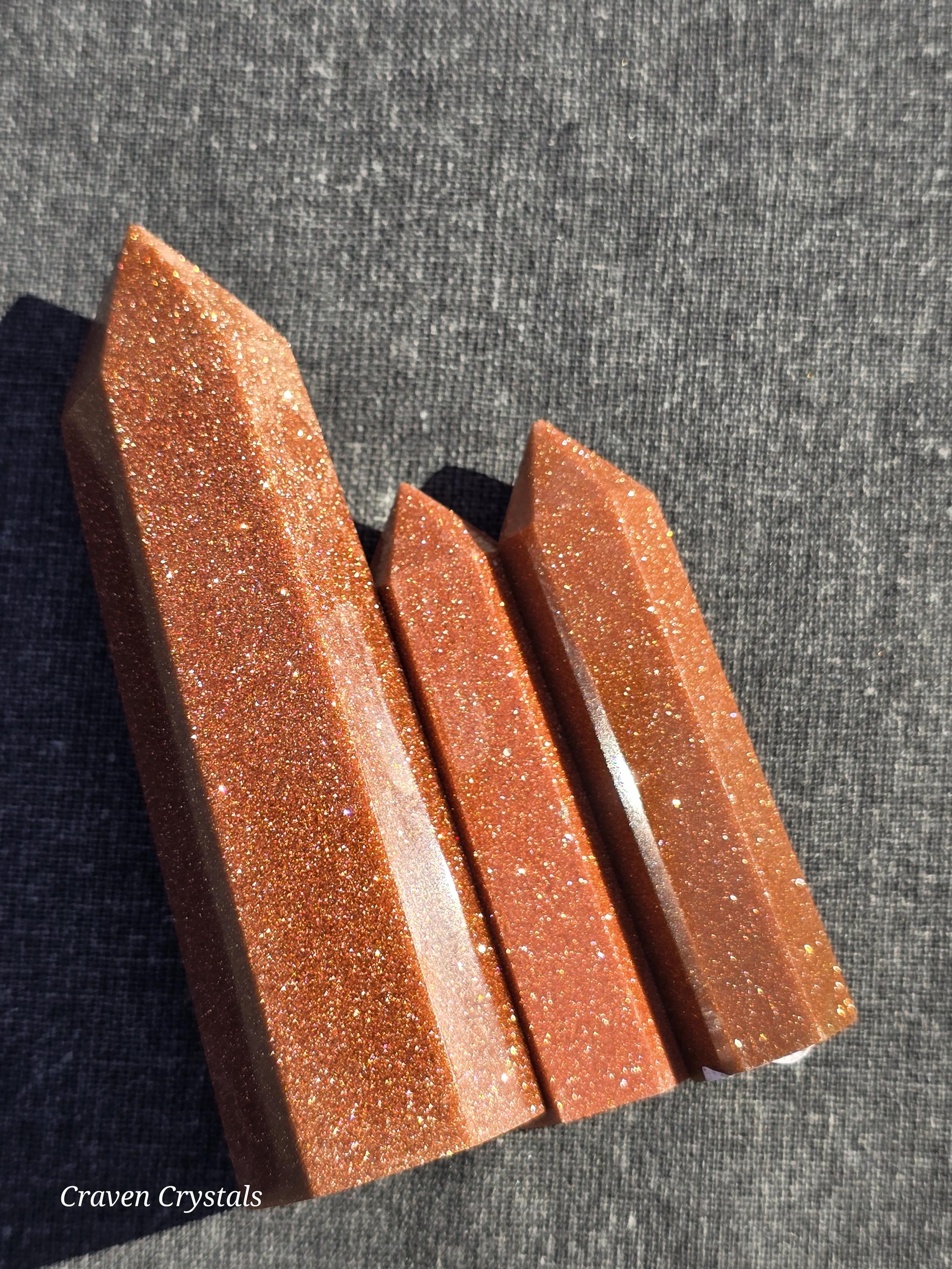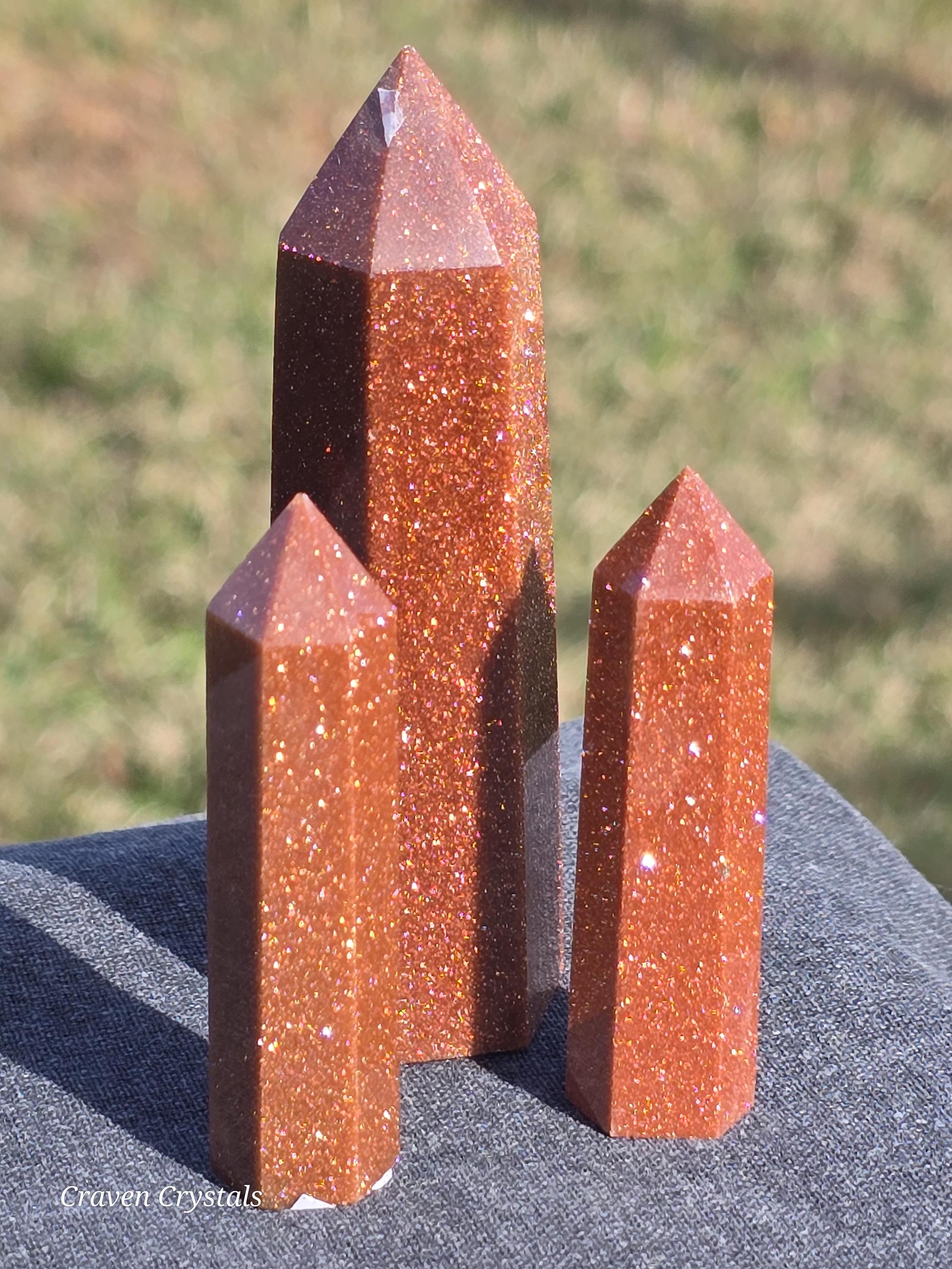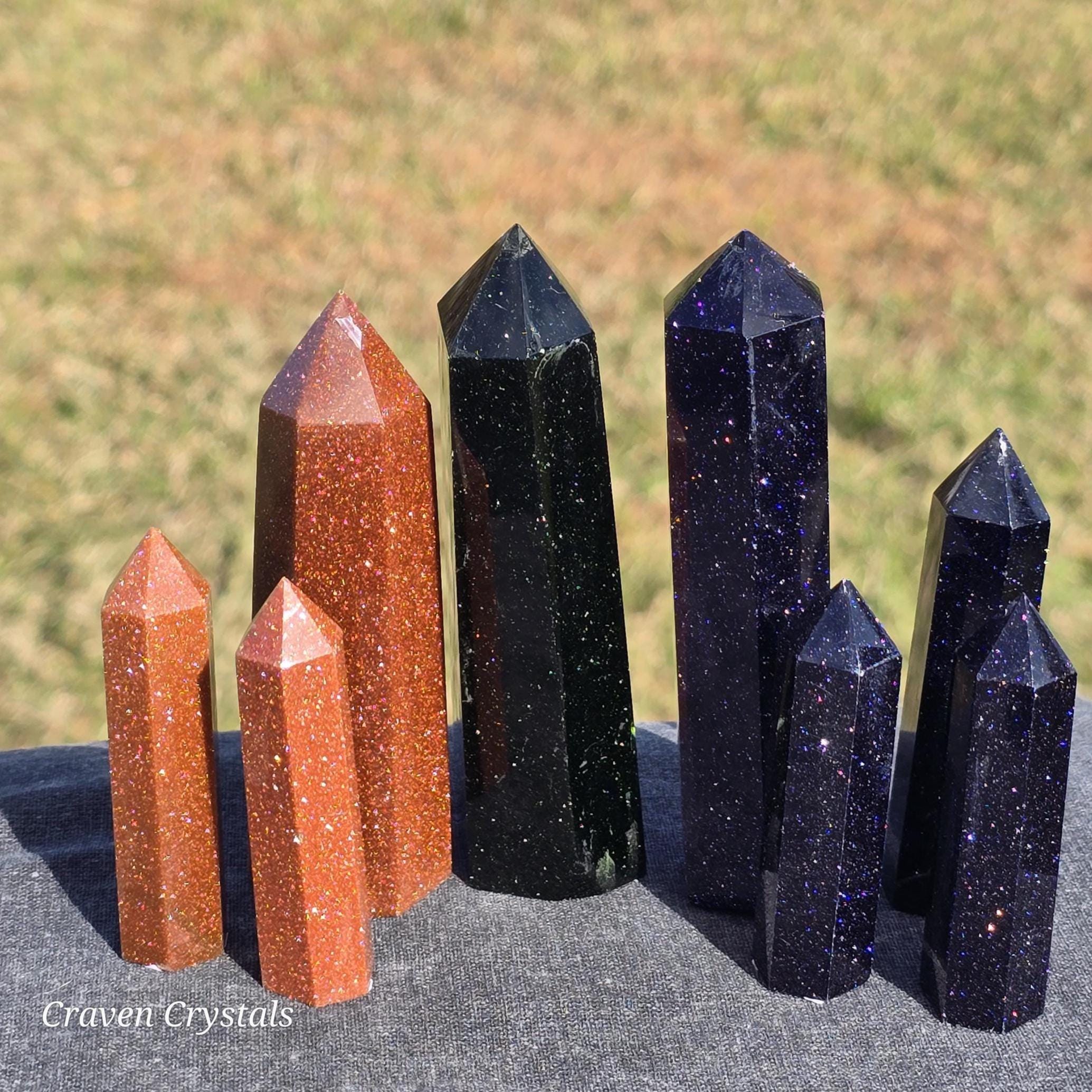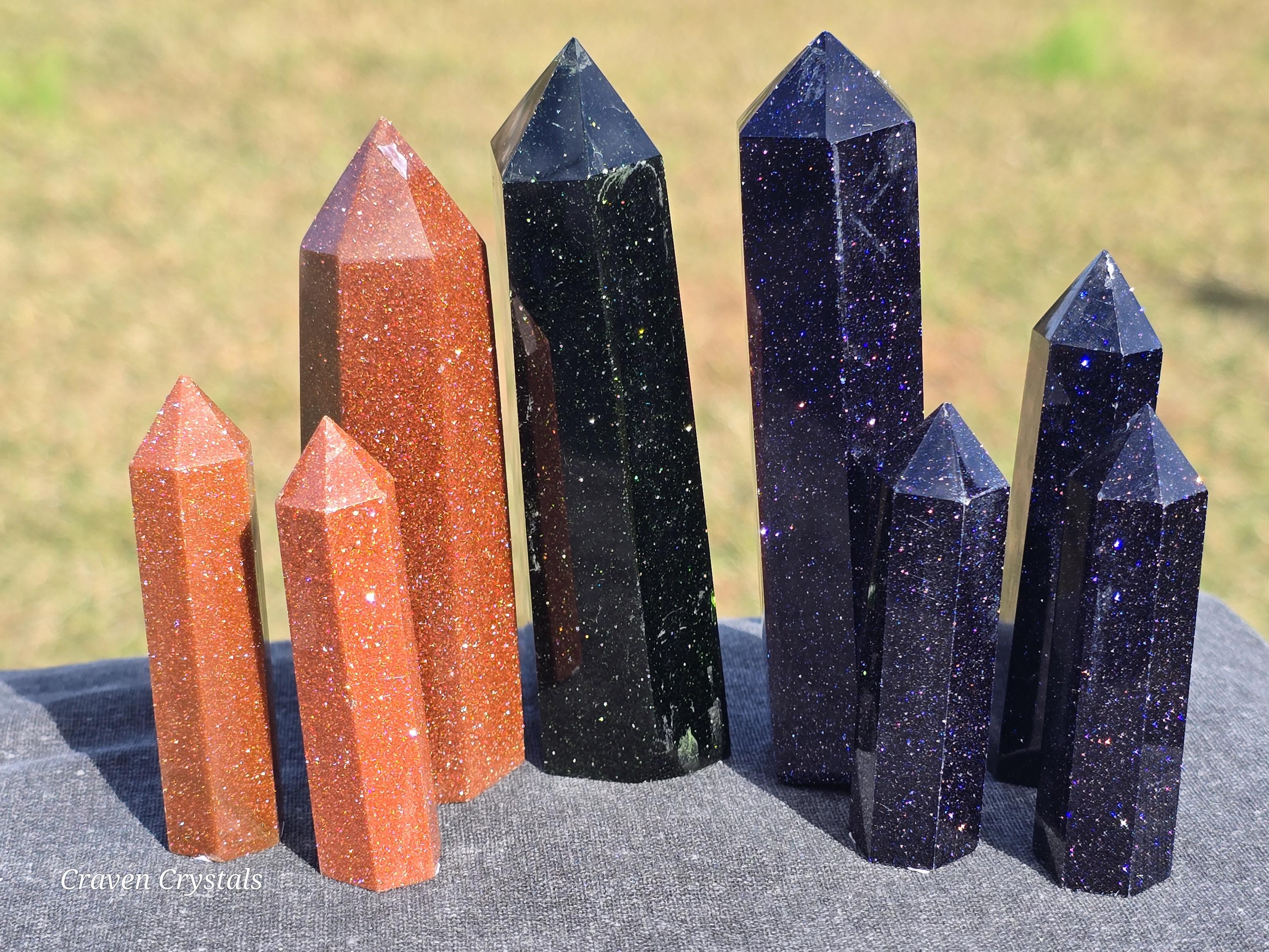 Sandstone, more commonly known as Goldstone, Crystal Towers, a shimmering, glass-based material created through human craftsmanship.
