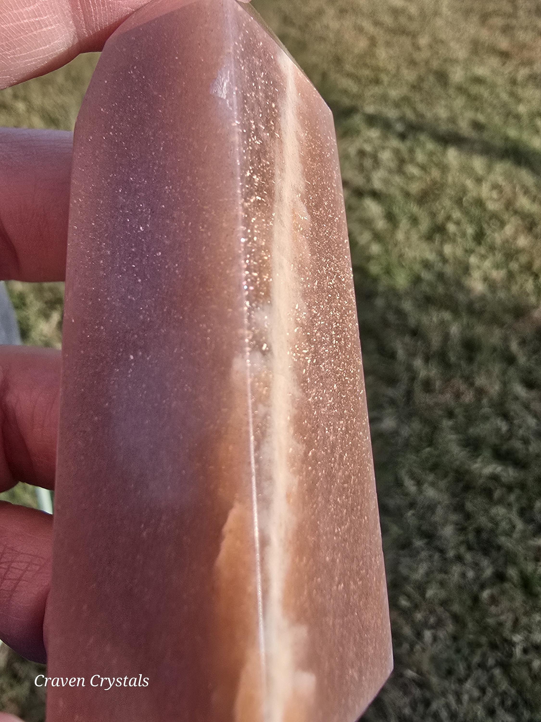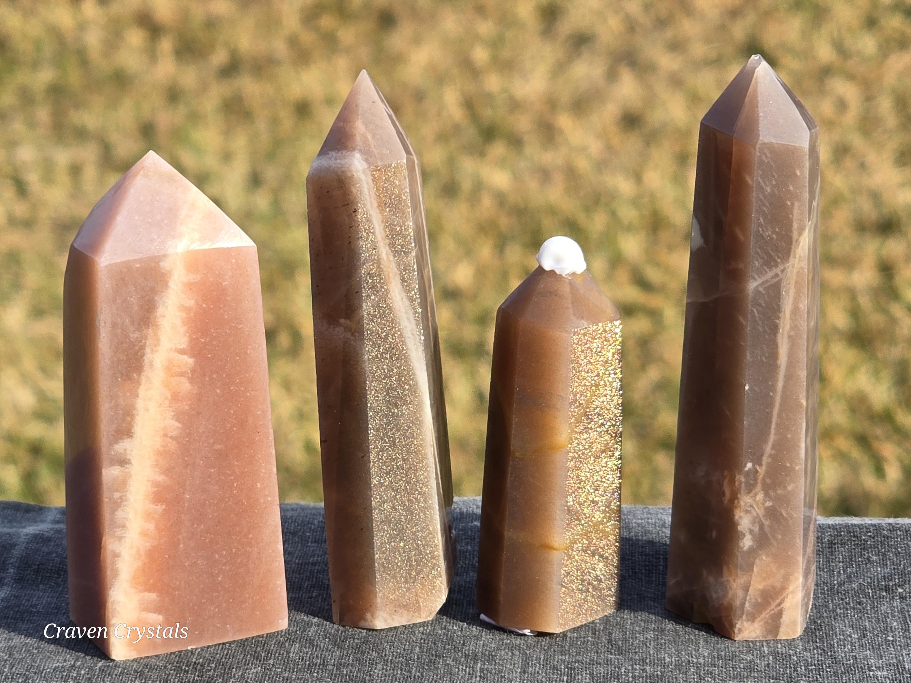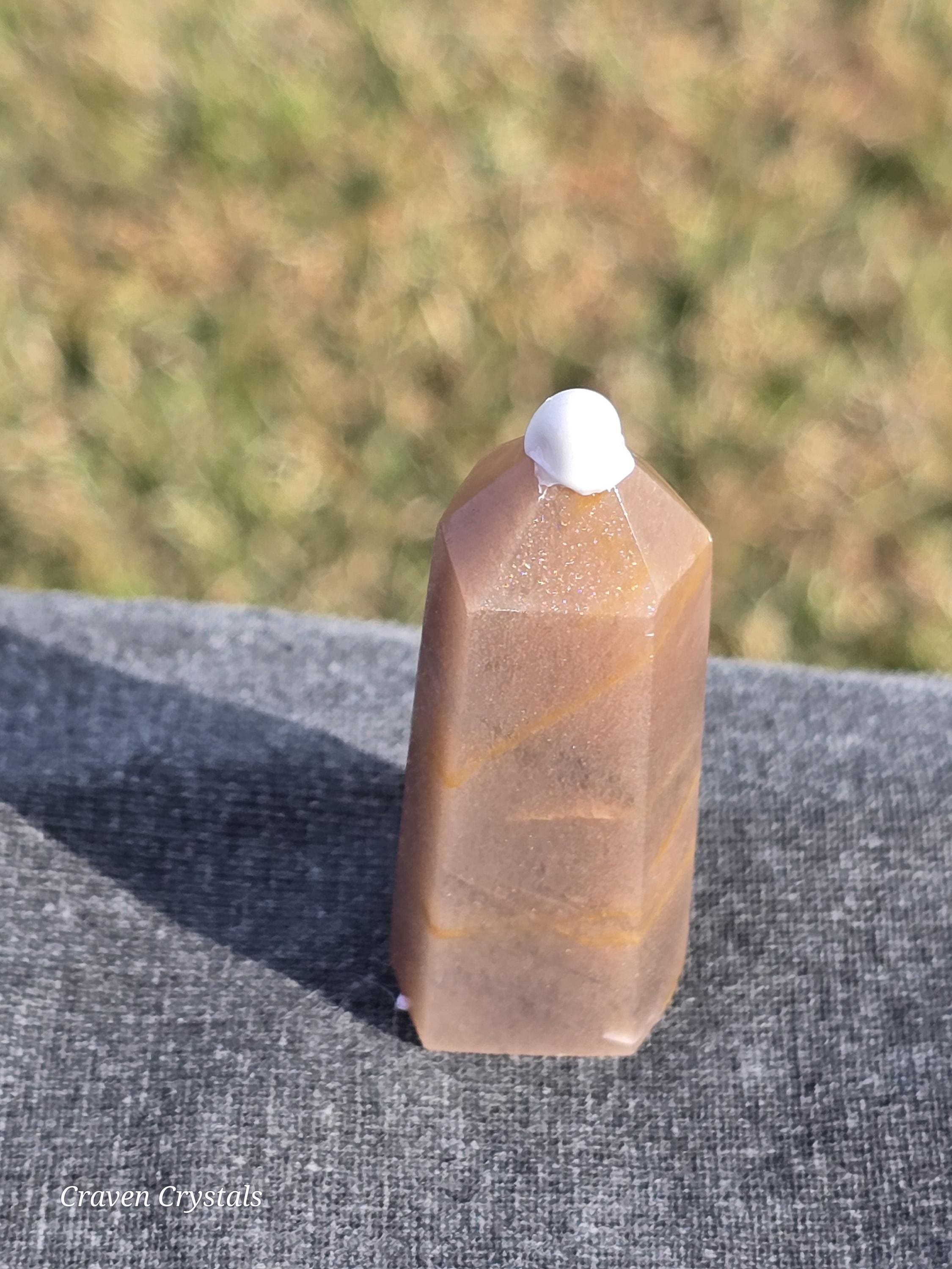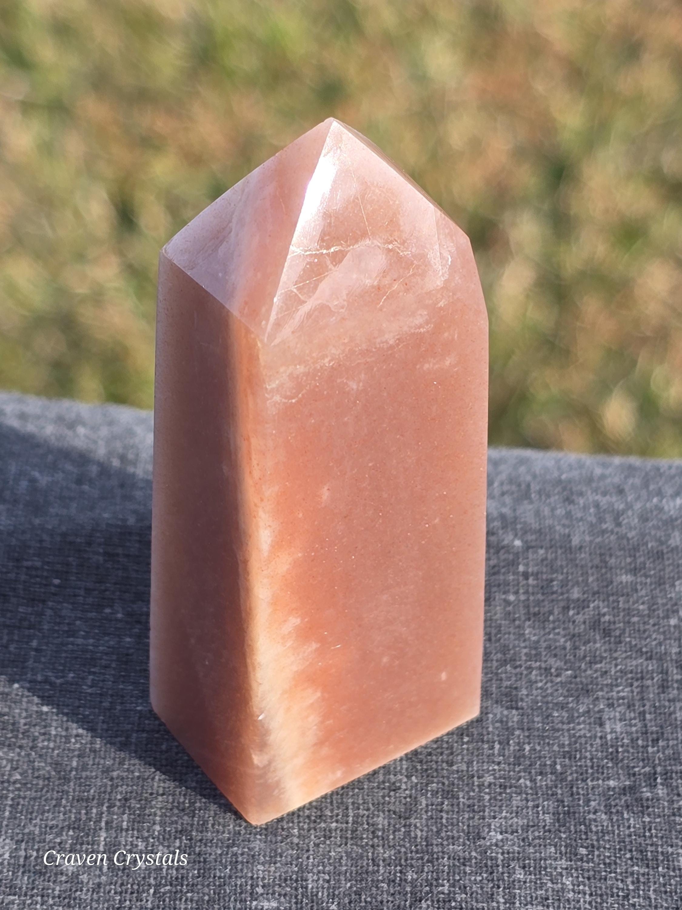 Peach Moonstone is believed to provide emotional support and healing. It is often used to alleviate stress, anxiety, and emotional trauma, fostering a sense of peace and calm. Peach Moonstone is linked to feminine energy and is thought to support hormonal balance and reproductive health. It is sometimes called the “Goddess Stone.”