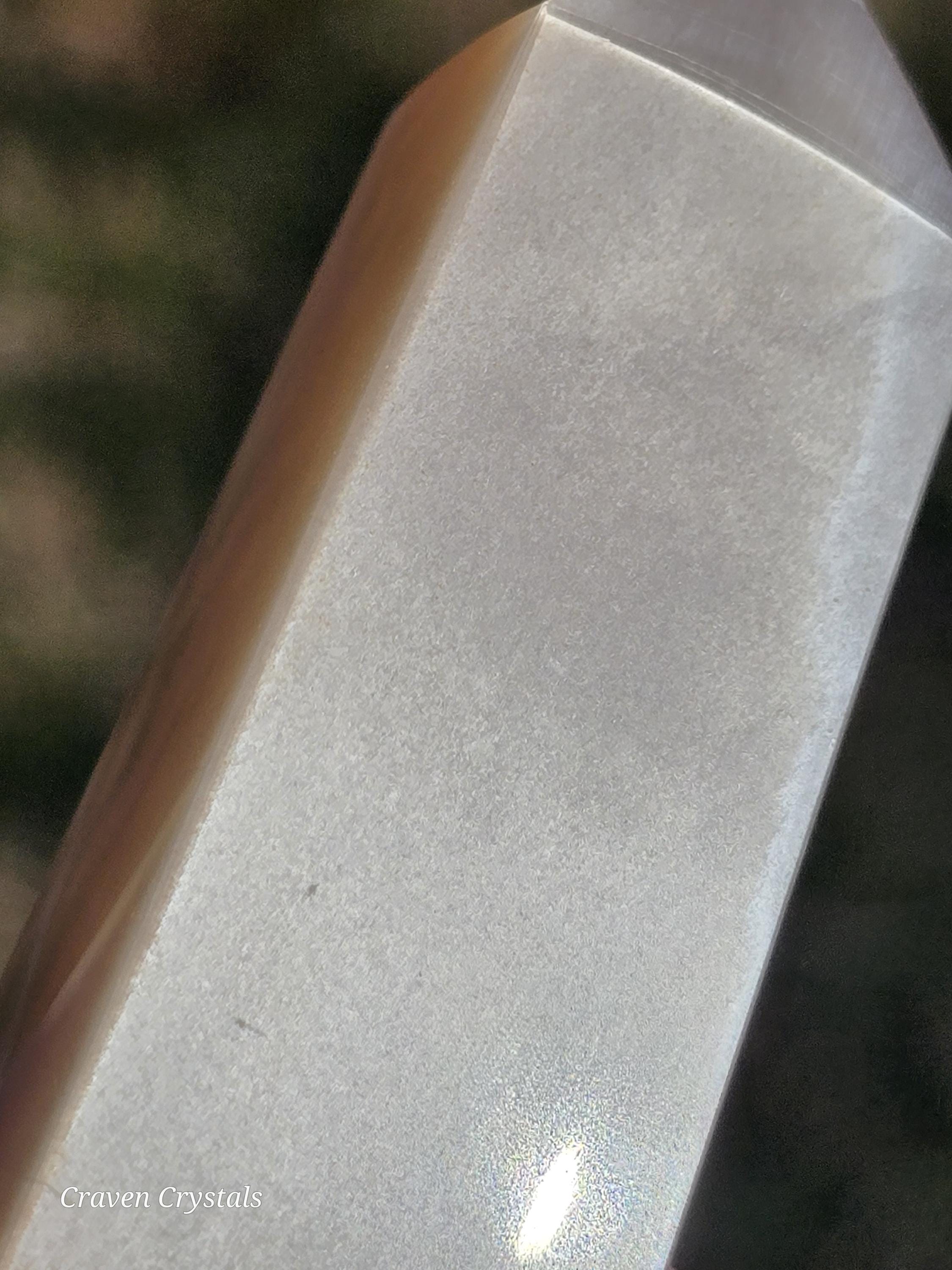 Peach Moonstone is believed to provide emotional support and healing. It is often used to alleviate stress, anxiety, and emotional trauma, fostering a sense of peace and calm. Peach Moonstone is linked to feminine energy and is thought to support hormonal balance and reproductive health. It is sometimes called the “Goddess Stone.”
