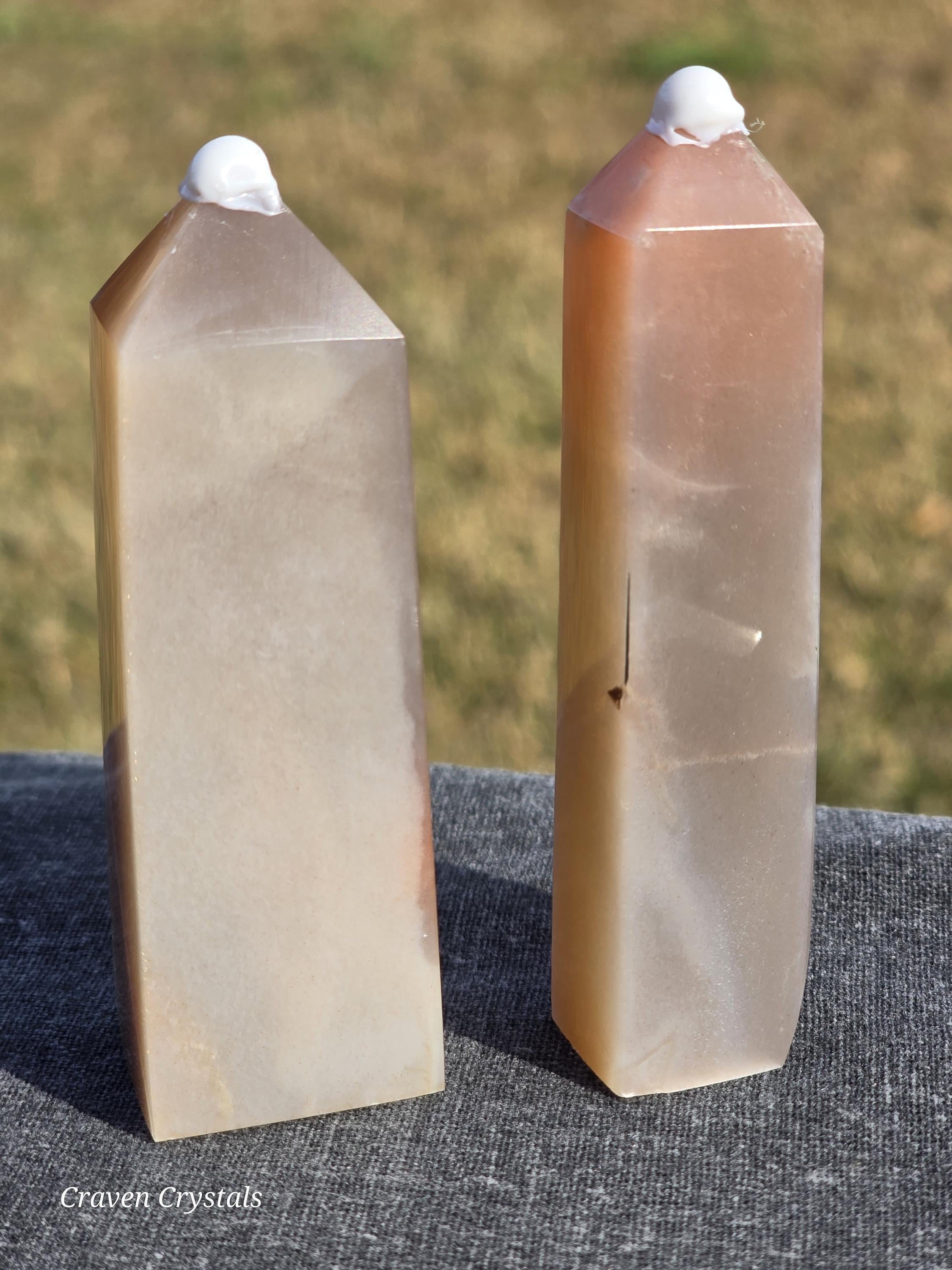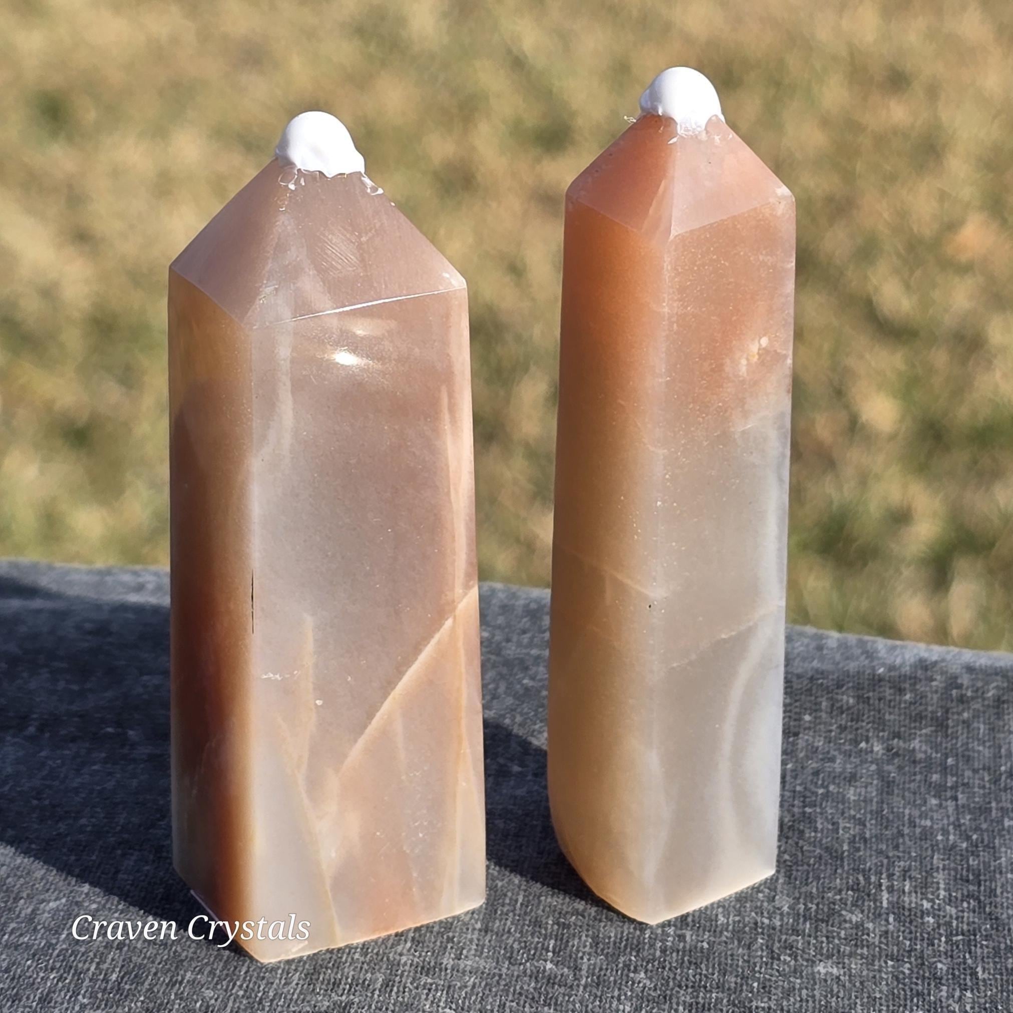 Peach Moonstone Crystal Towers with Sunstone inclusions