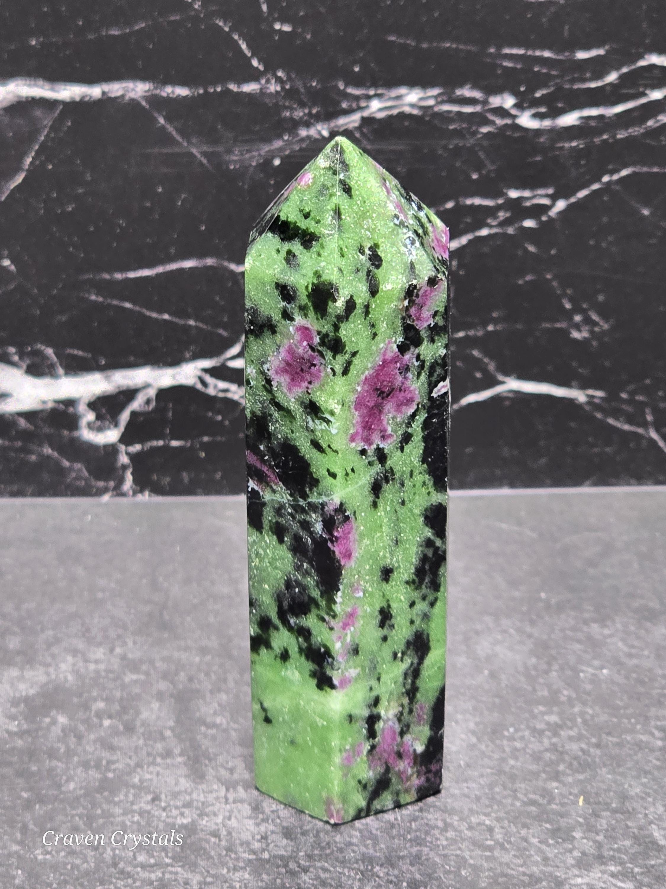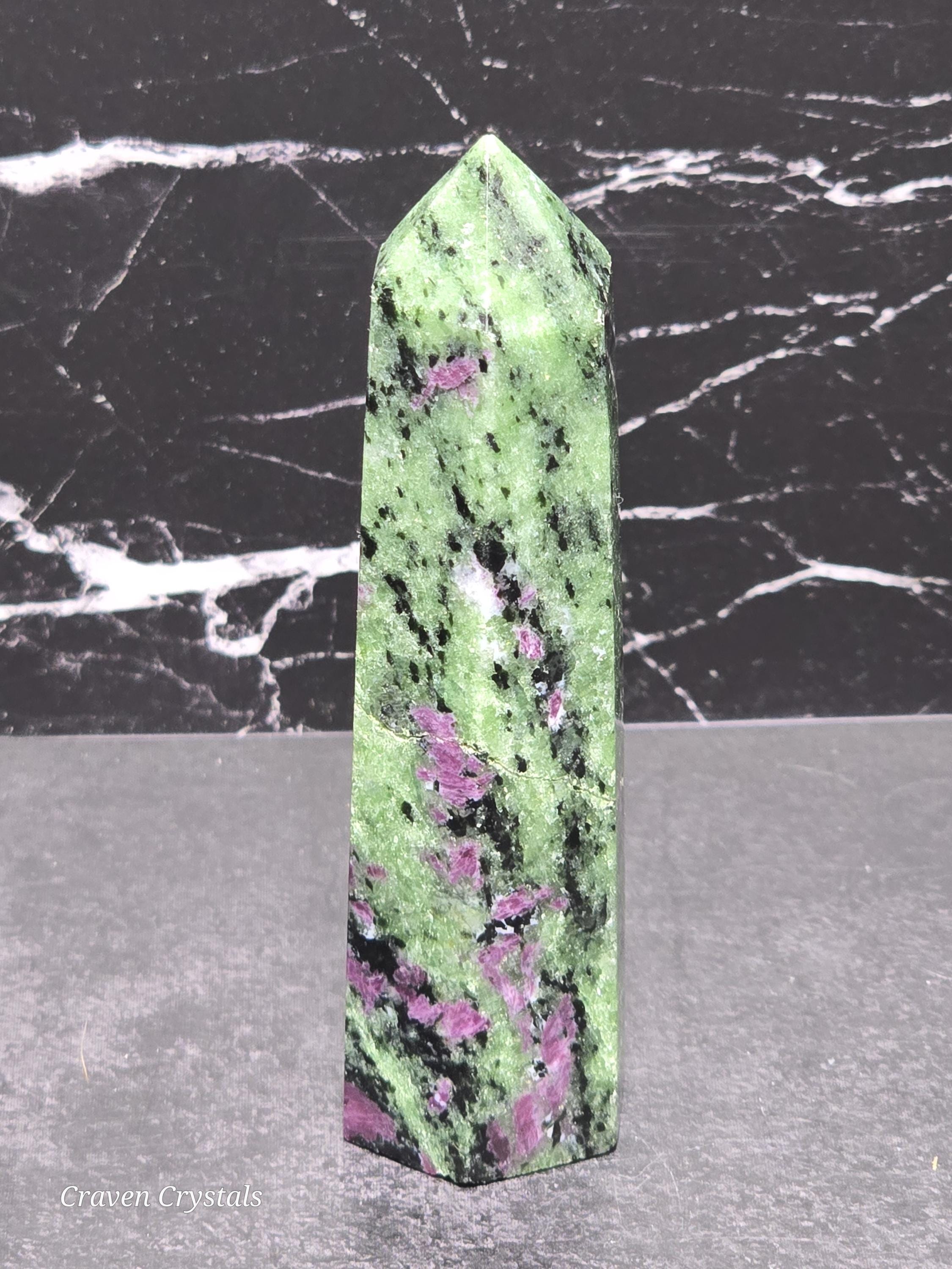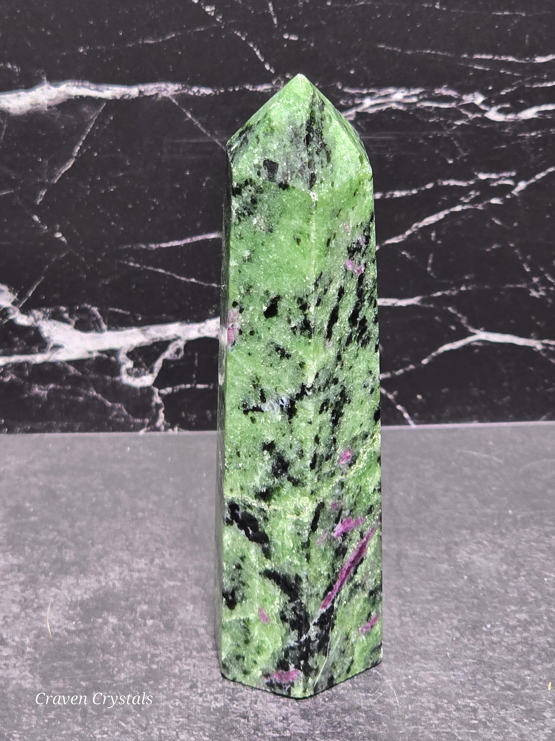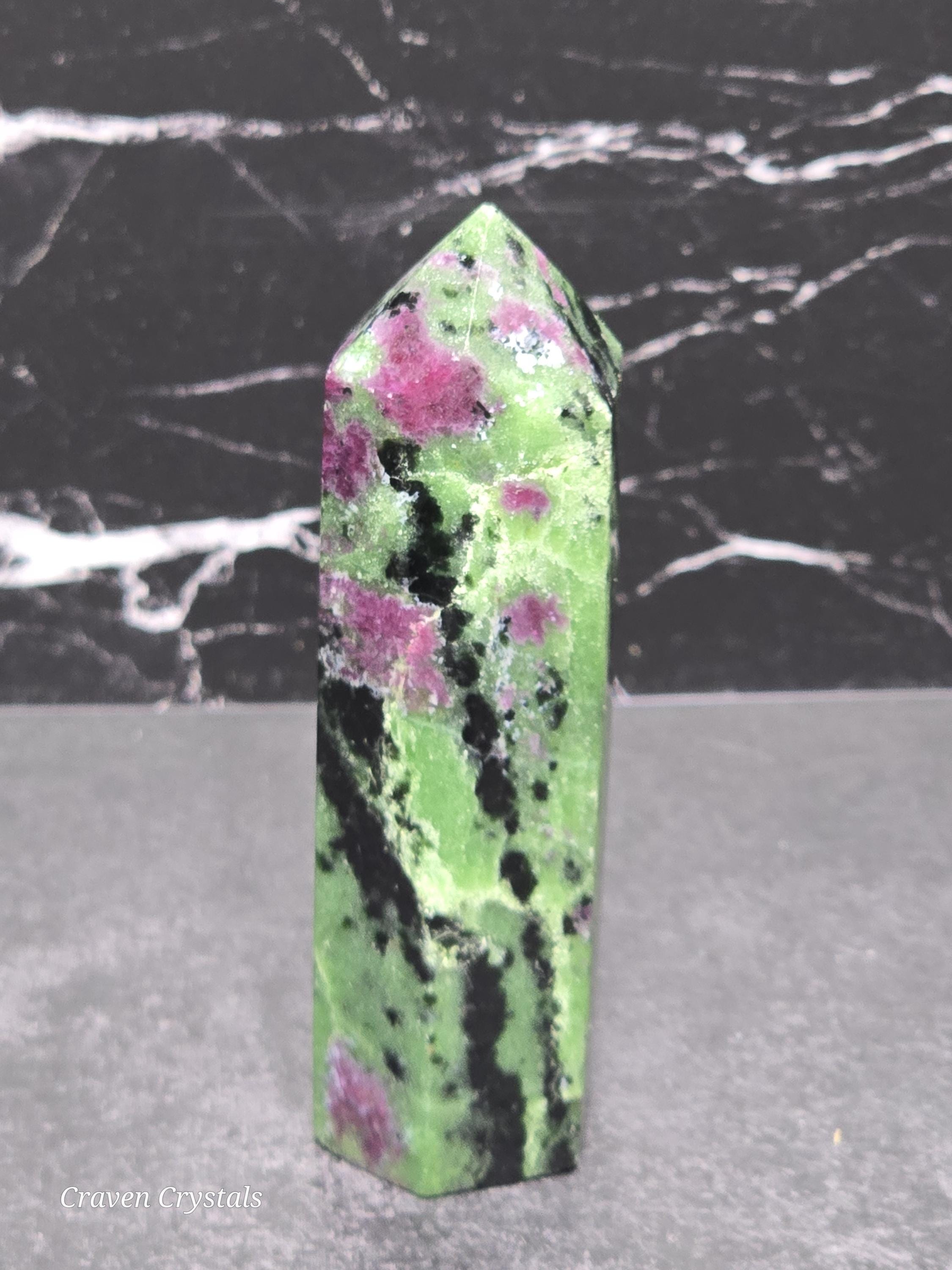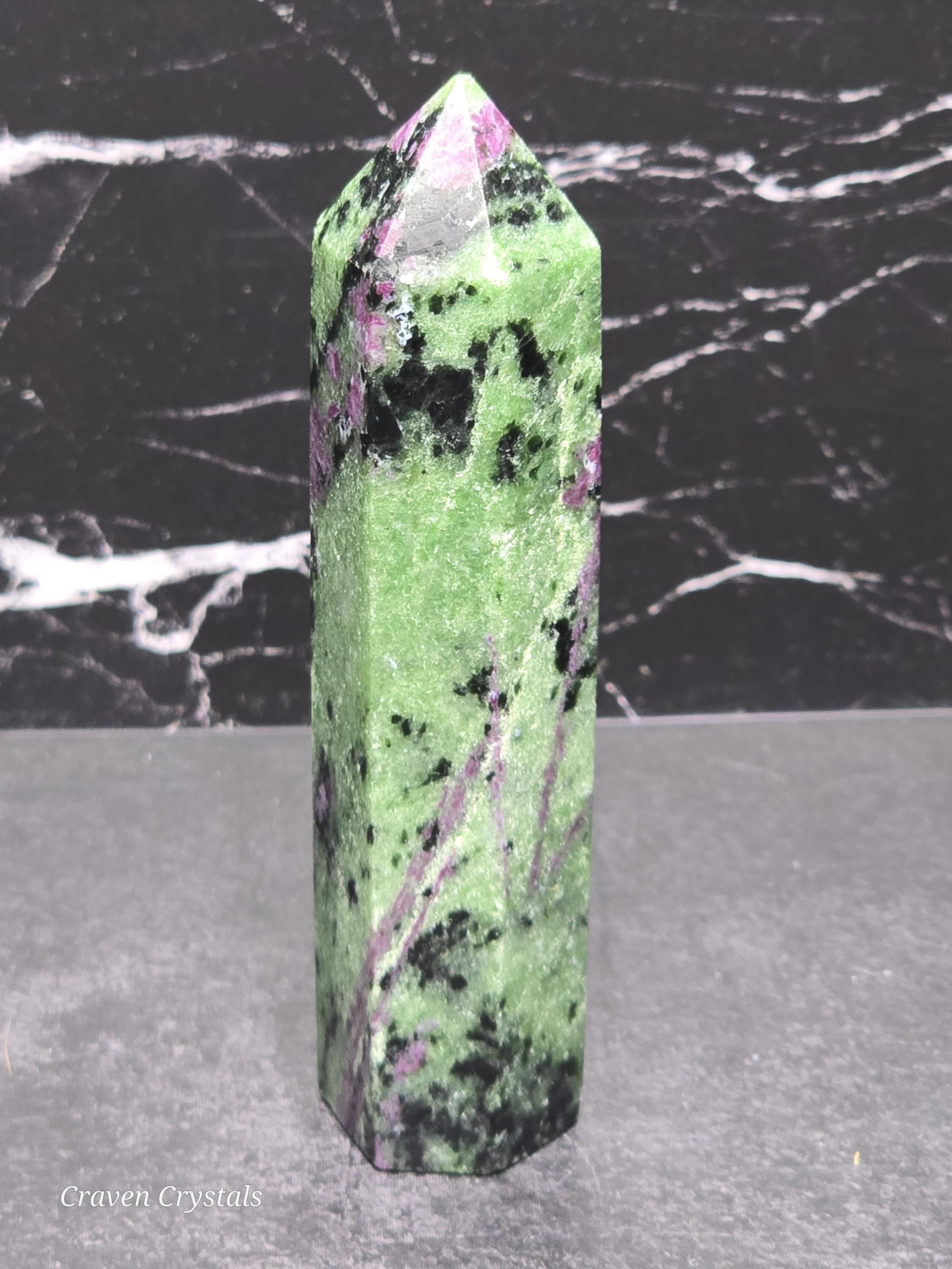 Ruby Zoisite is a beautiful and powerful stone that combines the properties of ruby and zoisite. Ruby is a red gemstone that symbolizes courage, passion, creativity and love. Zoisite is a green mineral that symbolizes growth, healing, and harmony.