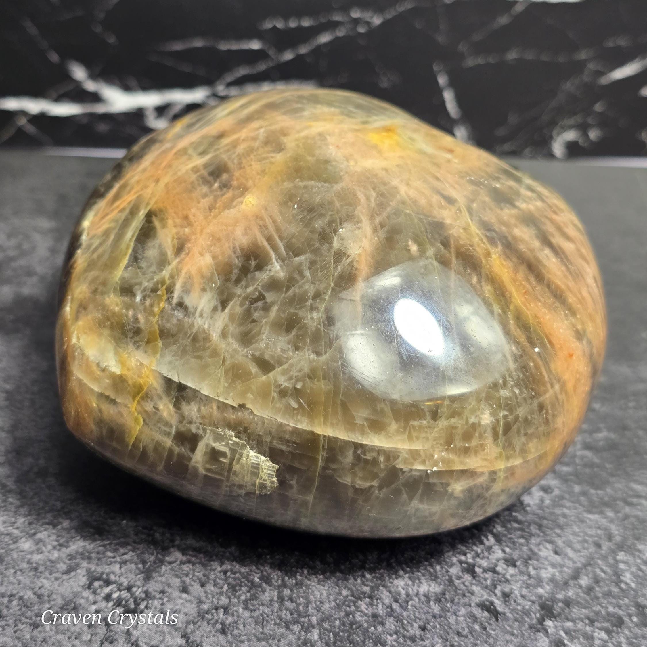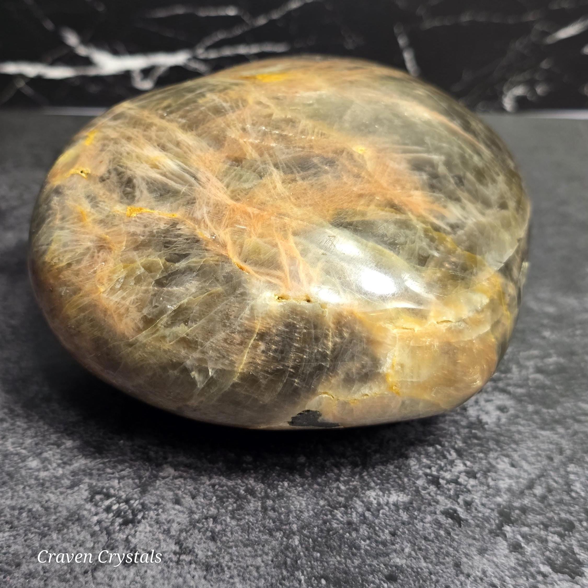 Black Moonstone is associated with the energy of the New Moon, symbolizing new beginnings and fresh starts. It is considered a stone of intuition and introspection. It is believed to enhance psychic abilities, promote emotional balance, and aid in grounding spiritual energies.