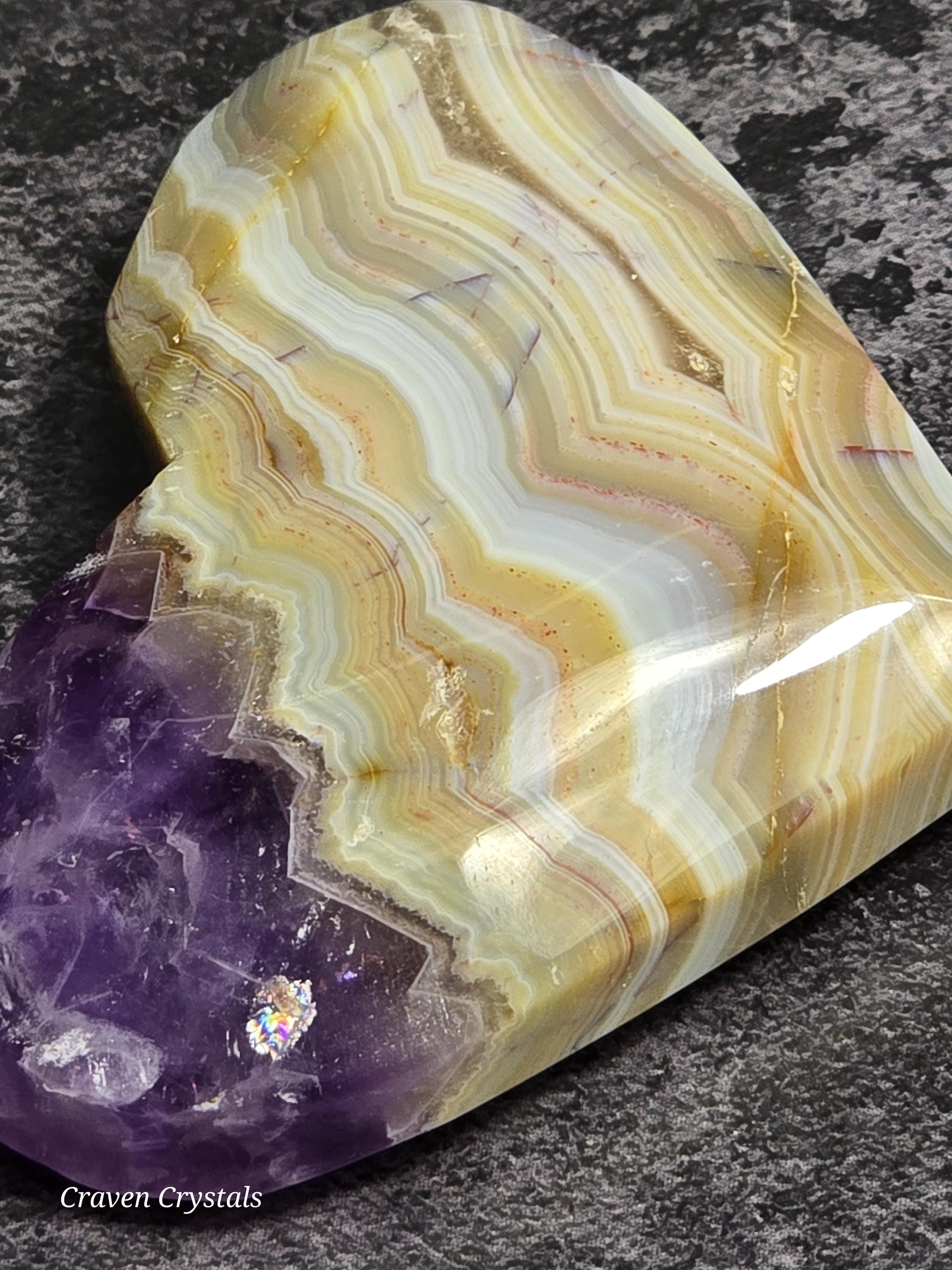 Amethyst's calming and meditative qualities can complement Crazy Lace Agate's energetic and joyful nature. Amethyst's spiritual qualities with Crazy Lace Agate's ability to promote positive emotions and a sense of playfulness.