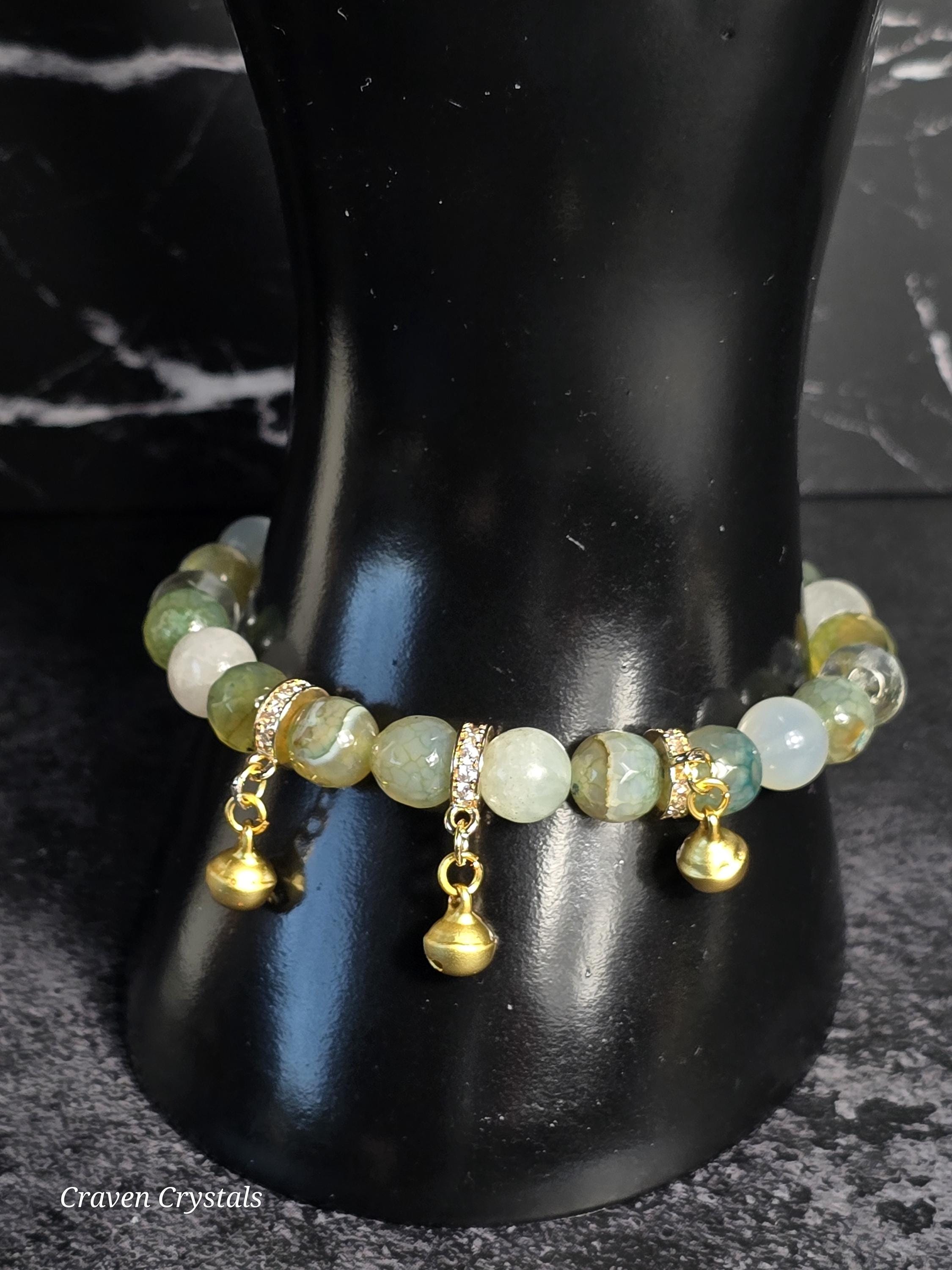 Each Craven Crystals bracelet is thoughtfully handcrafted using natural stones, elastic cord, and carefully selected metals. To preserve the beauty and integrity of your piece, handle it with care and avoid excessive stretching. Bracelets should be rolled on and off the wrist rather than pulled, especially those made with elastic. It is recommended to remove your bracelet before sleeping, bathing, swimming, exercising, or performing household tasks, as moisture, chemicals, and impact can weaken elastic, dull metals, and damage stones. Sterling silver and mixed metal components may naturally develop a soft patina or tarnish over time. This is a normal process and can be minimized by keeping your jewelry dry and storing it in a soft pouch or jewelry box when not in use. A gentle wipe with a soft, dry cloth after wearing helps remove natural oils and maintain shine. Avoid submerging bracelets in water or using chemical or ultrasonic cleaners. For sterling silver accents only, a silver polishing cloth may be used. Delicate beads, glass, shell, charms, and detailed focal pieces should be protected from hard knocks or pressure, as natural and specialty materials can chip or crack if dropped. Crystals, stones, and shells are natural materials and may display unique variations in color, texture, or pattern. These characteristics are part of what makes each Craven Crystals piece one of a kind. With mindful care, your bracelet will continue to bring beauty, meaning, and enjoyment for years to come.