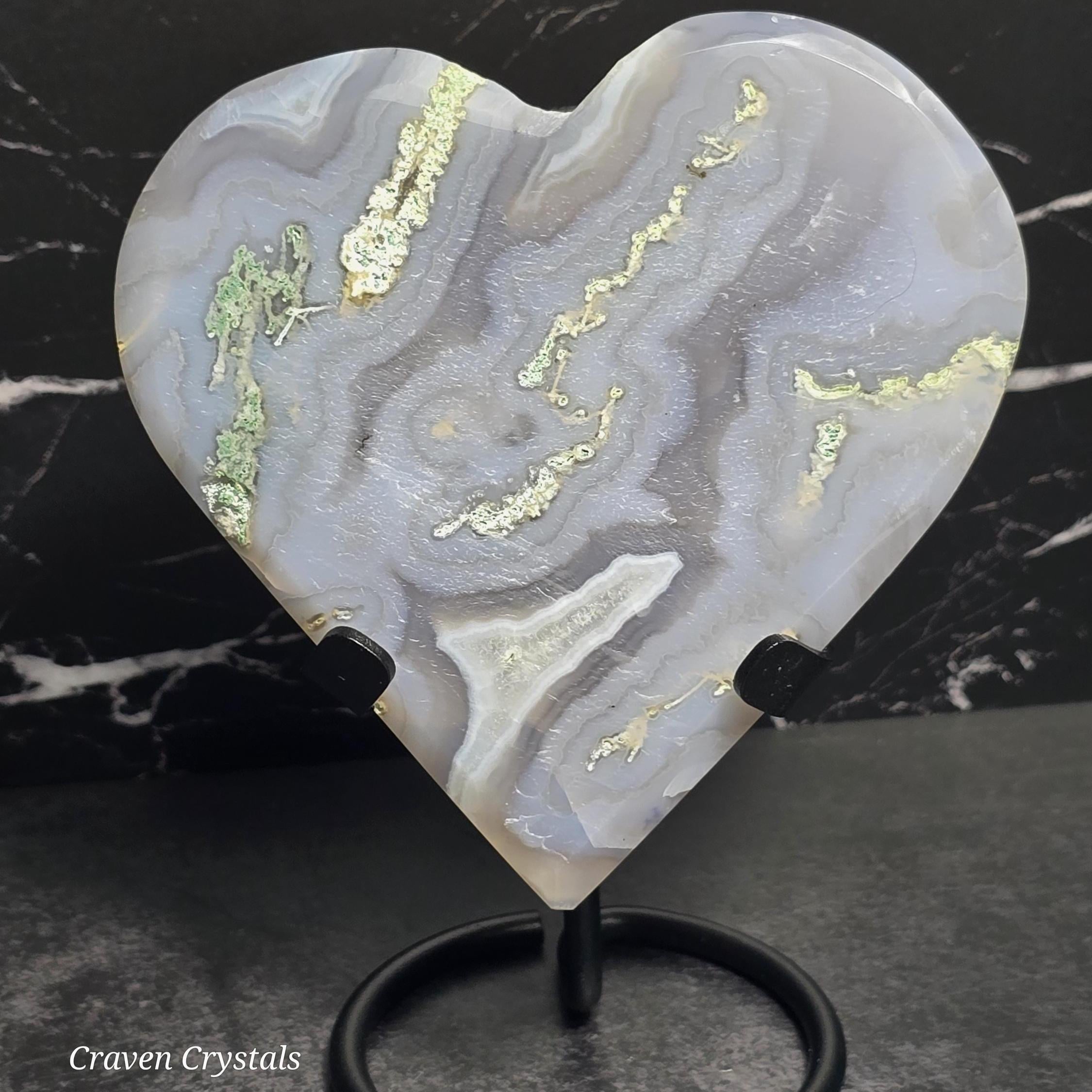 Moss Agate Crystal Heart Carving