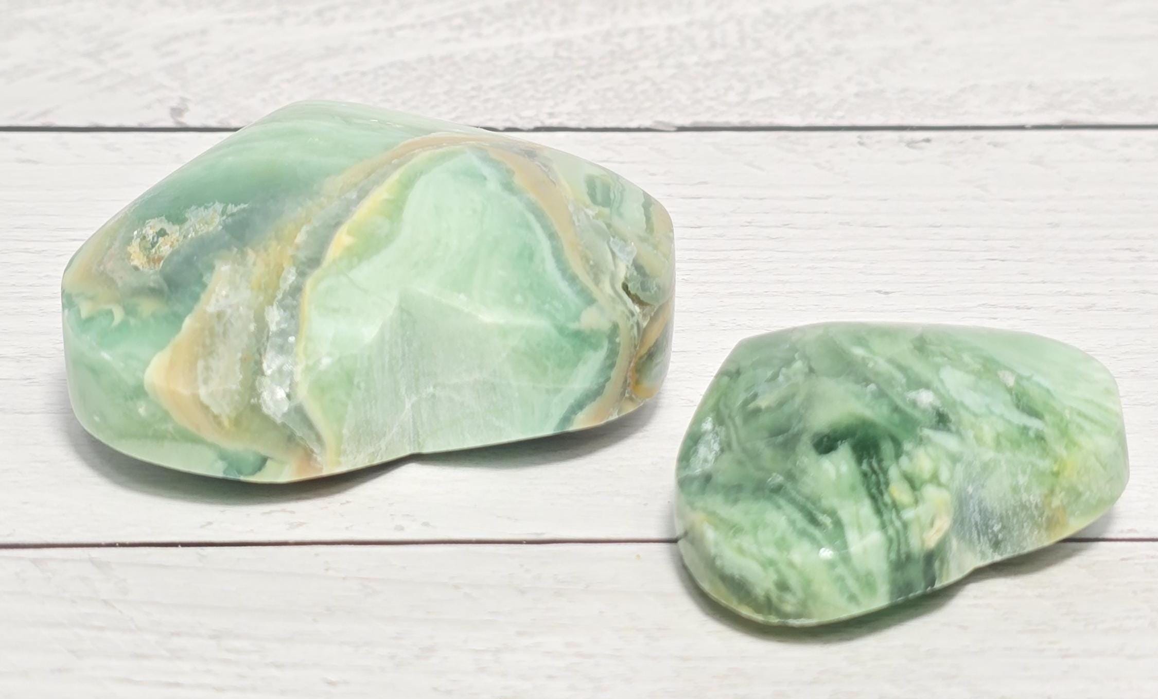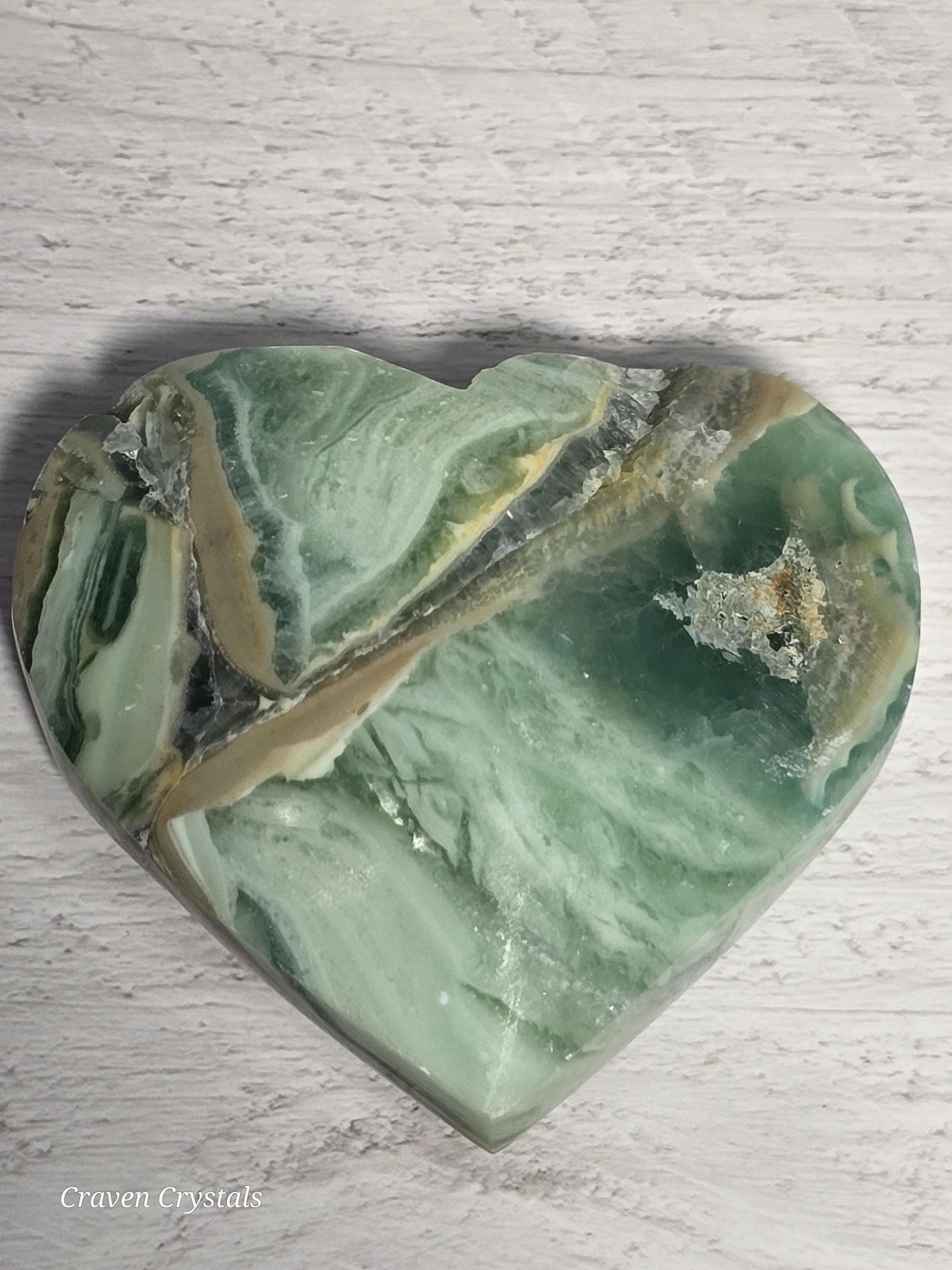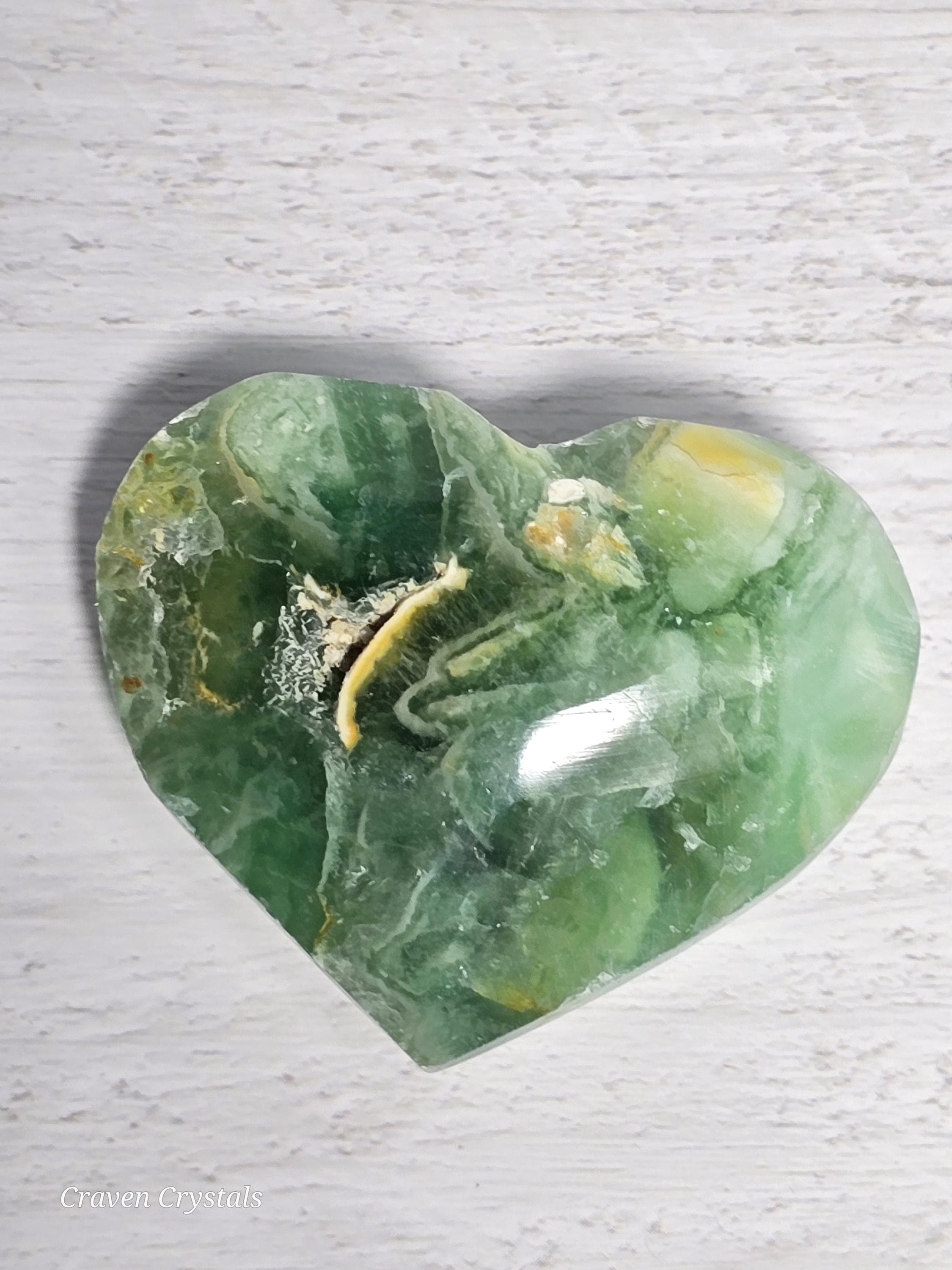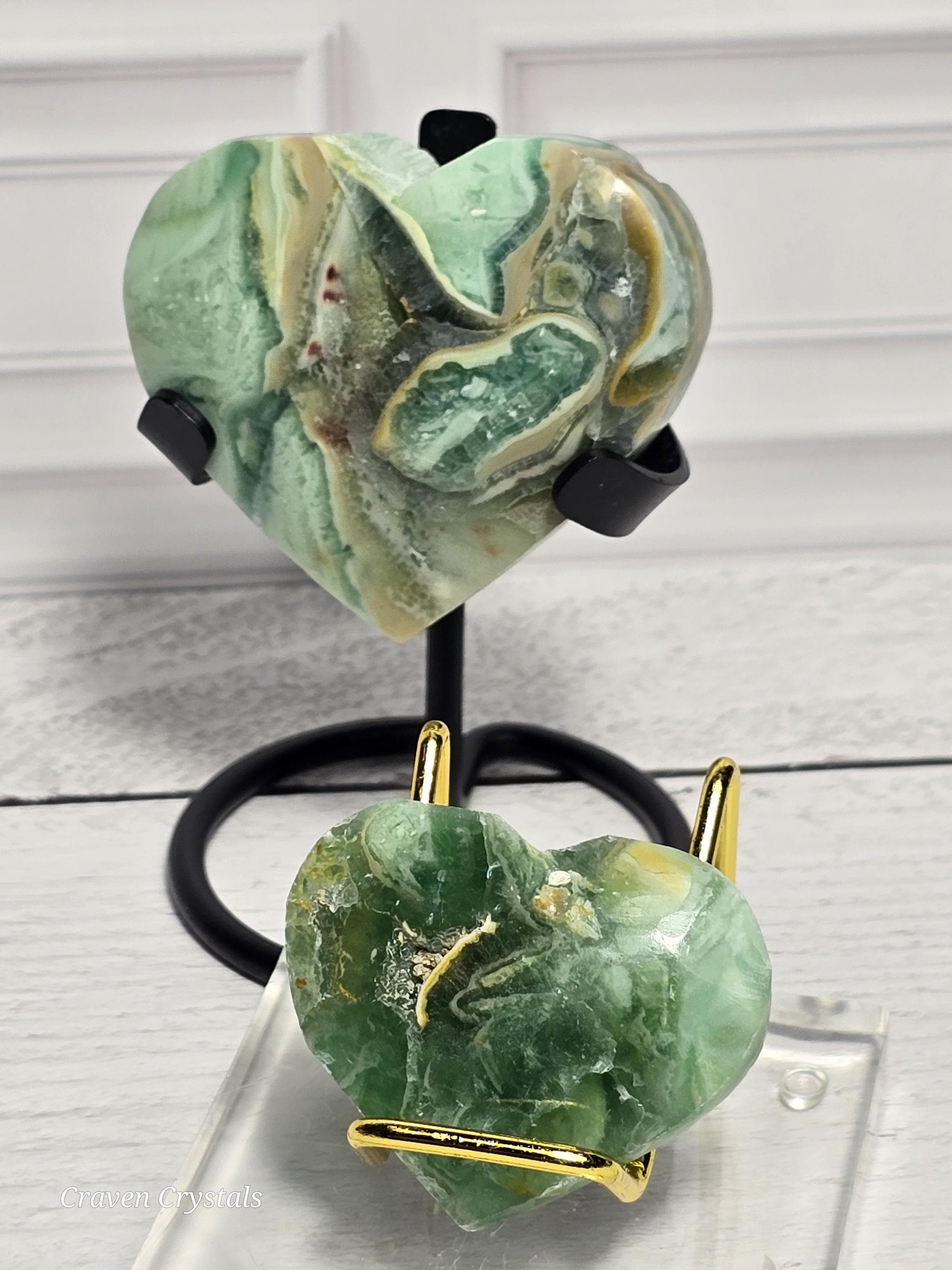 Opalized Green Silk Fluorite Crystal Heart Carvings