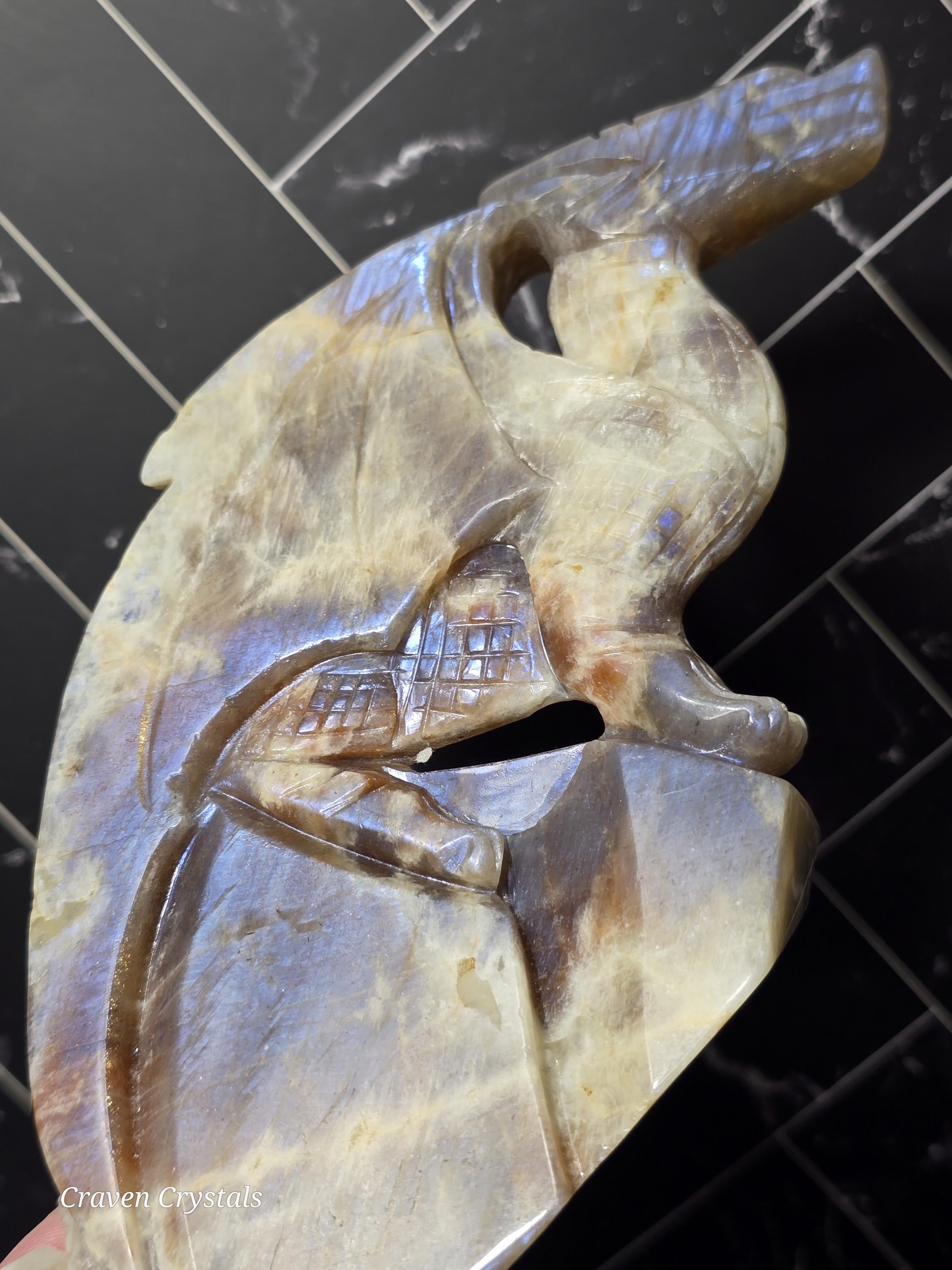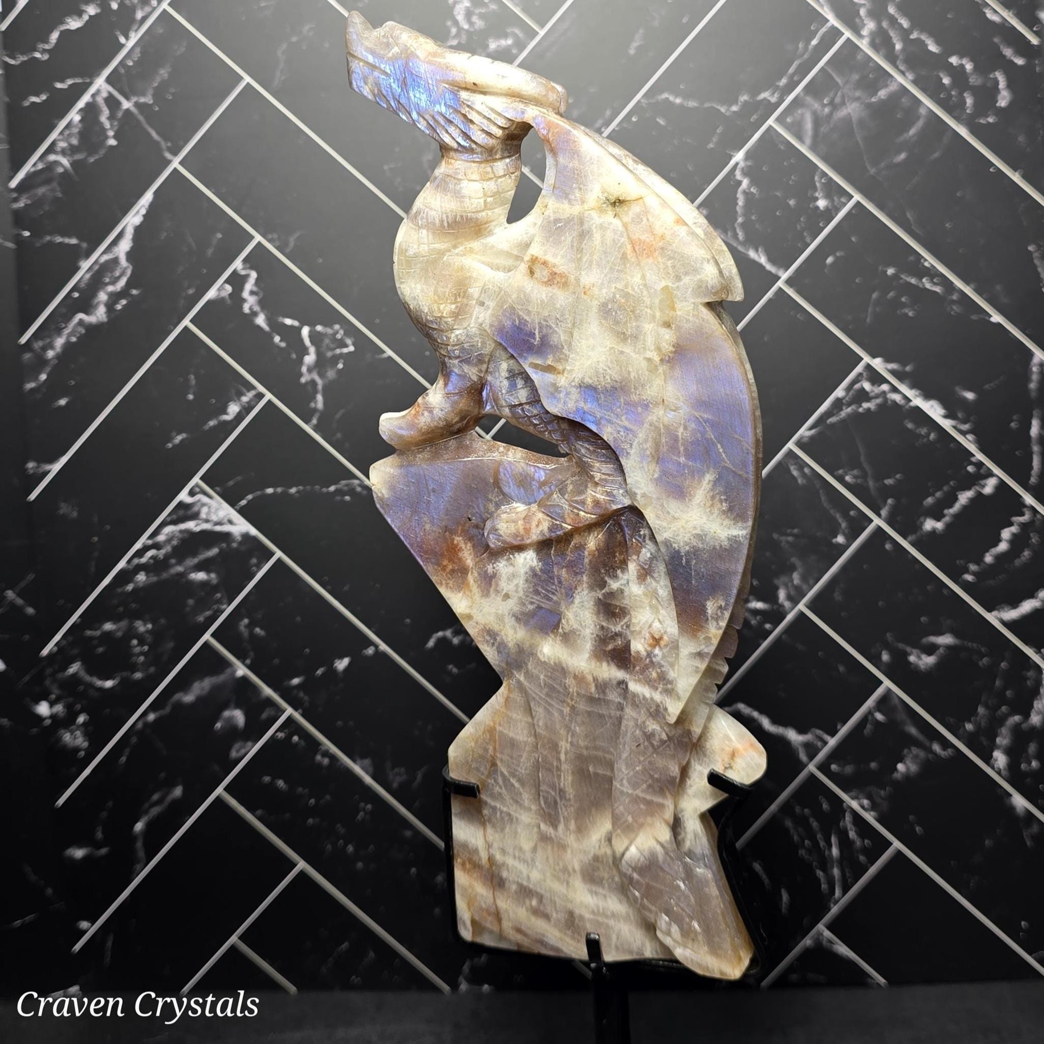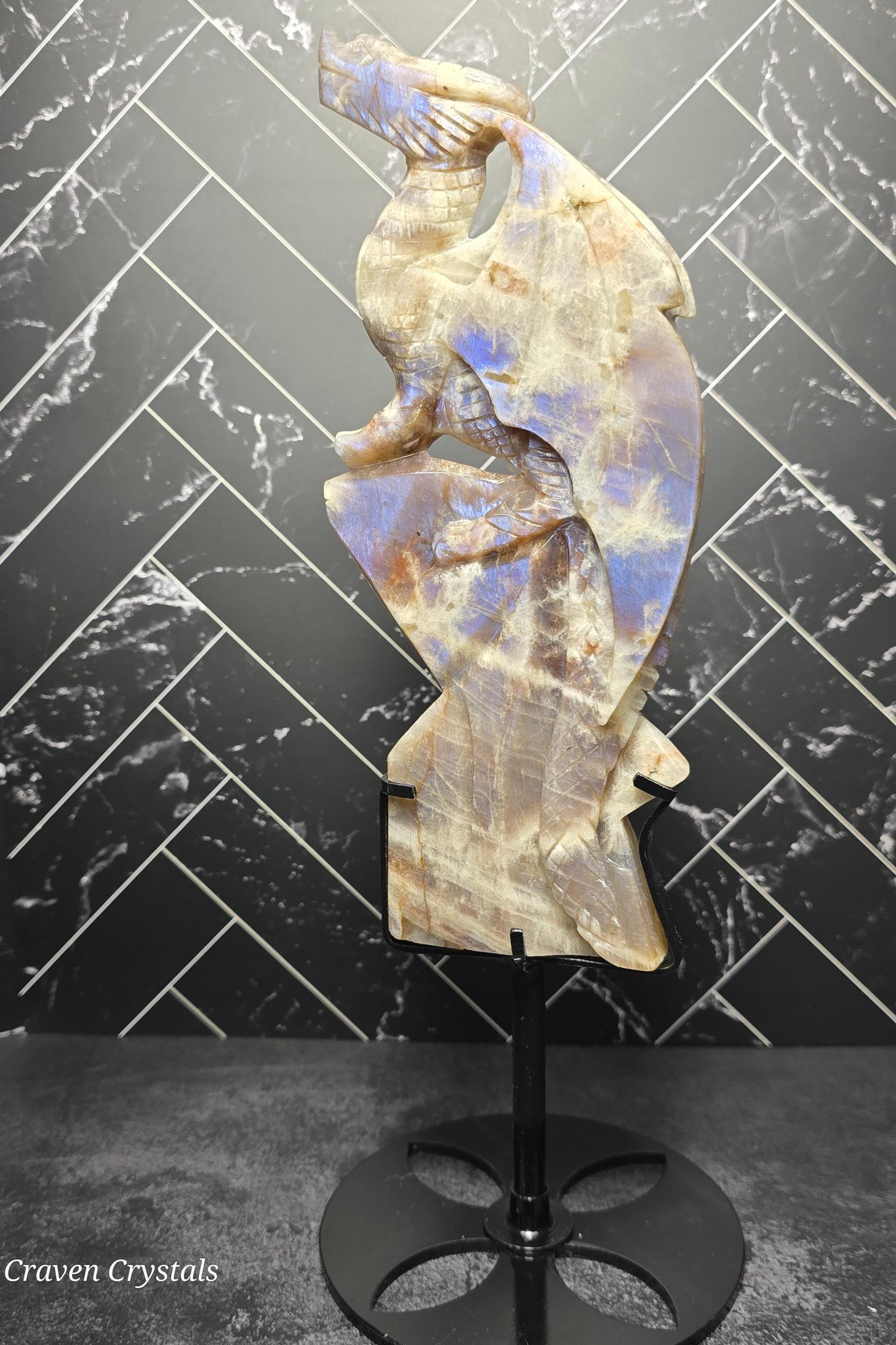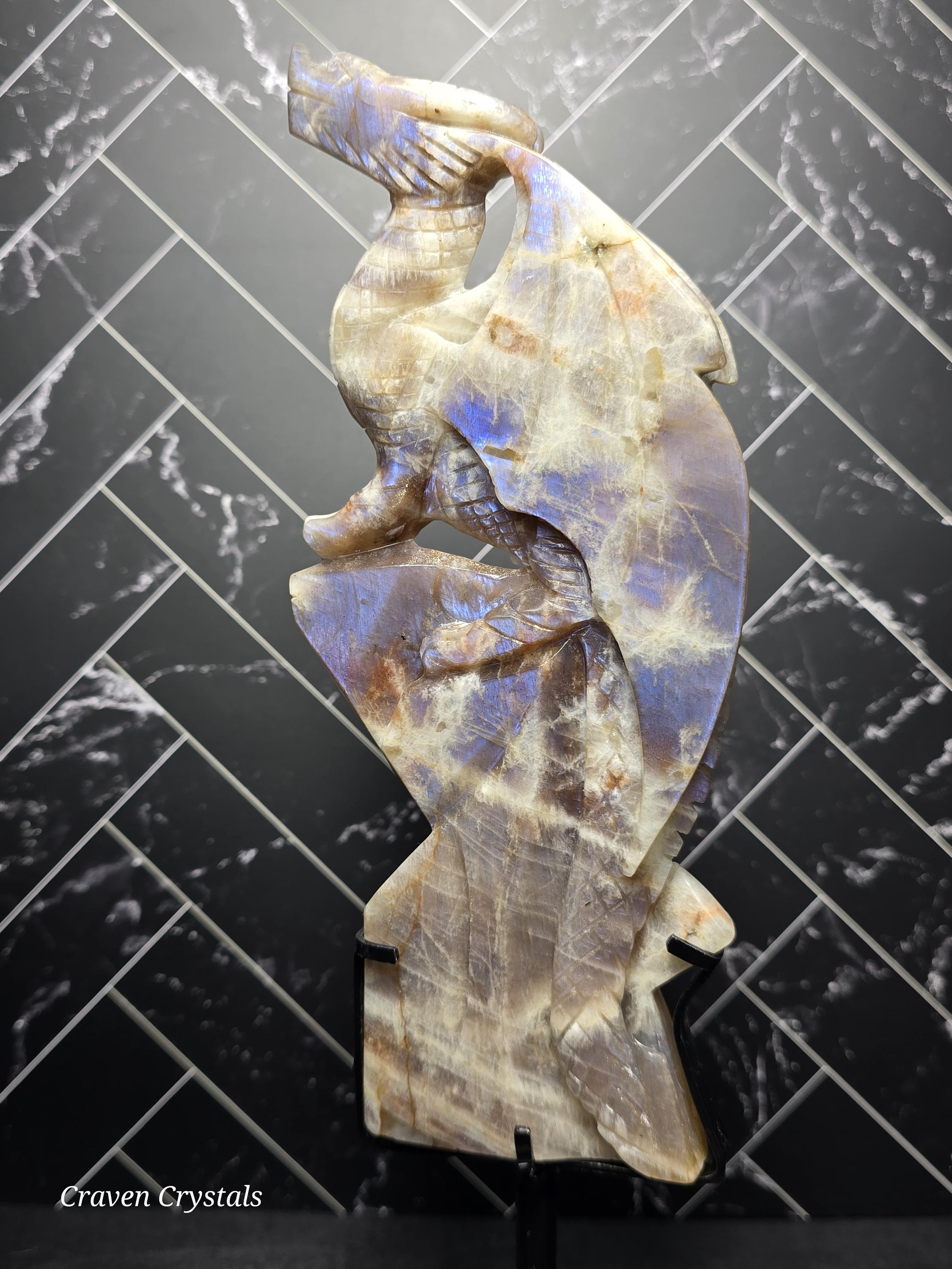 Gorgeous Moonstone Crystal Dragon Carving with blue flash