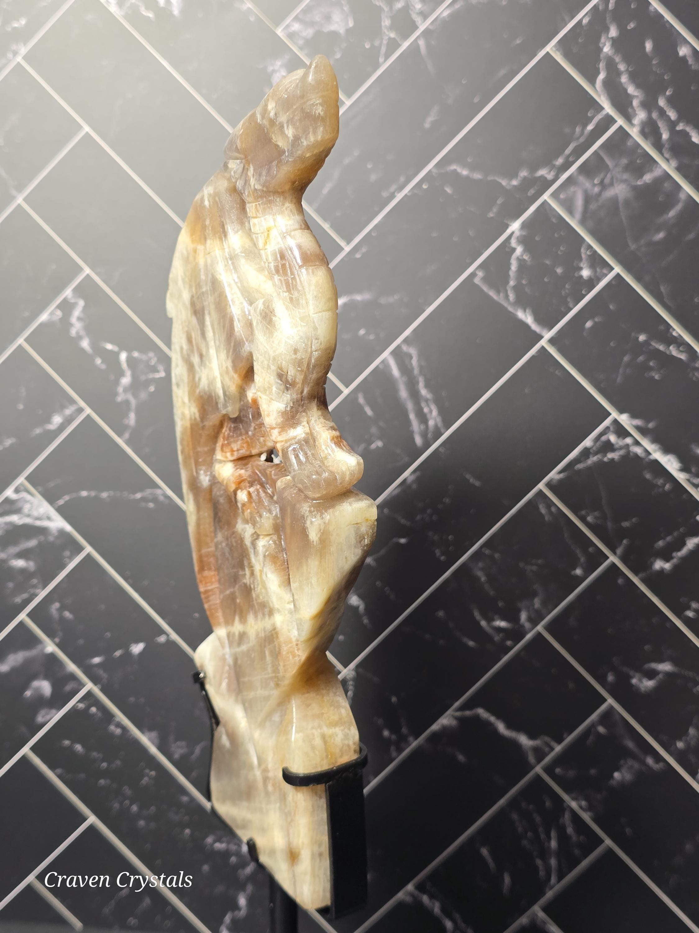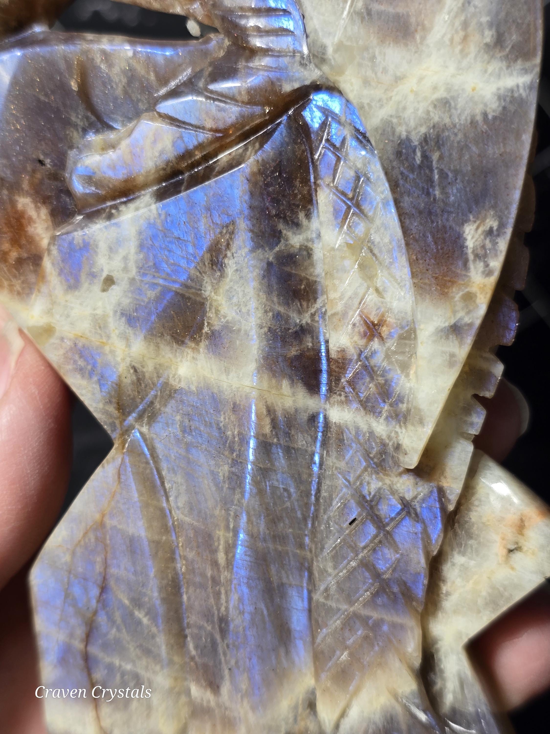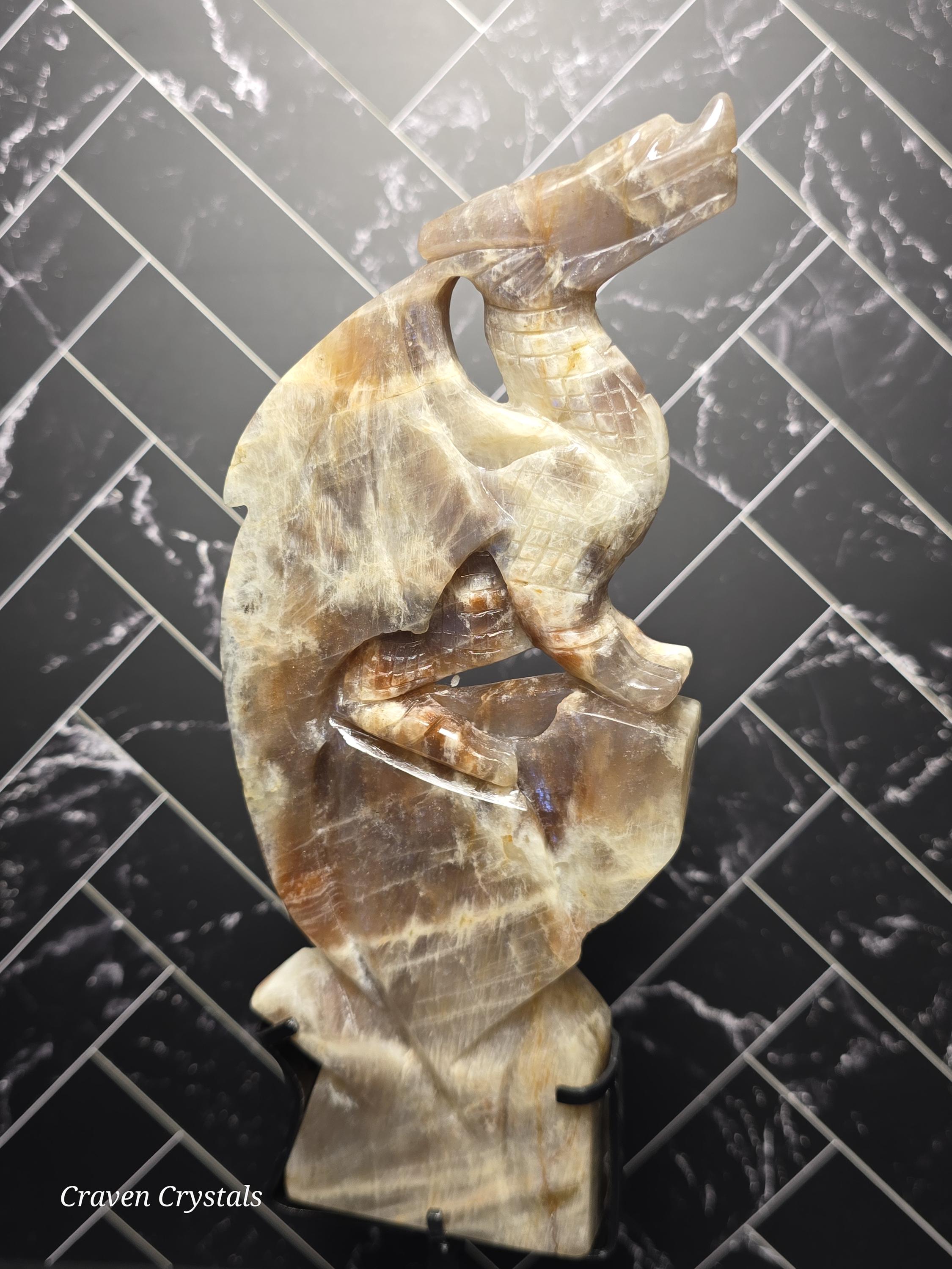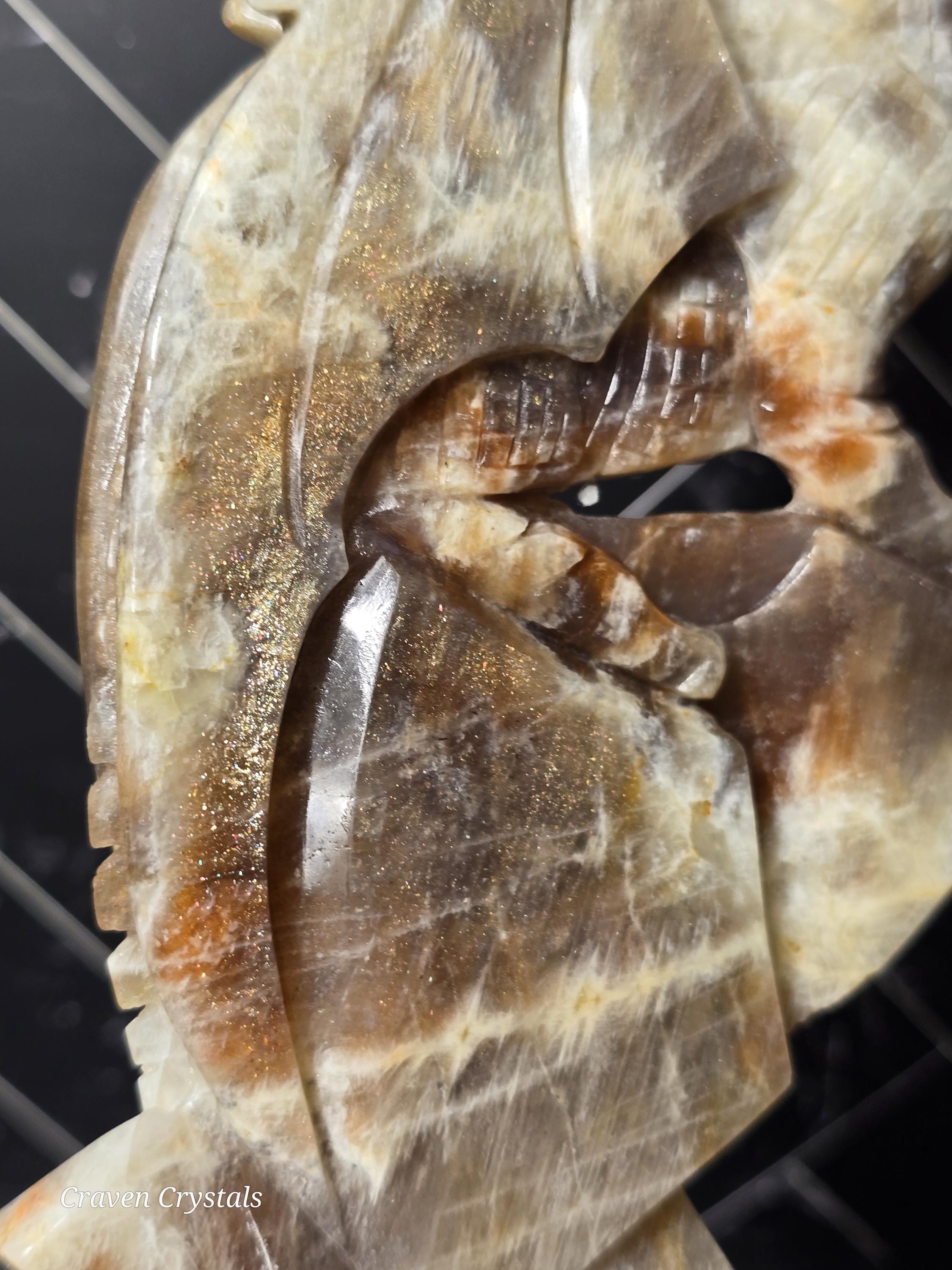 Gorgeous Moonstone Crystal Dragon Carving with blue flash