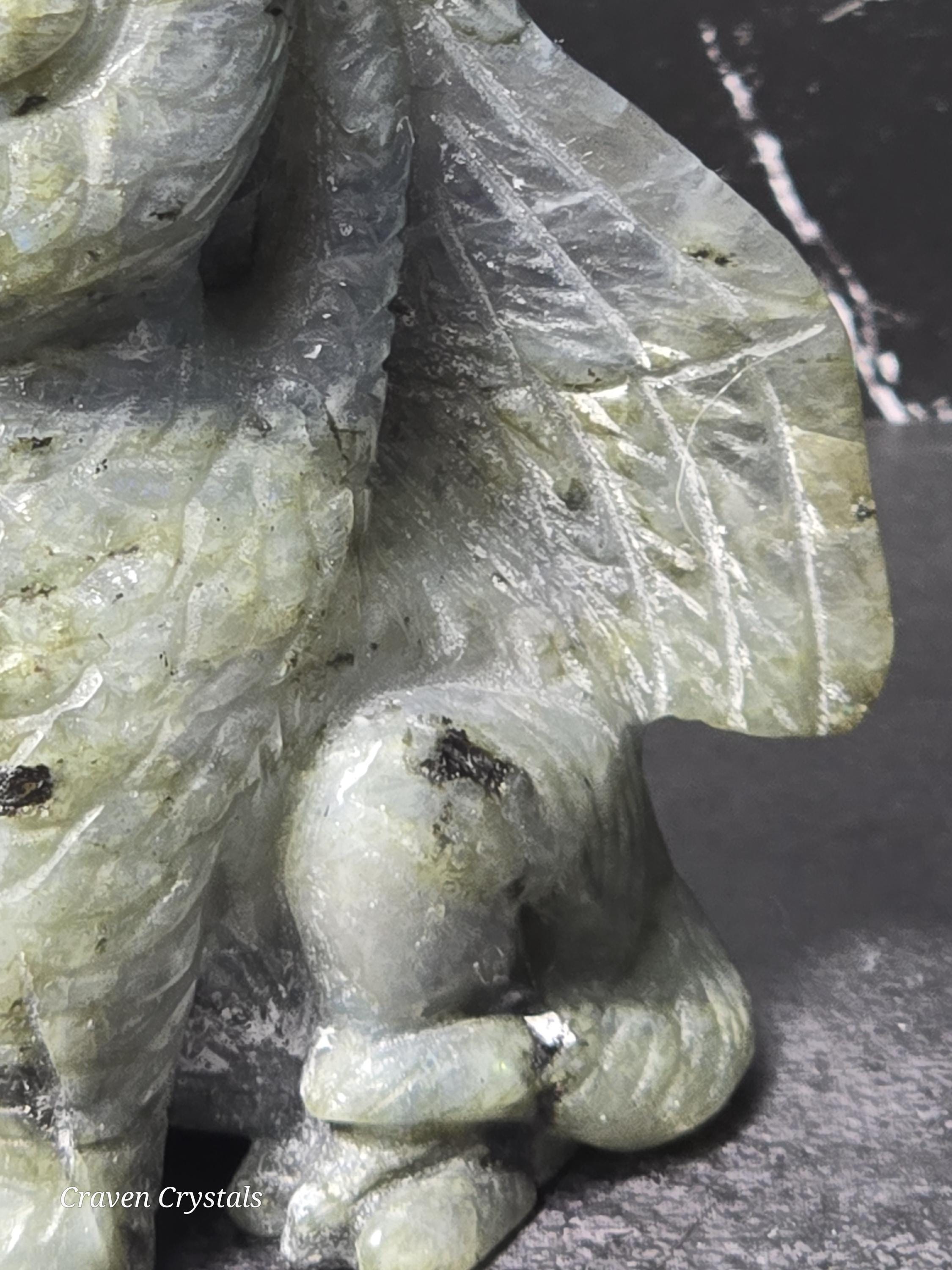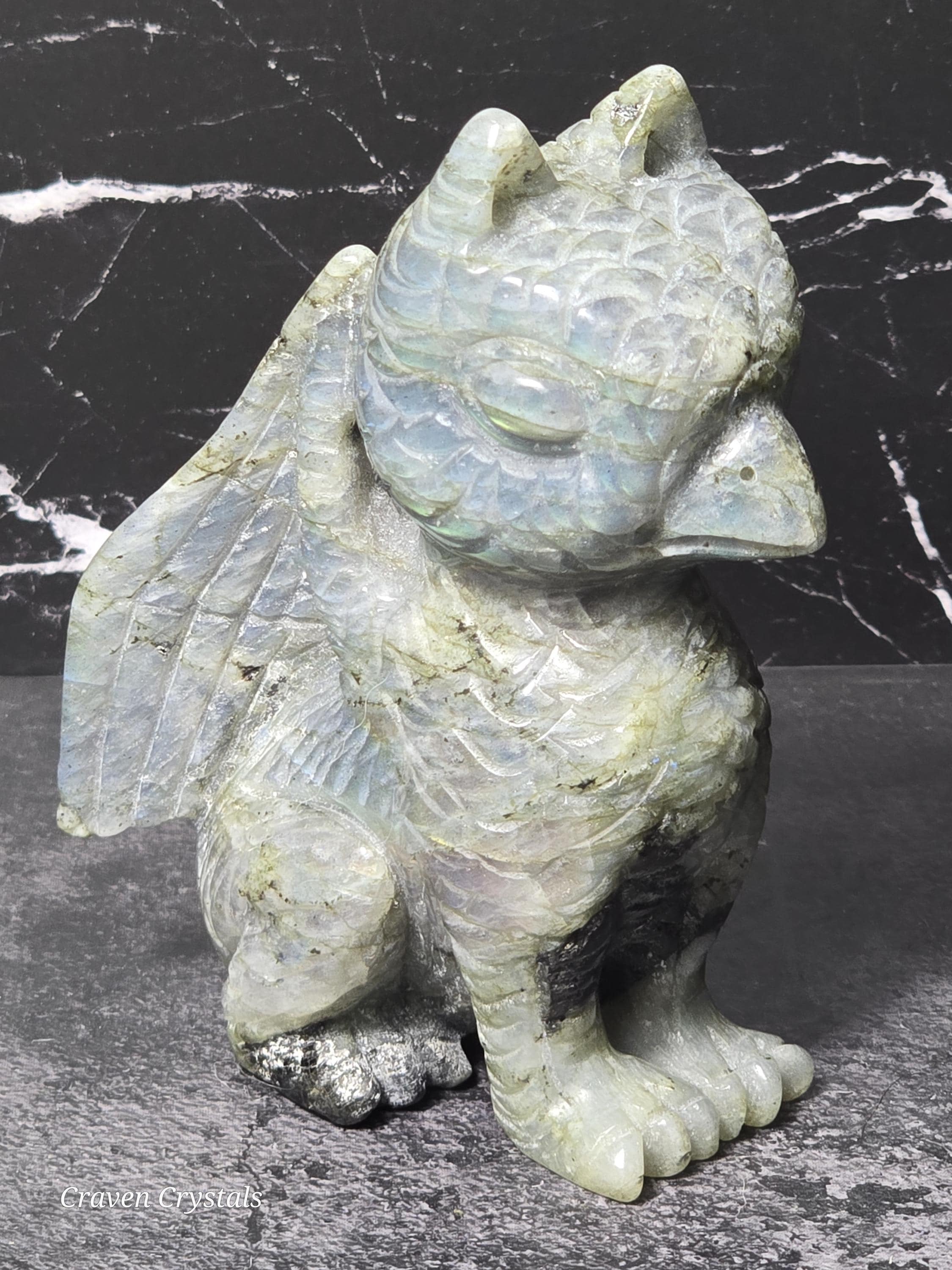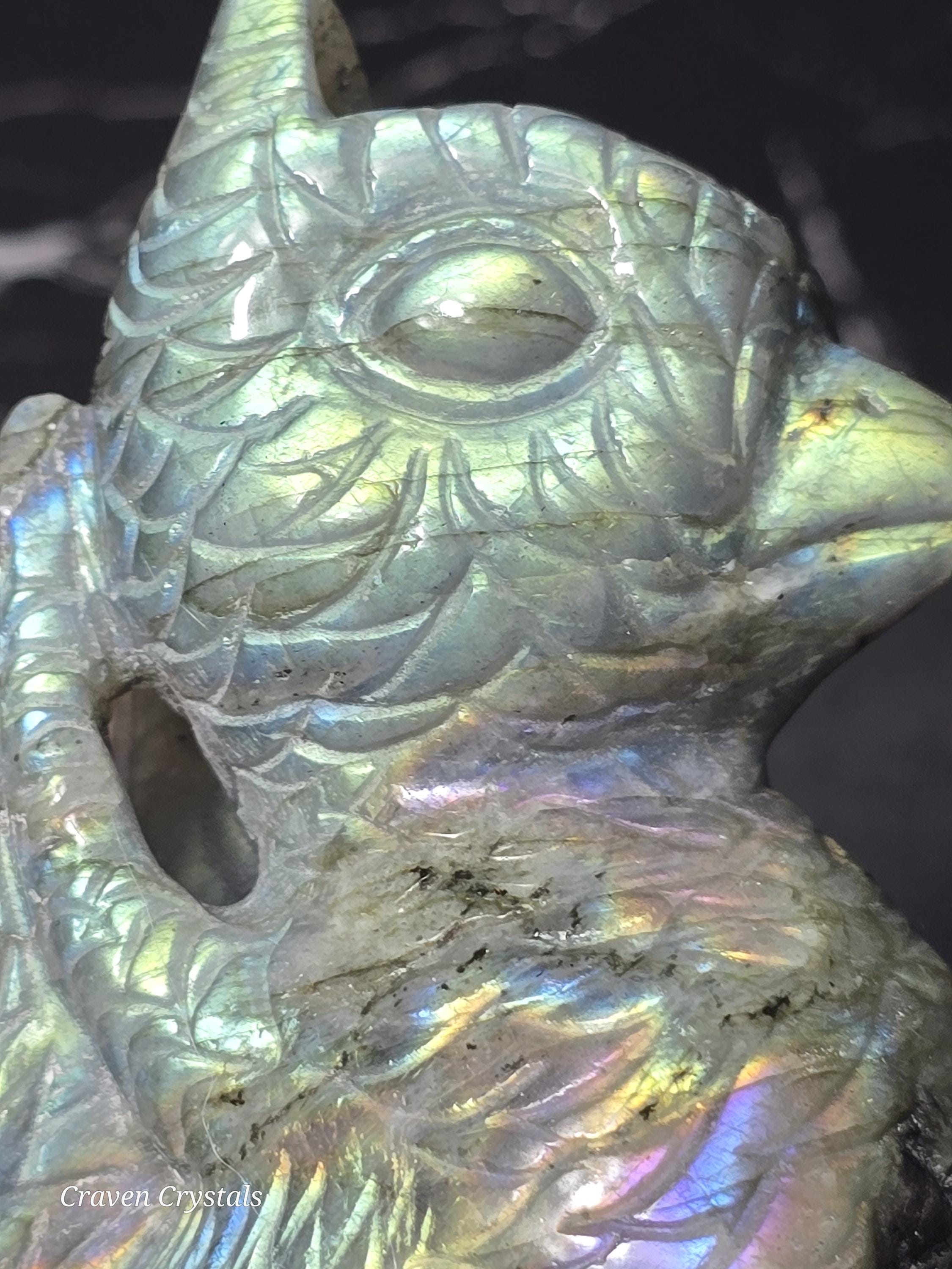 Labradorite Crystal Gryphon (Griffin) Carving with amazing rainbow flash