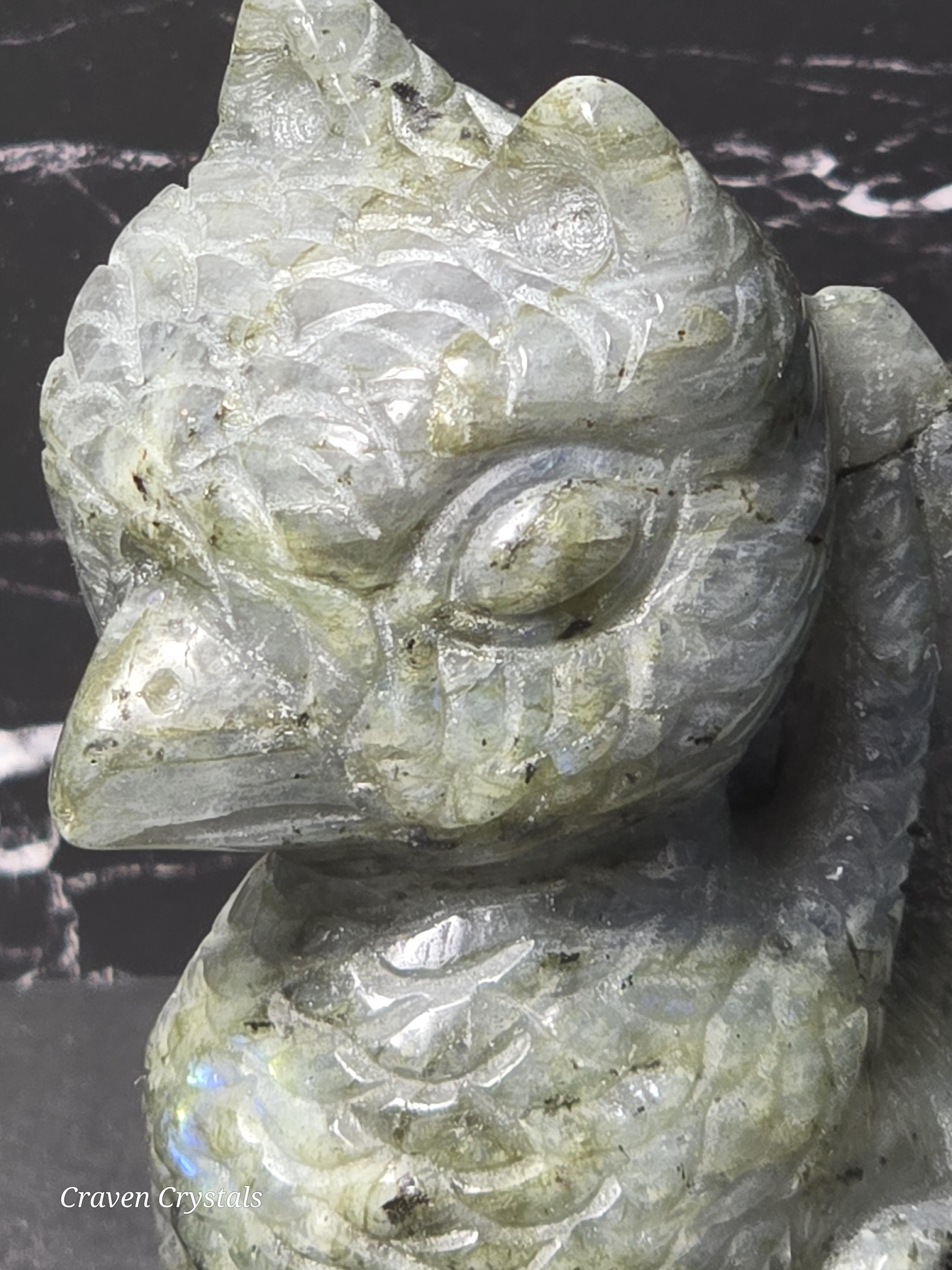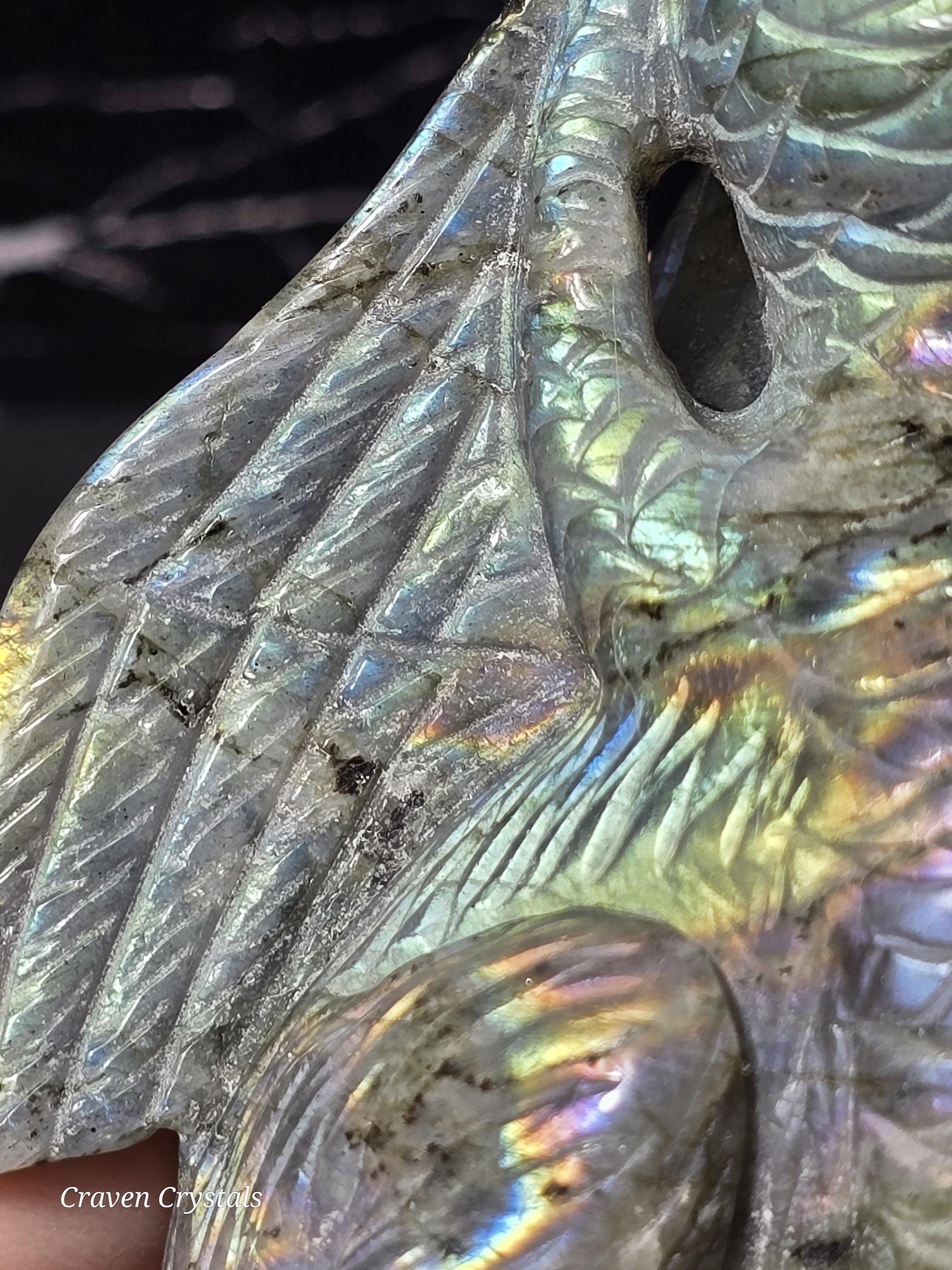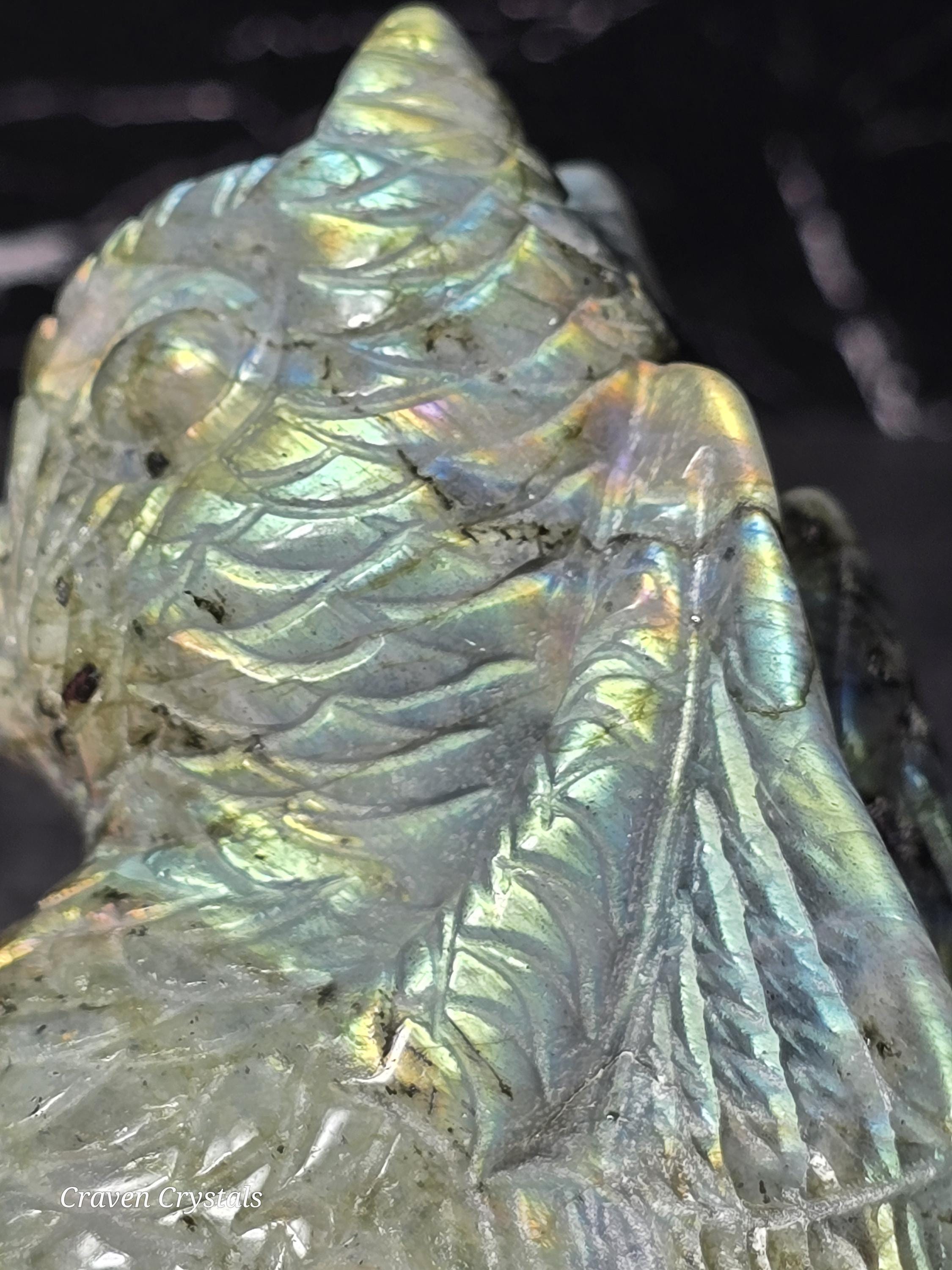 Labradorite Crystal Gryphon (Griffin) Carving with amazing rainbow flash