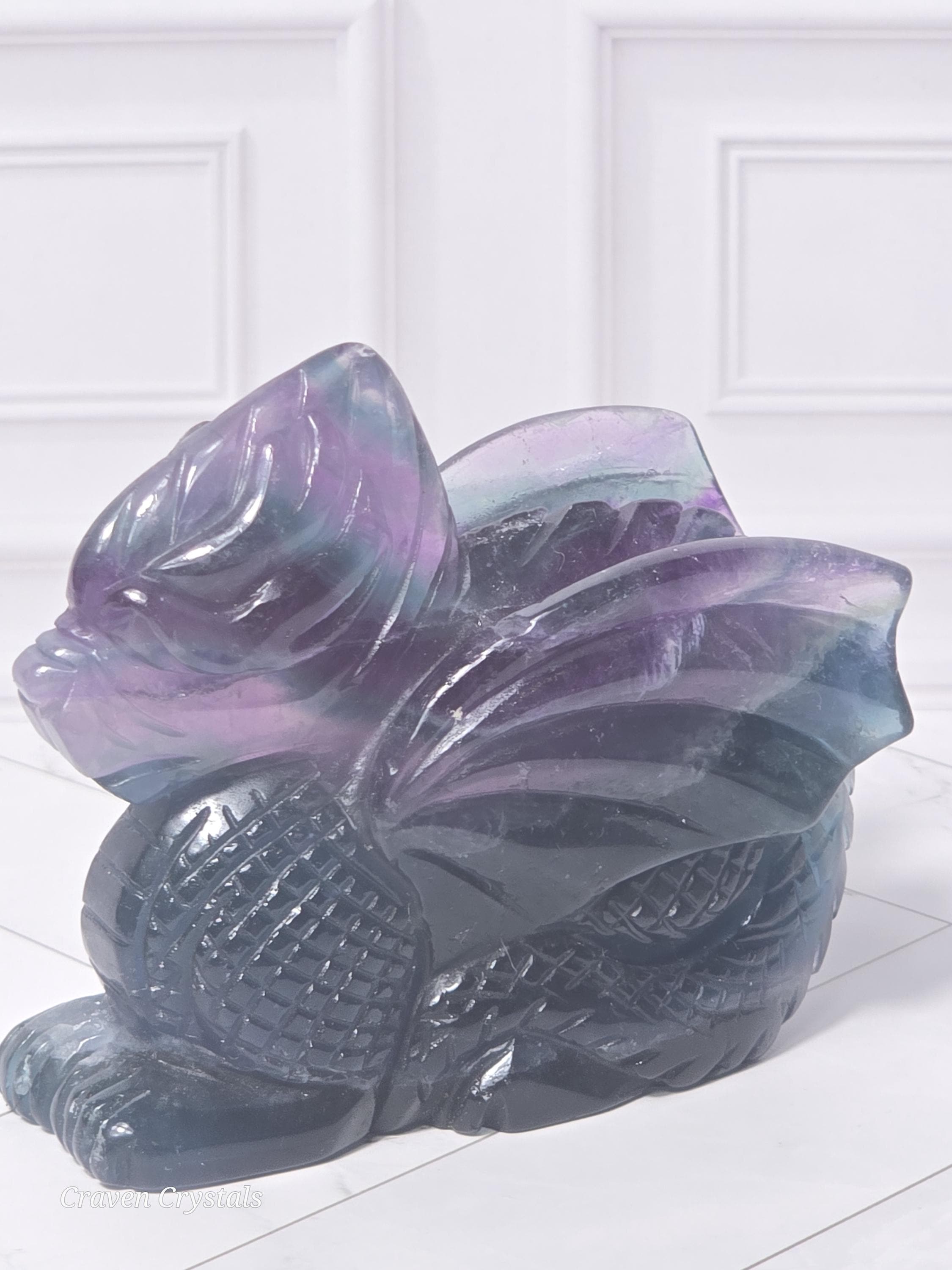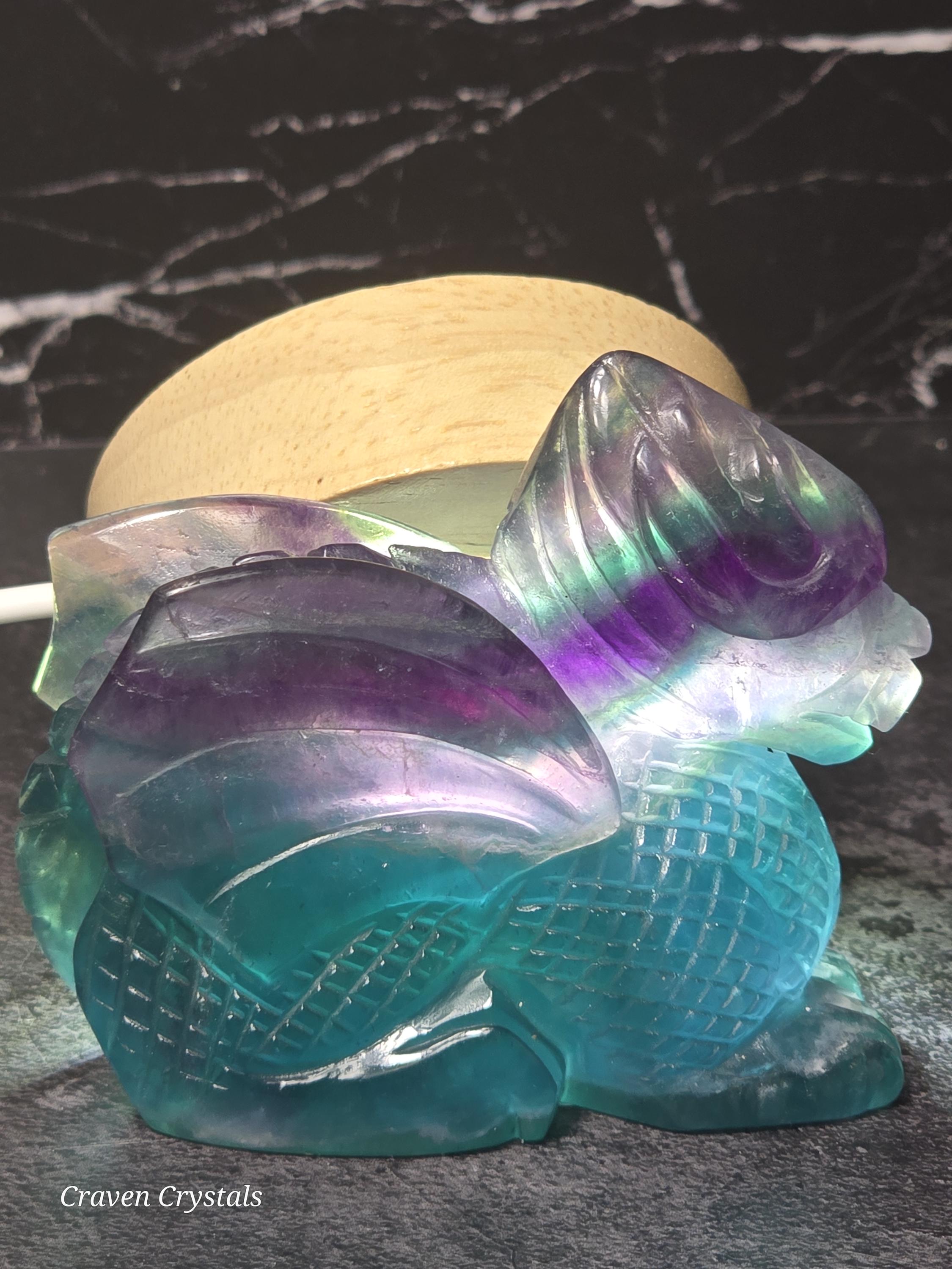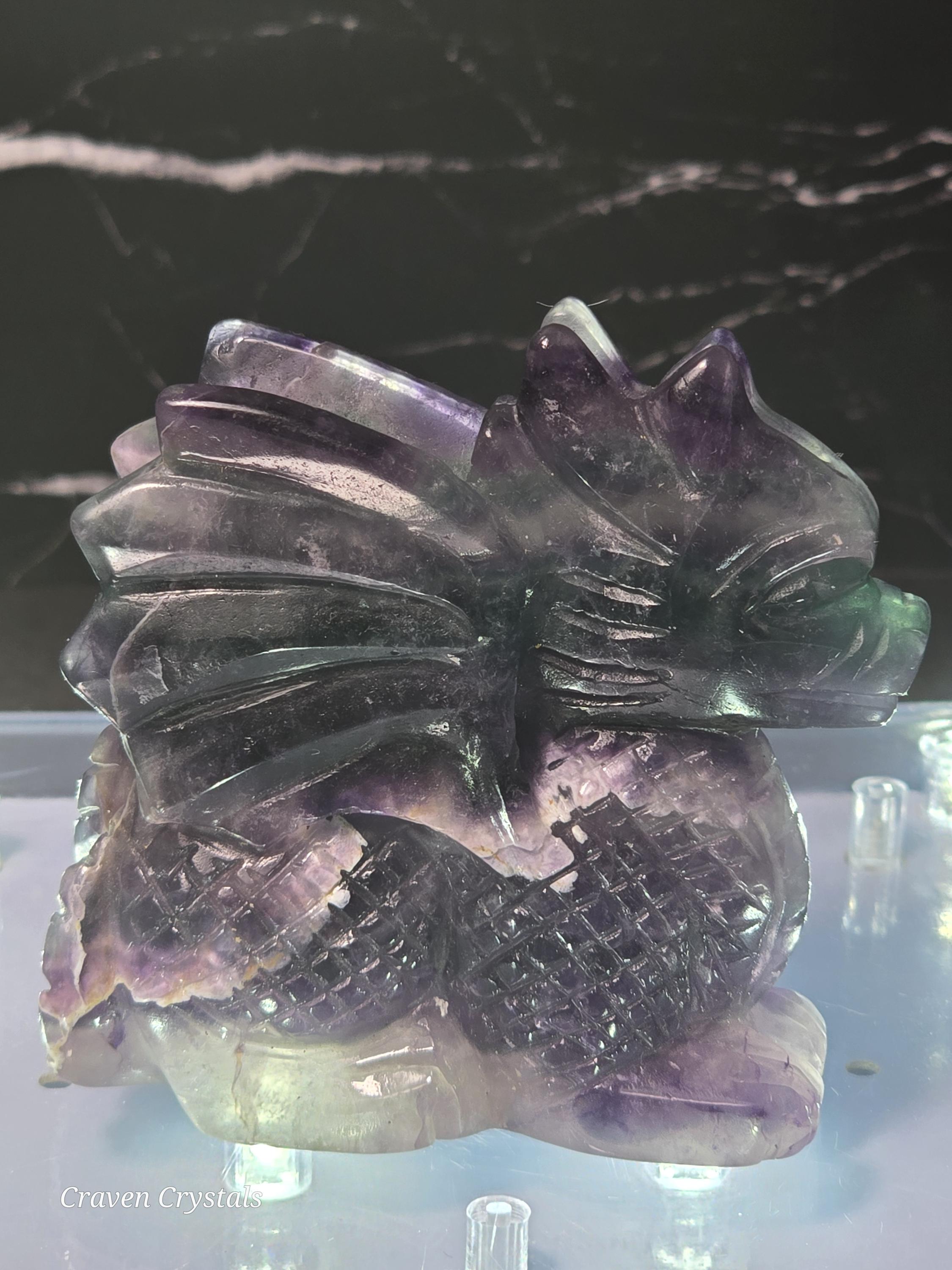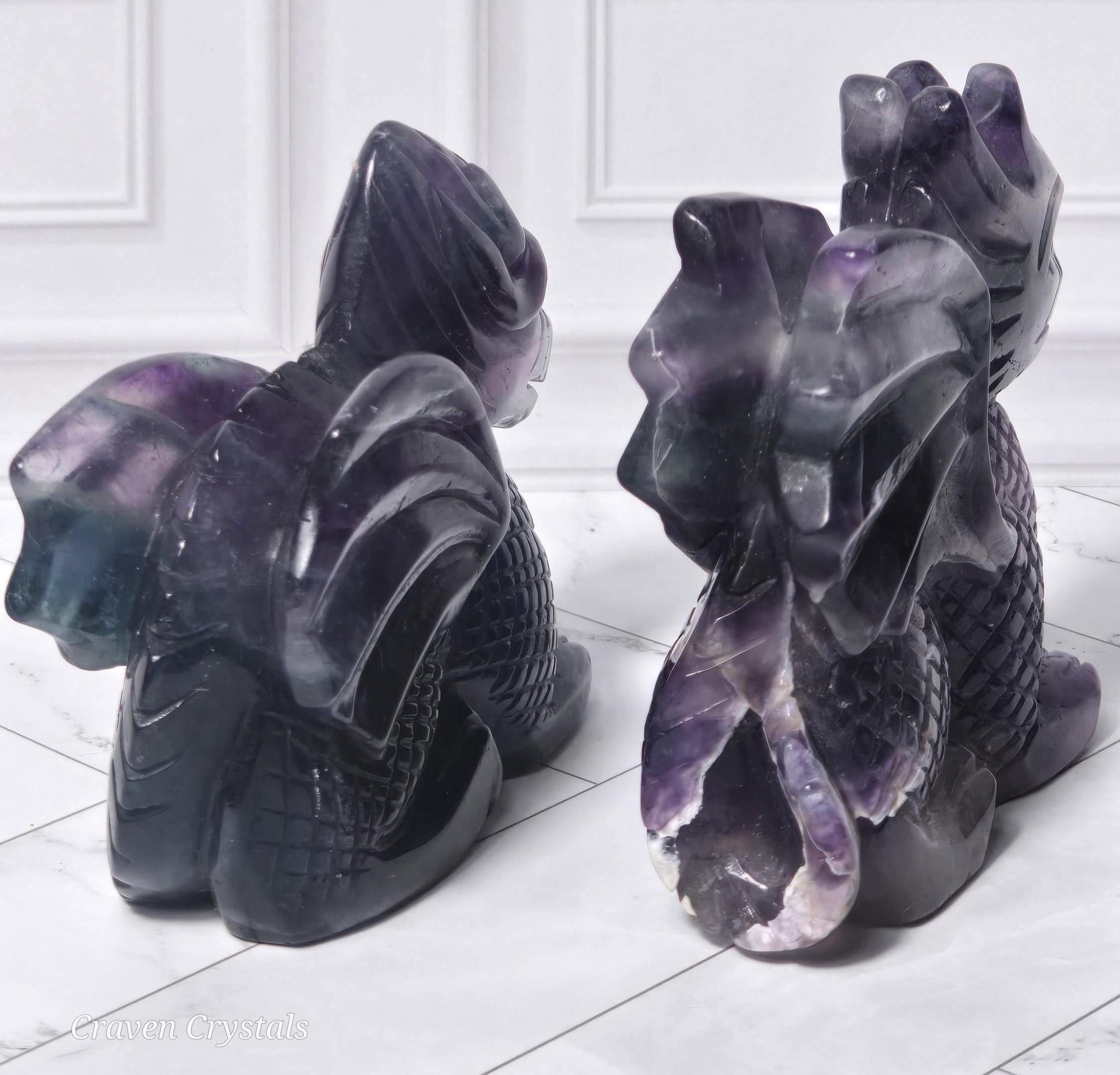 Rainbow Fluorite Crystal Dragon Carvings