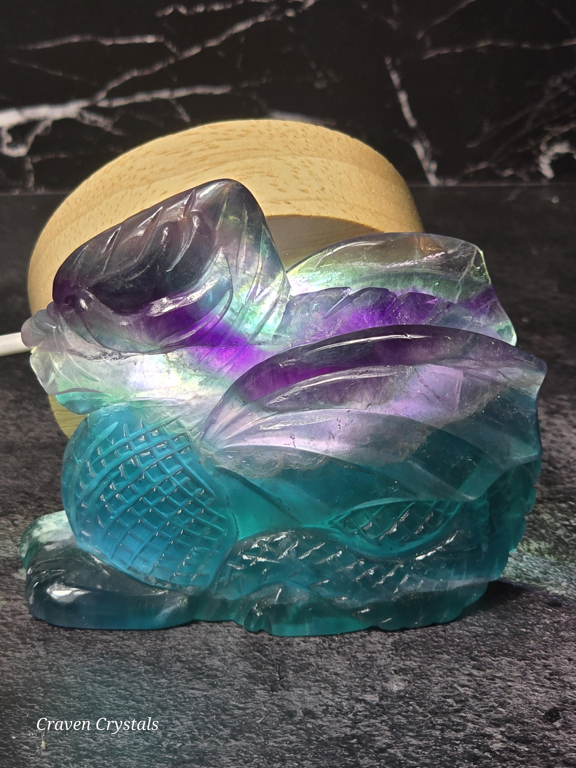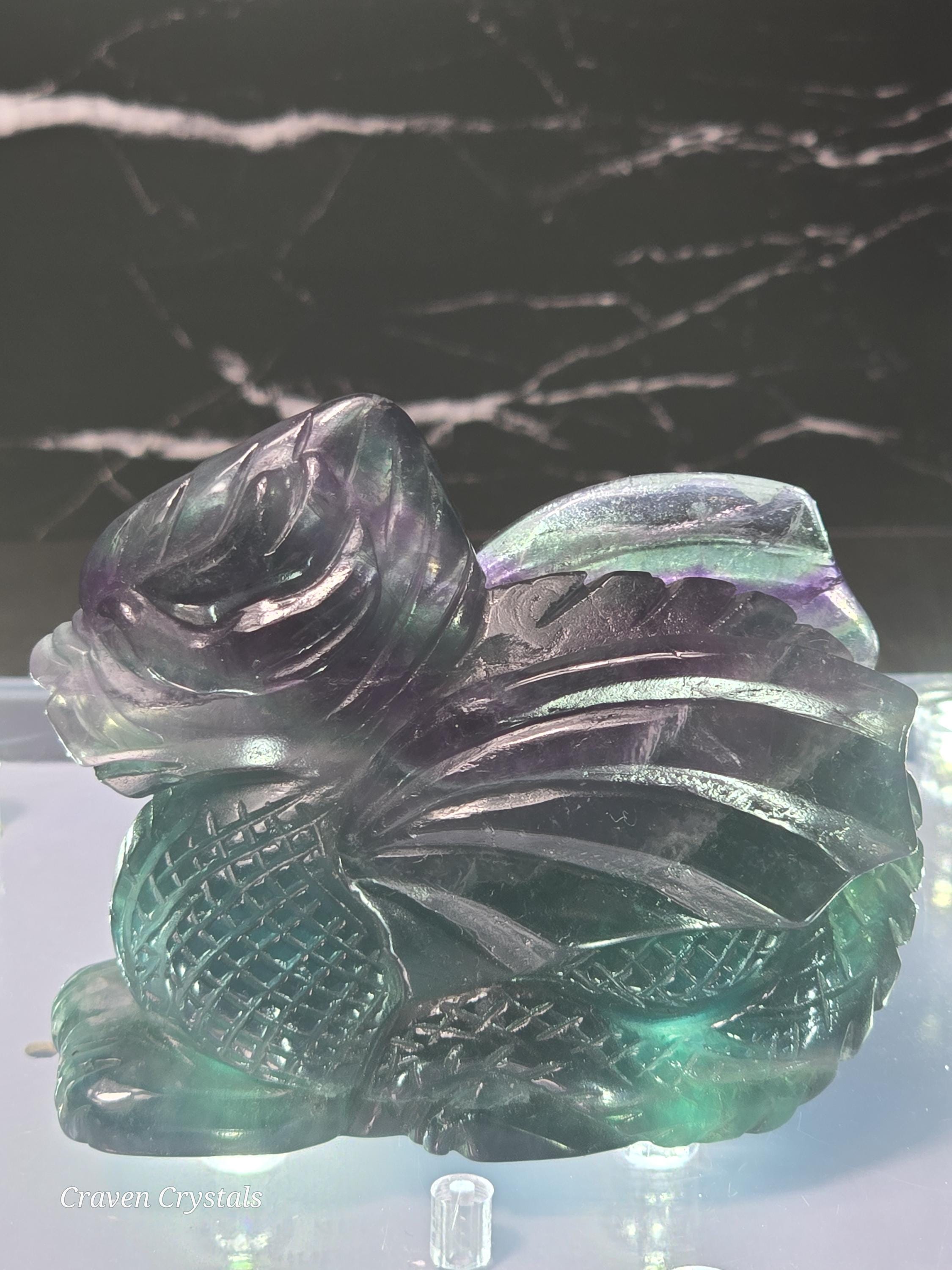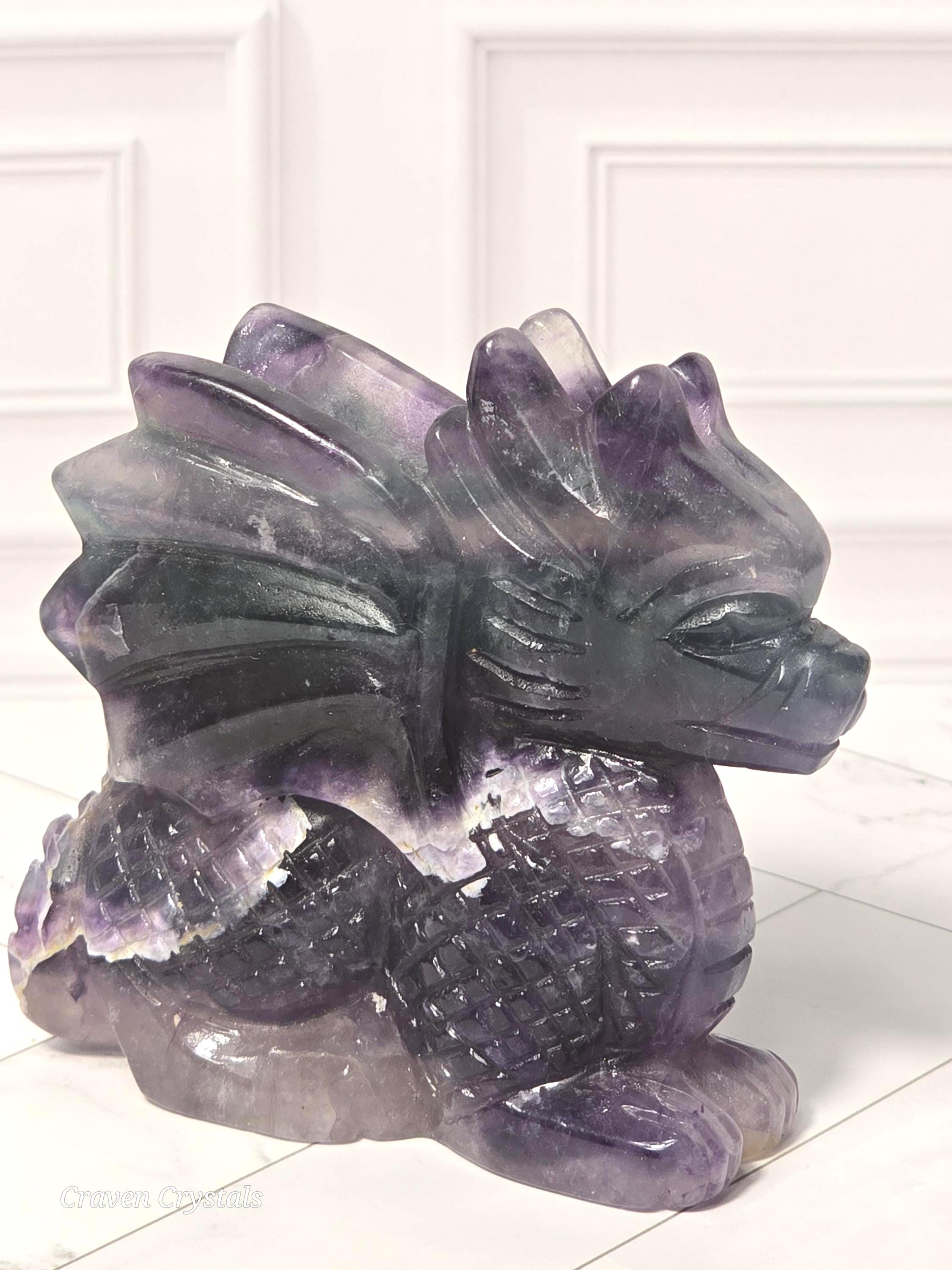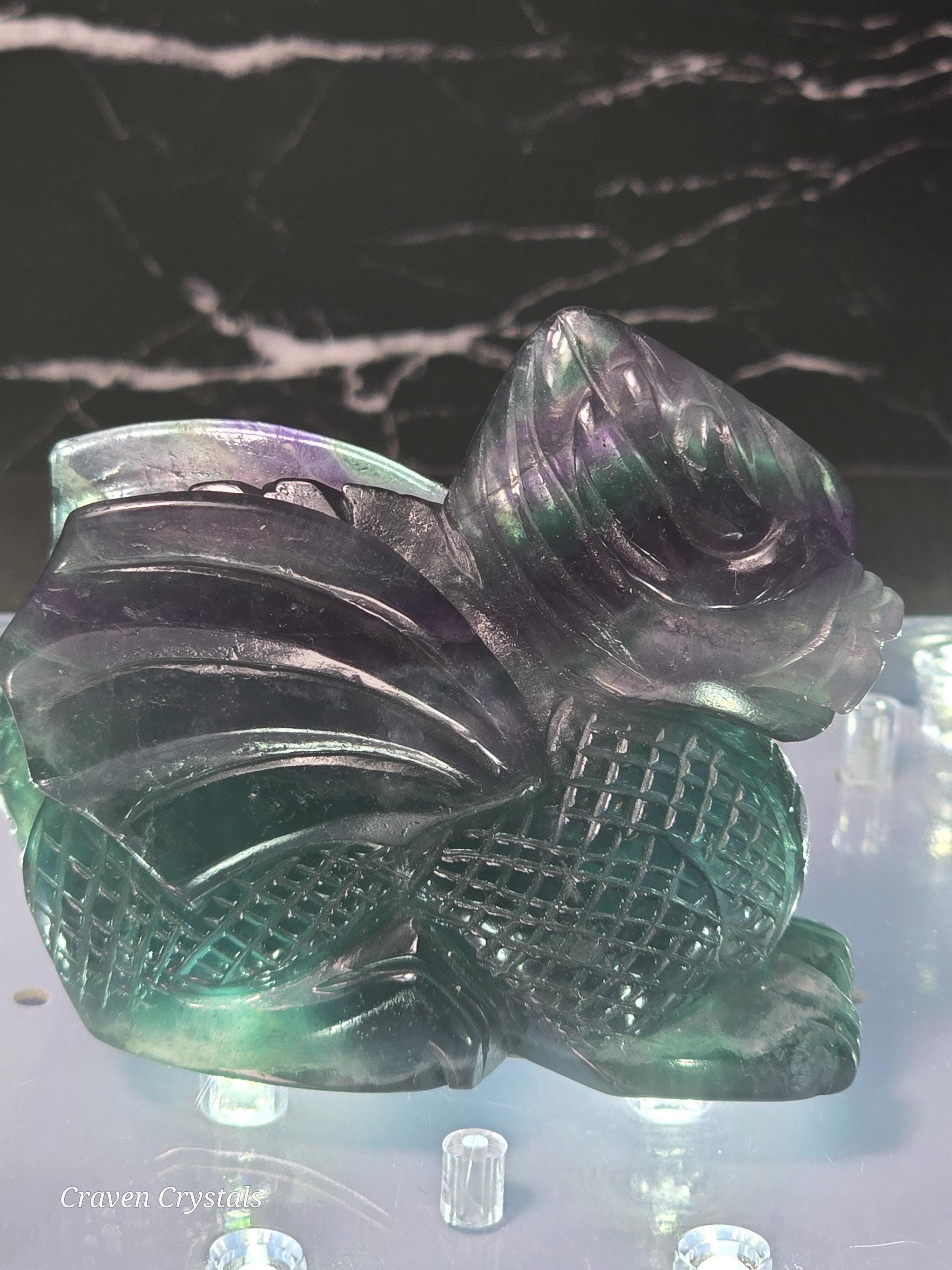 Rainbow Fluorite Crystal Dragon Carvings