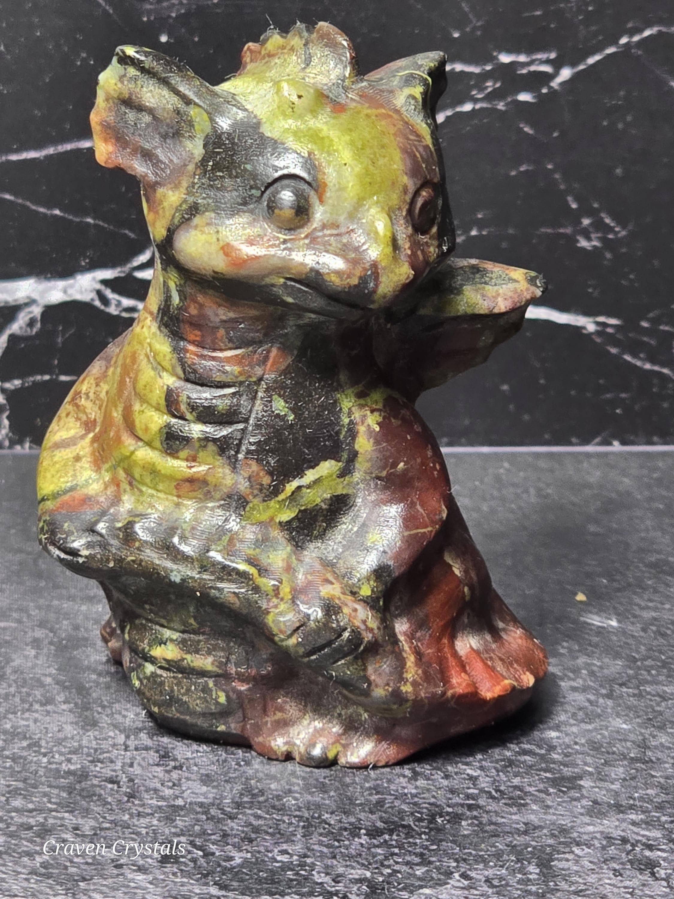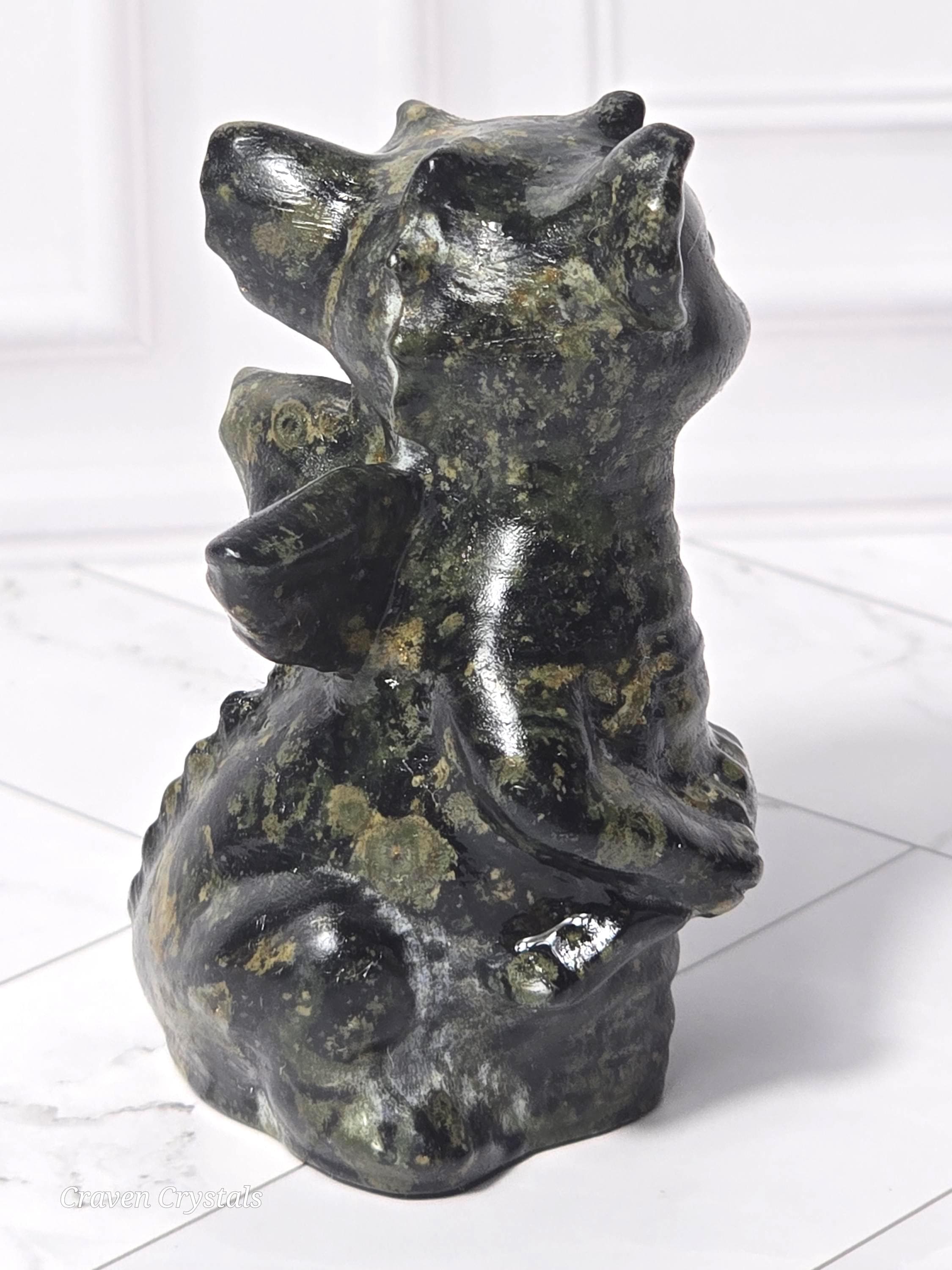 Dragons are often seen as powerful and majestic creatures in mythology and folklore. Dragon-shaped crystals may be associated with attributes like strength, courage, and protection. They can serve as symbols of personal empowerment.