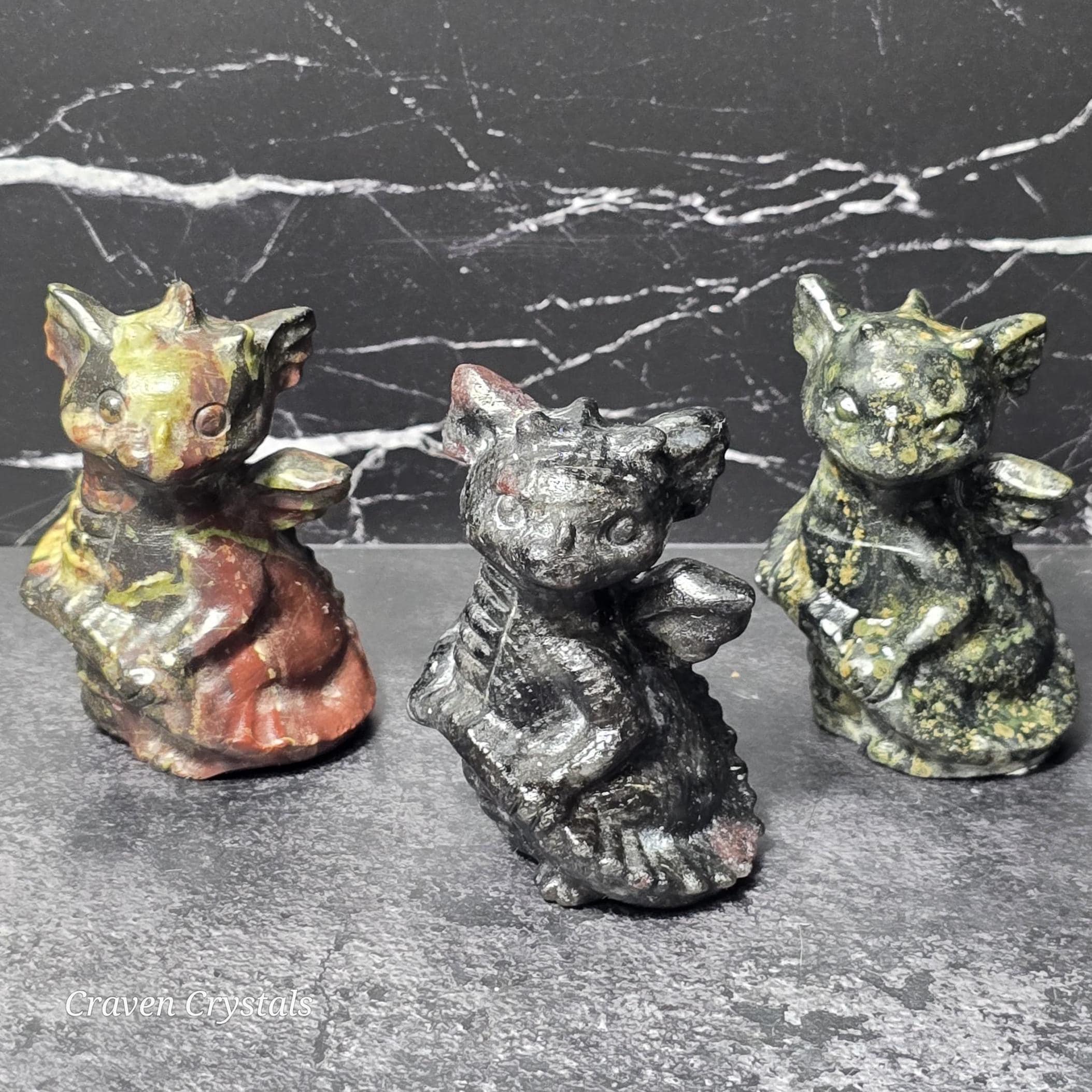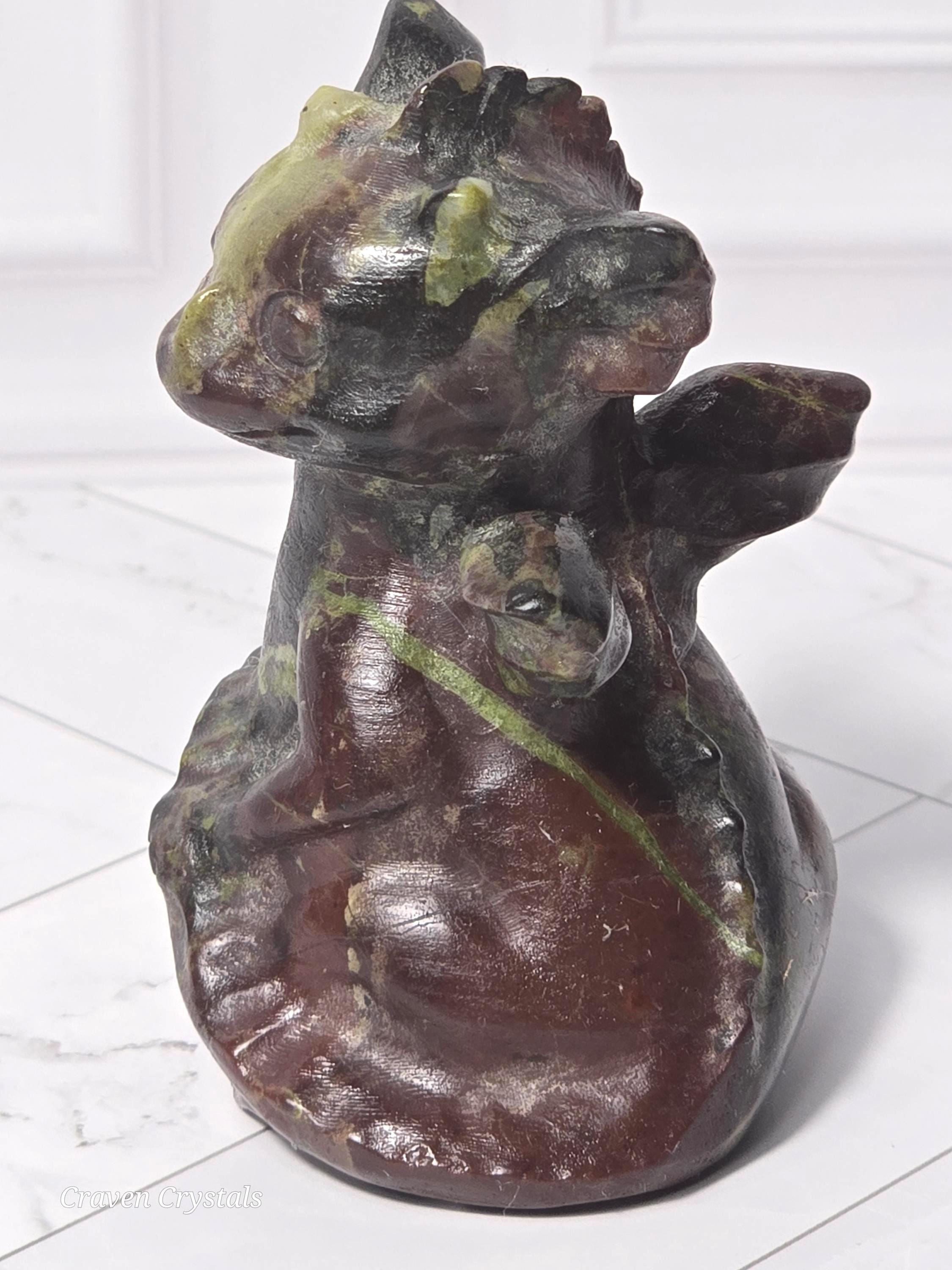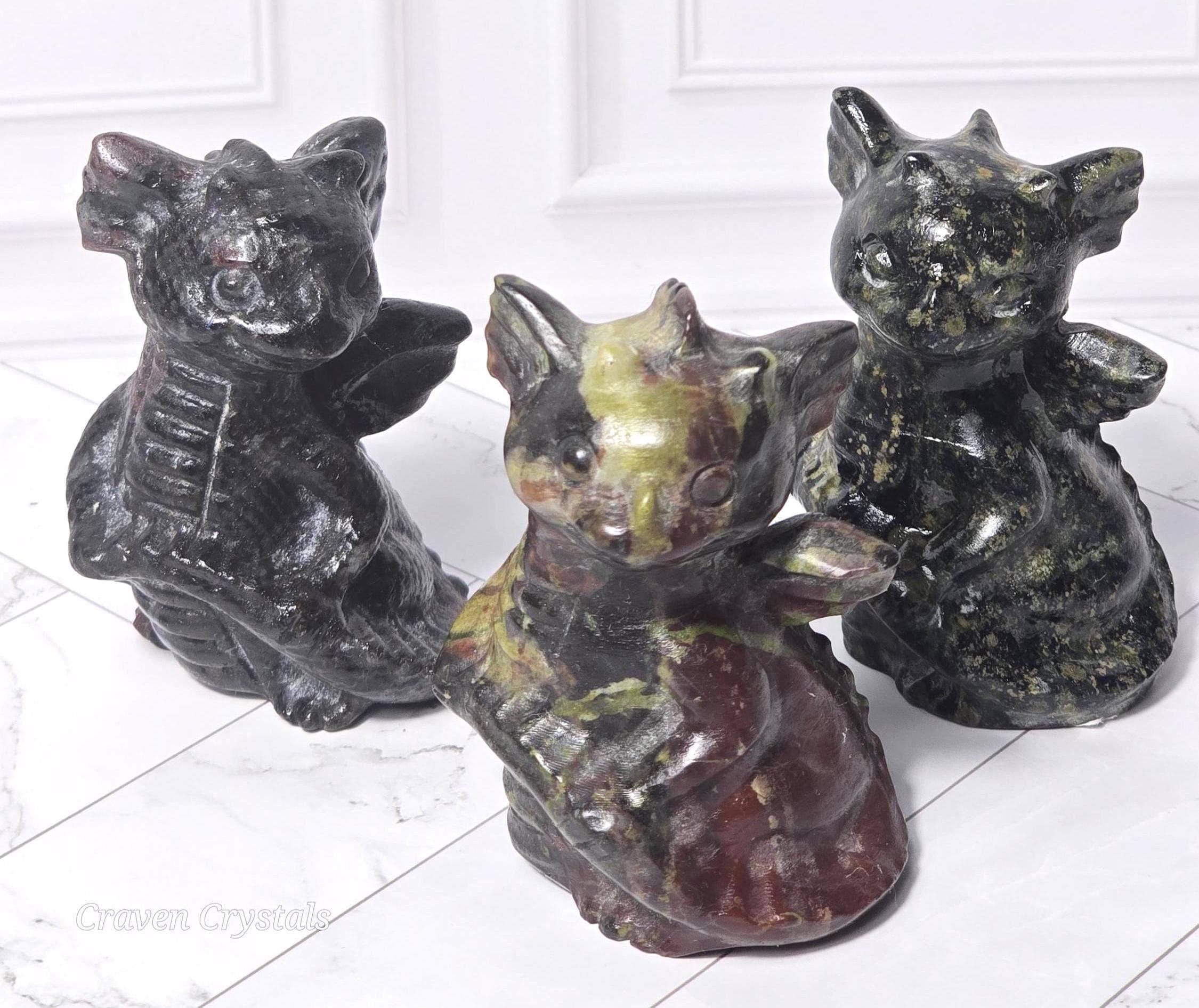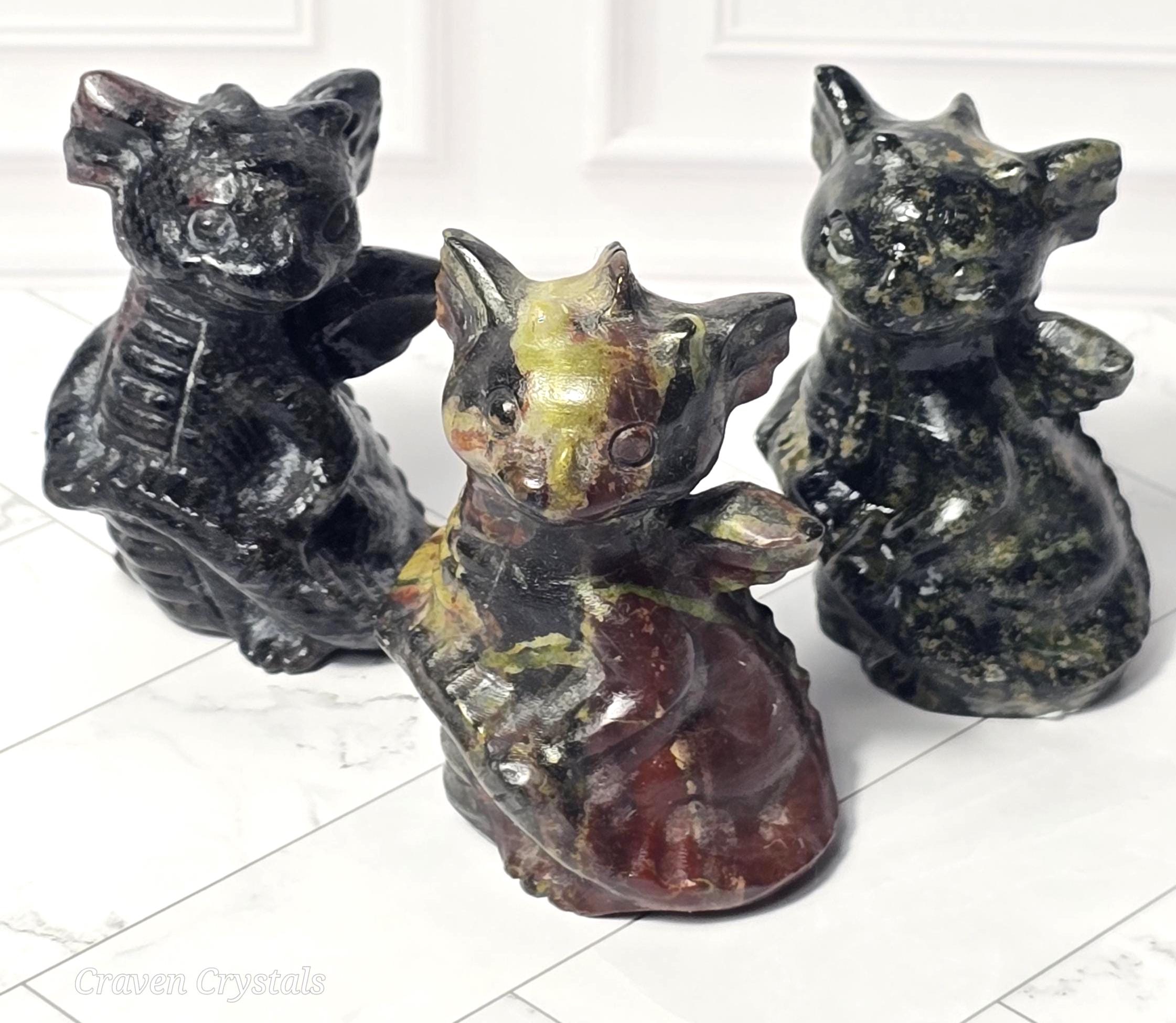Adorable Crystal Baby Dragon Carvings in Bloodstone Jasper, Kambaba Jasper & Garnet Astrophyllite
