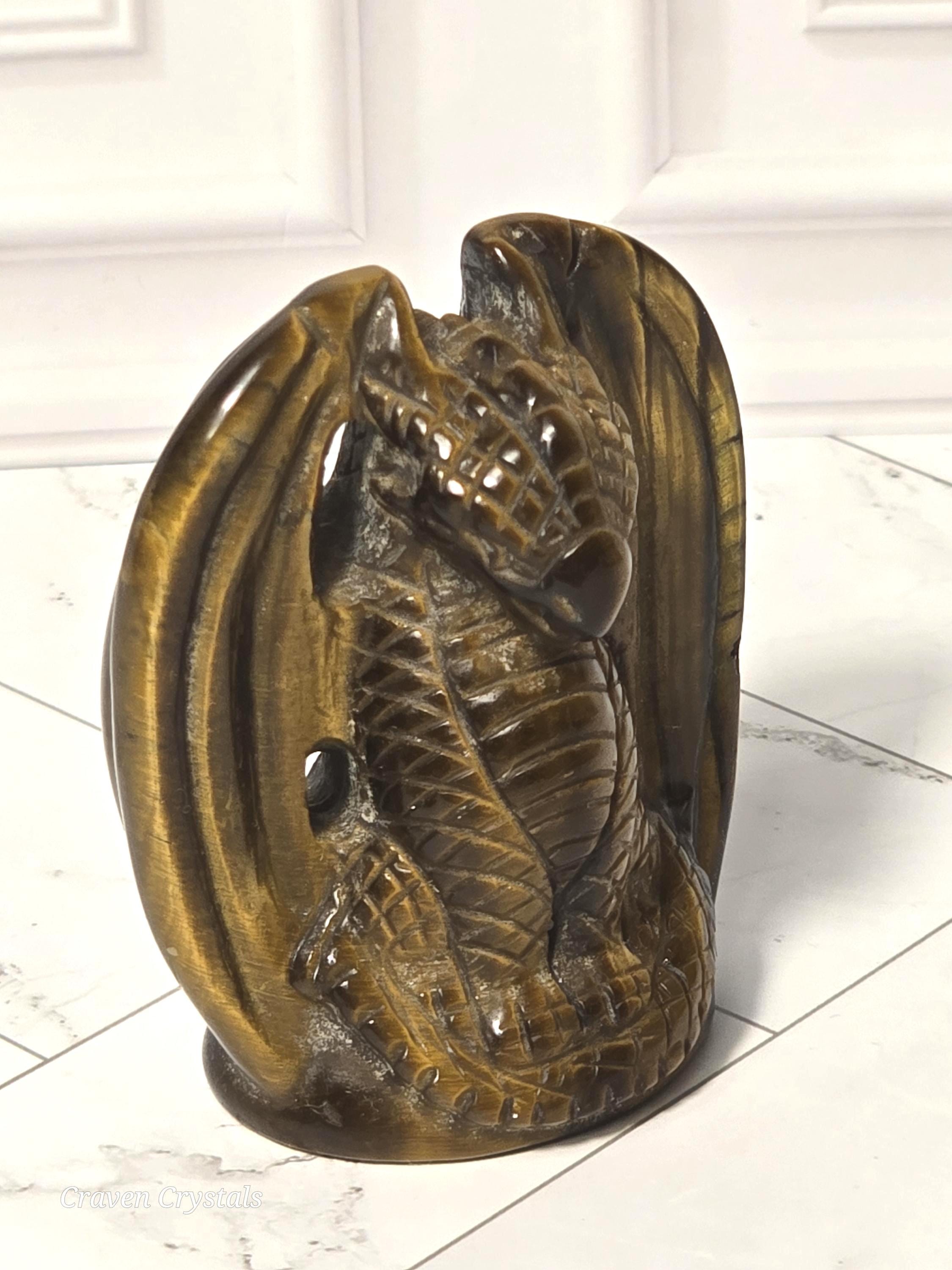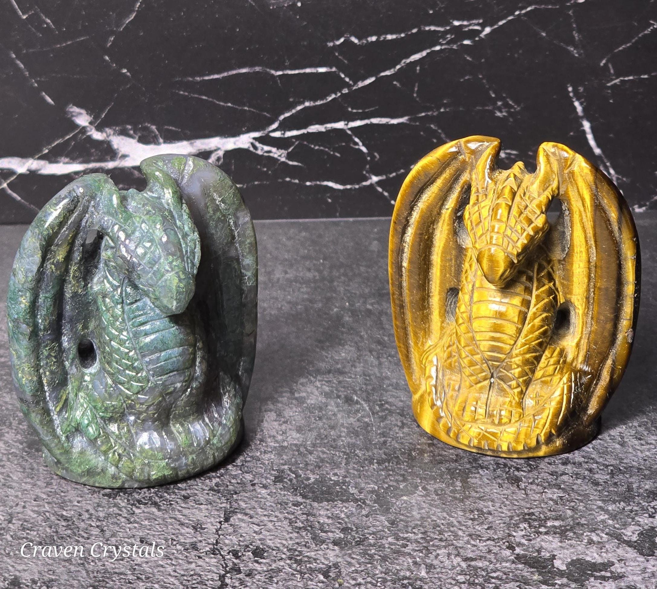 Small Crystal Dragon Carvings available in Tigers Eye and Moss Agate