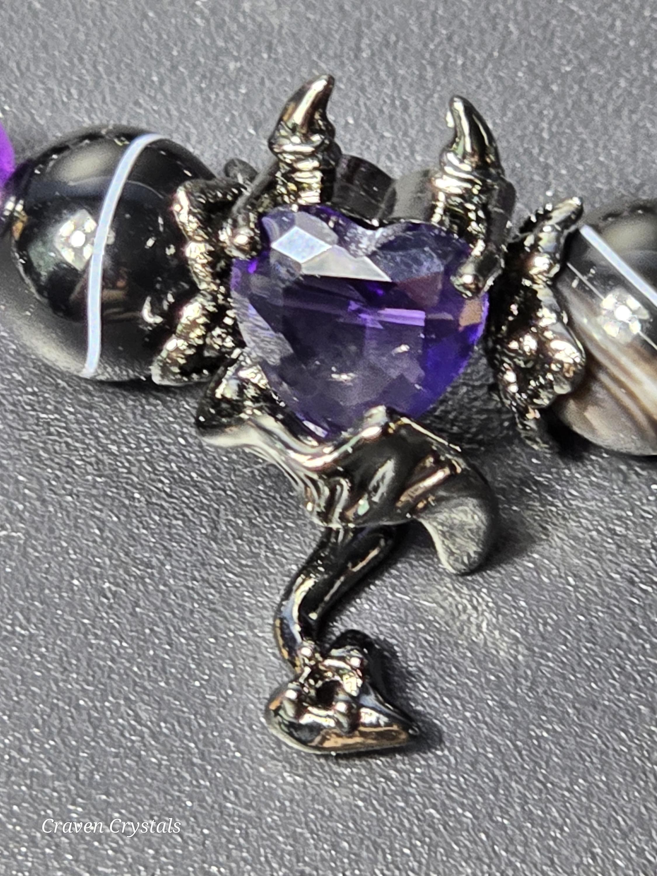 At the center, a striking purple heart adorned with devil horns and a tail commands attention—symbolizing temptation, confidence, and the fearless embrace of your darker, more playful side. It’s a statement of self-expression wrapped in dark elegance.