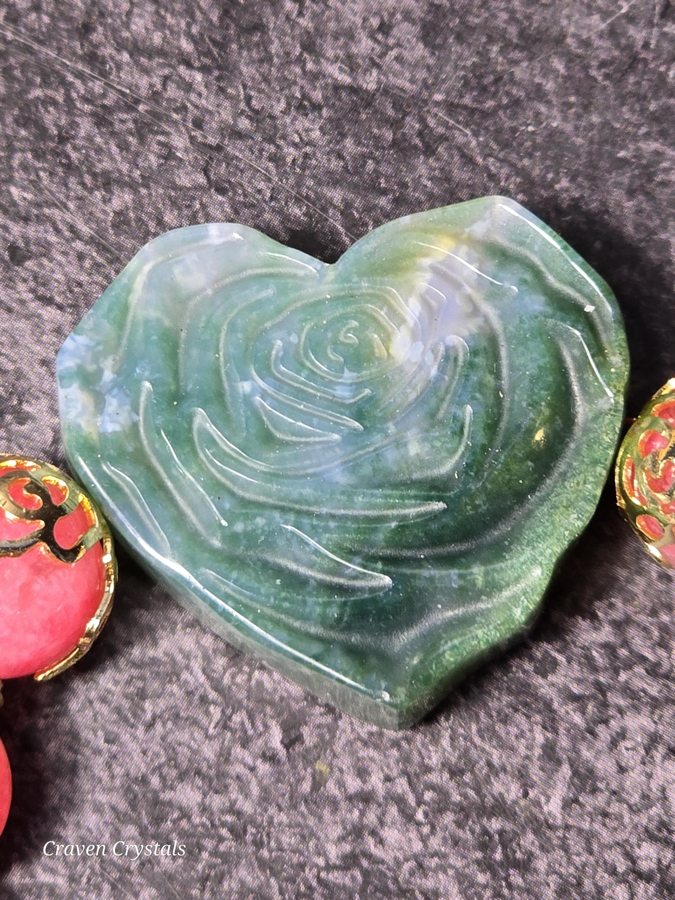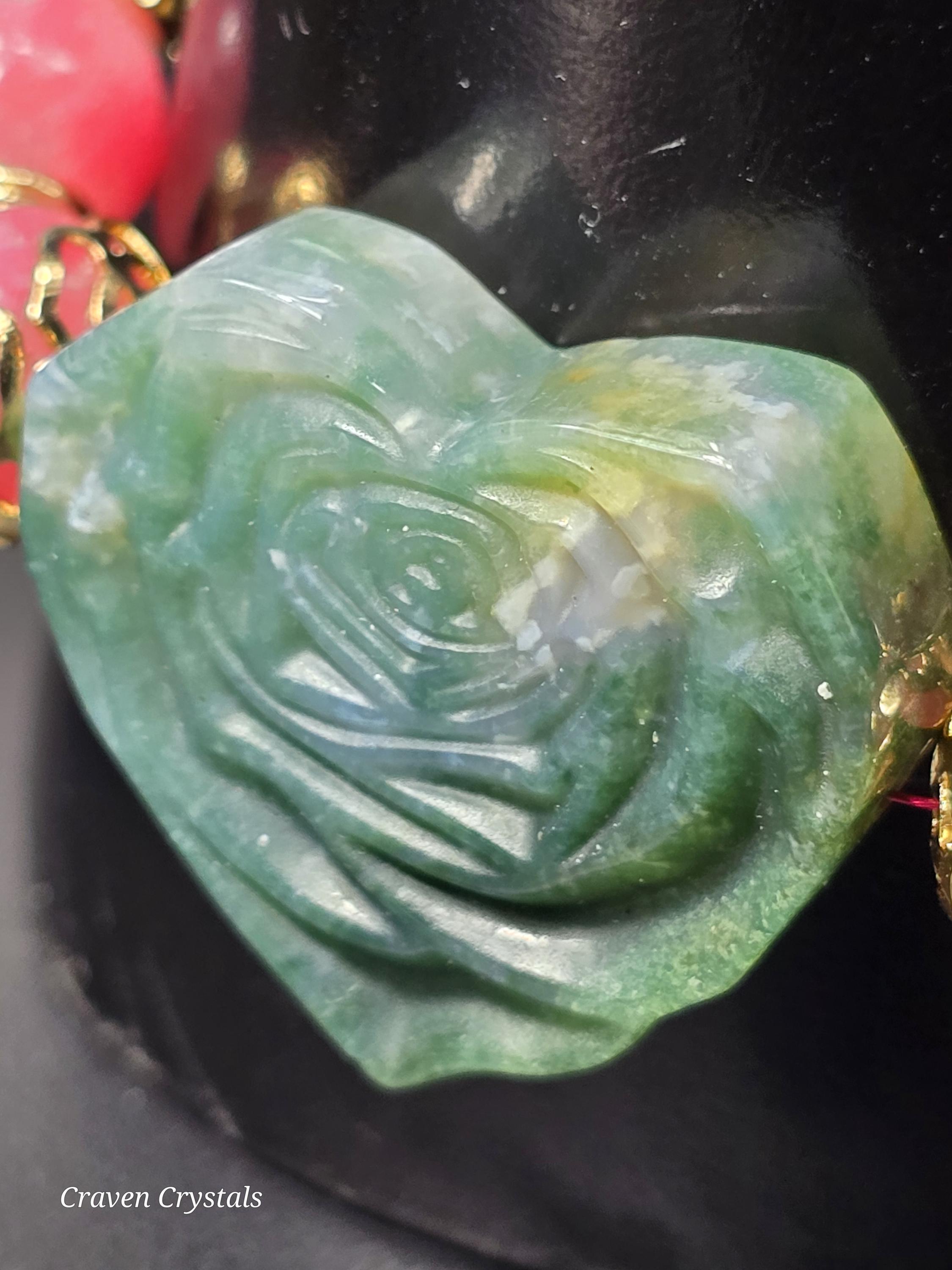 Moss Agate Rose Heart – growth, abundance & blooming resilience