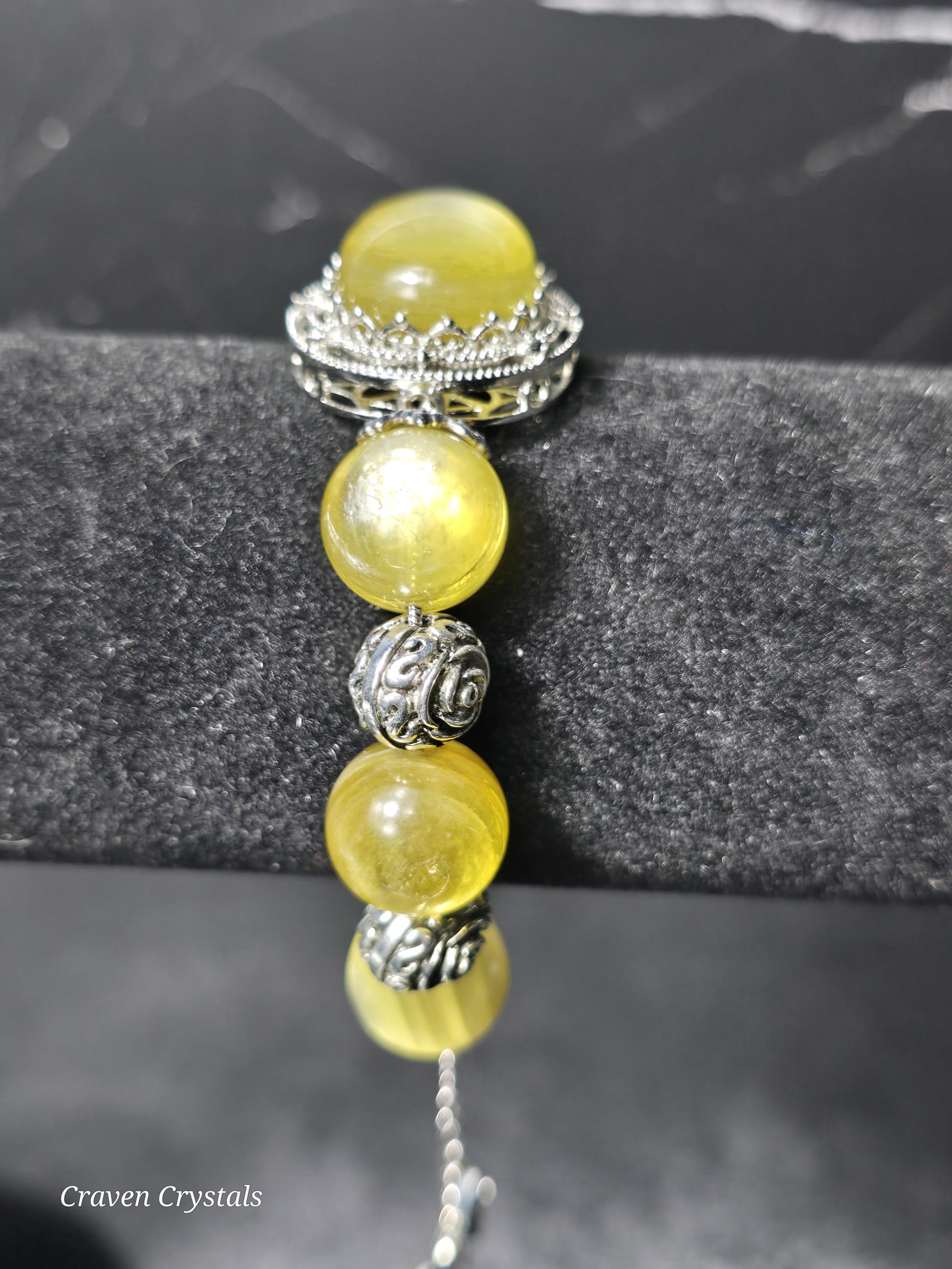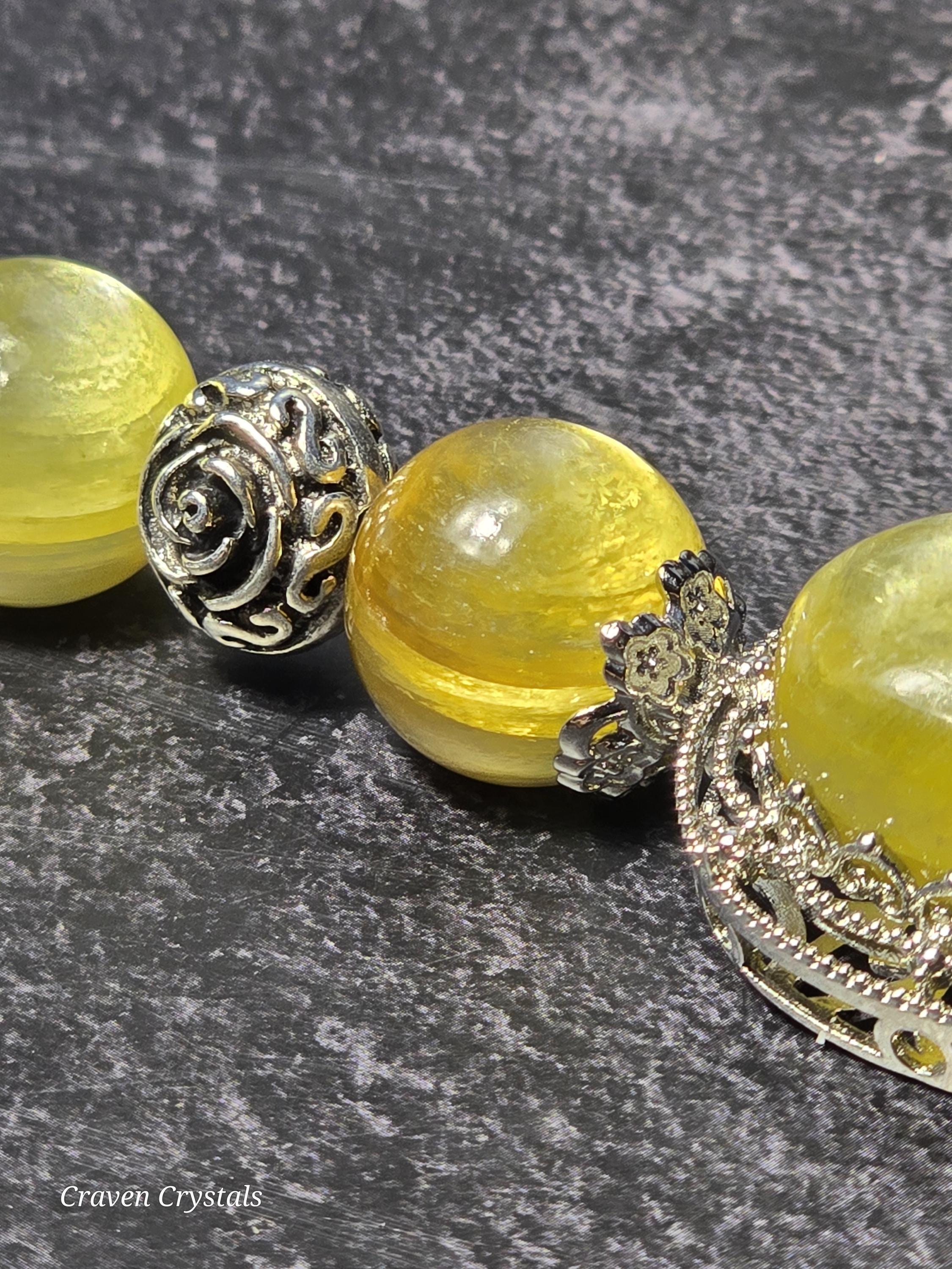 Each Craven Crystals bracelet is thoughtfully handcrafted using natural stones, elastic cord, and carefully selected metals. To preserve the beauty and integrity of your piece, handle it with care and avoid excessive stretching. Bracelets should be rolled on and off the wrist rather than pulled, especially those made with elastic. It is recommended to remove your bracelet before sleeping, bathing, swimming, exercising, or performing household tasks, as moisture, chemicals, and impact can weaken elastic, dull metals, and damage stones. Sterling silver and mixed metal components may naturally develop a soft patina or tarnish over time. This is a normal process and can be minimized by keeping your jewelry dry and storing it in a soft pouch or jewelry box when not in use. A gentle wipe with a soft, dry cloth after wearing helps remove natural oils and maintain shine. Avoid submerging bracelets in water or using chemical or ultrasonic cleaners. For sterling silver accents only, a silver polishing cloth may be used. Delicate beads, glass, shell, charms, and detailed focal pieces should be protected from hard knocks or pressure, as natural and specialty materials can chip or crack if dropped. Crystals, stones, and shells are natural materials and may display unique variations in color, texture, or pattern. These characteristics are part of what makes each Craven Crystals piece one of a kind. With mindful care, your bracelet will continue to bring beauty, meaning, and enjoyment for years to come.
