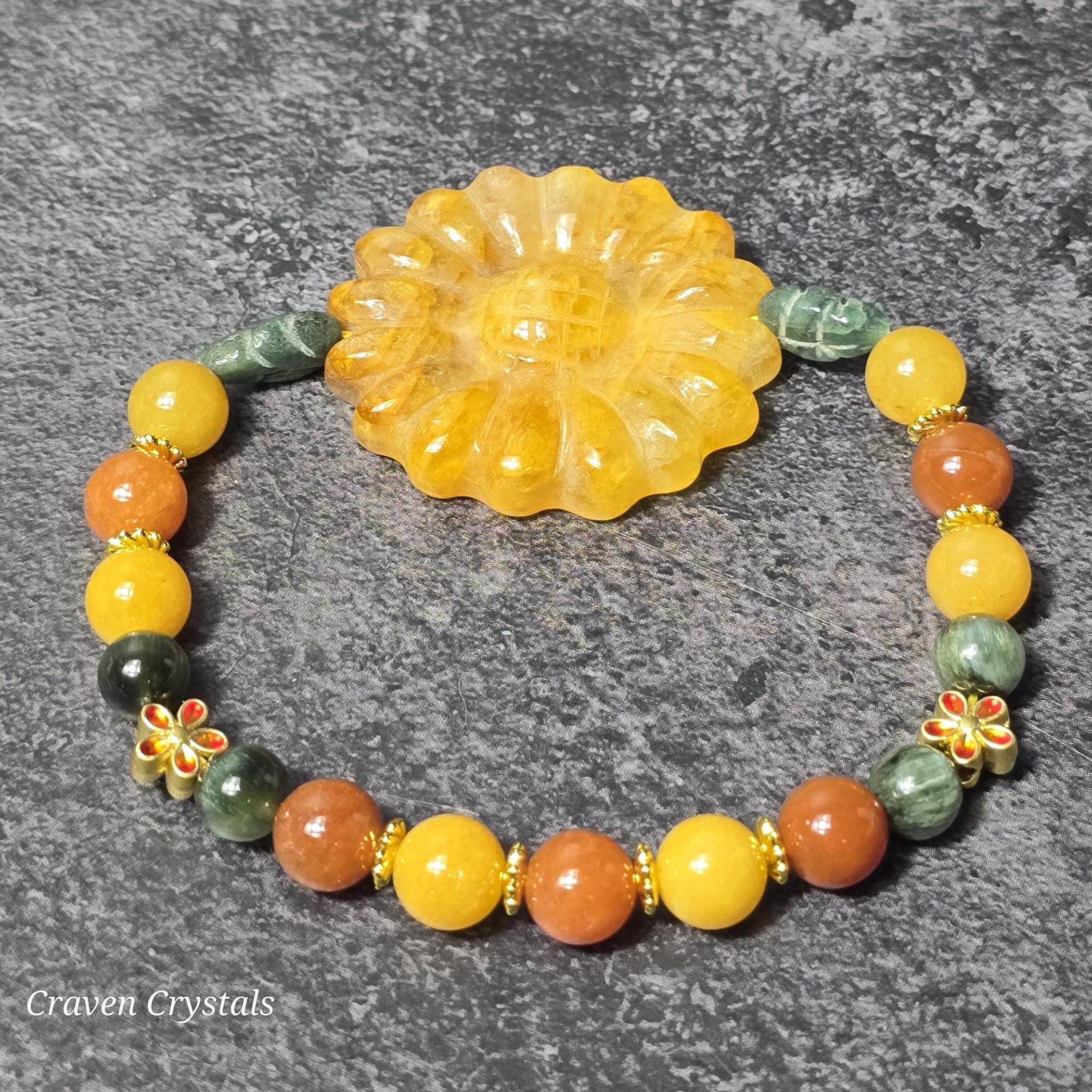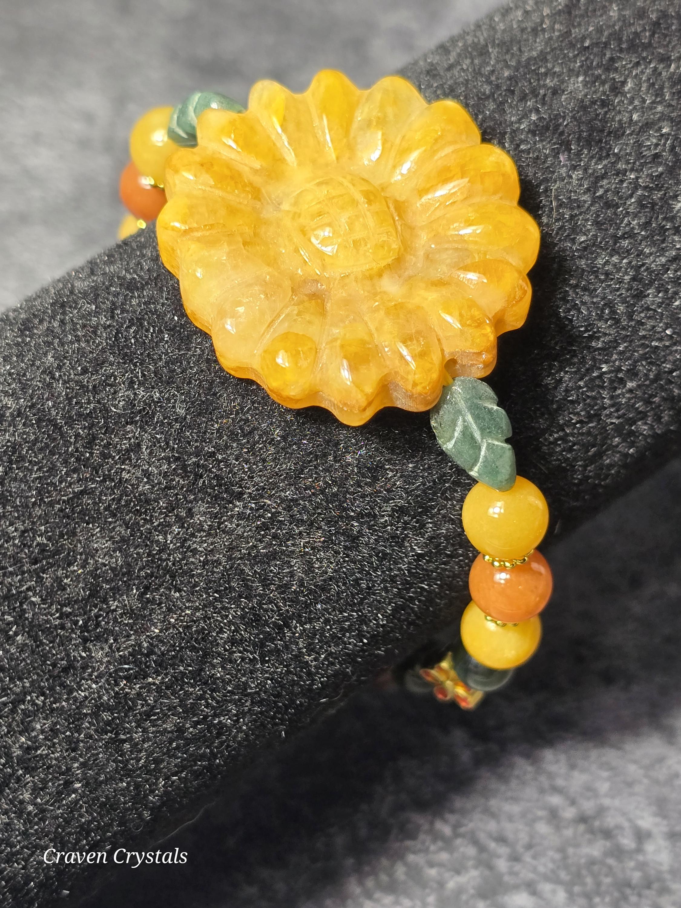 Perfect for nature lovers and anyone drawn to warm, joyful crystal energy, Golden Harvest feels like wearing a sunlit garden on your wrist—a symbol of growth, happiness, and the golden moments life has to offer. 🌞🌿🌻