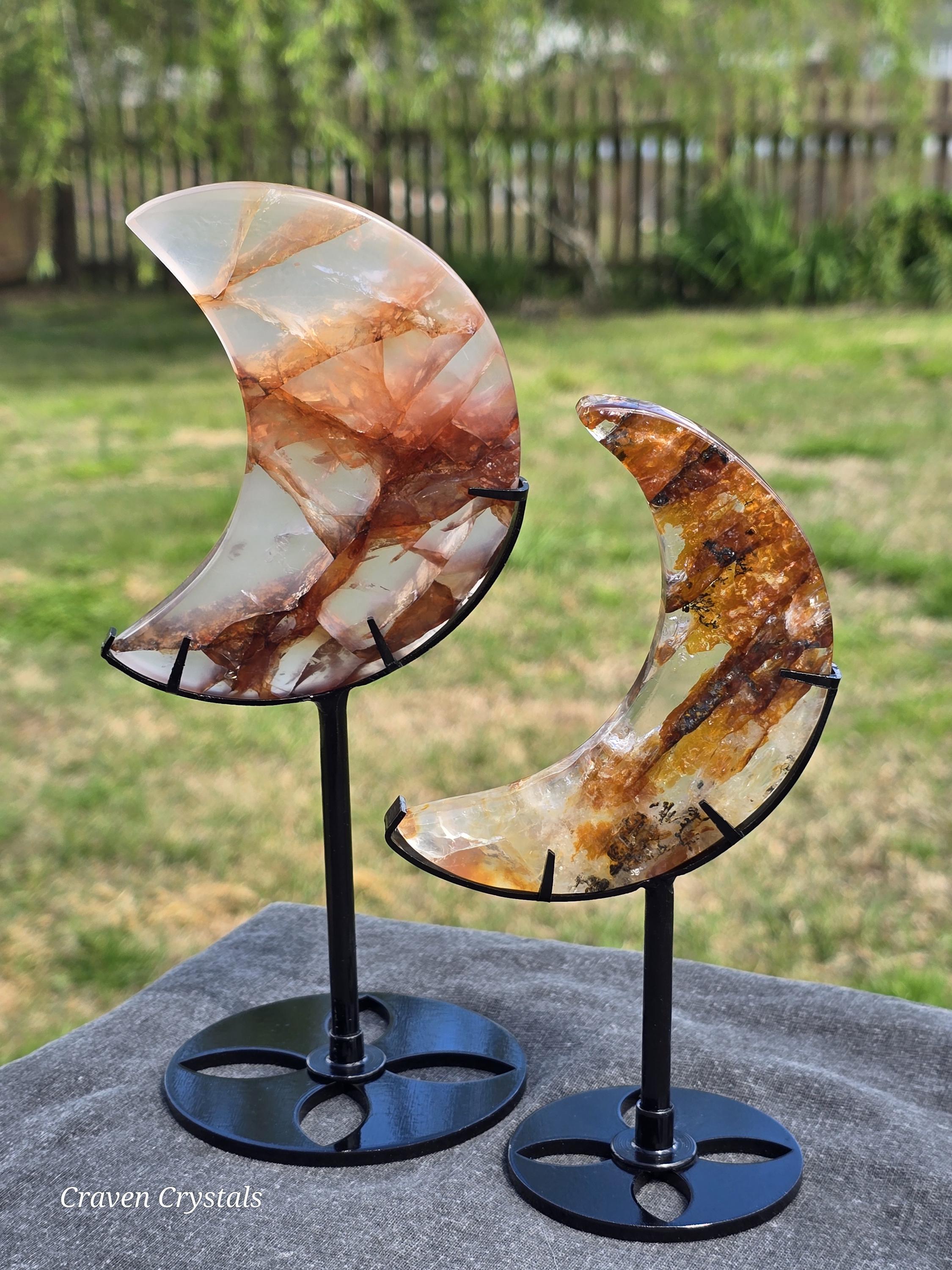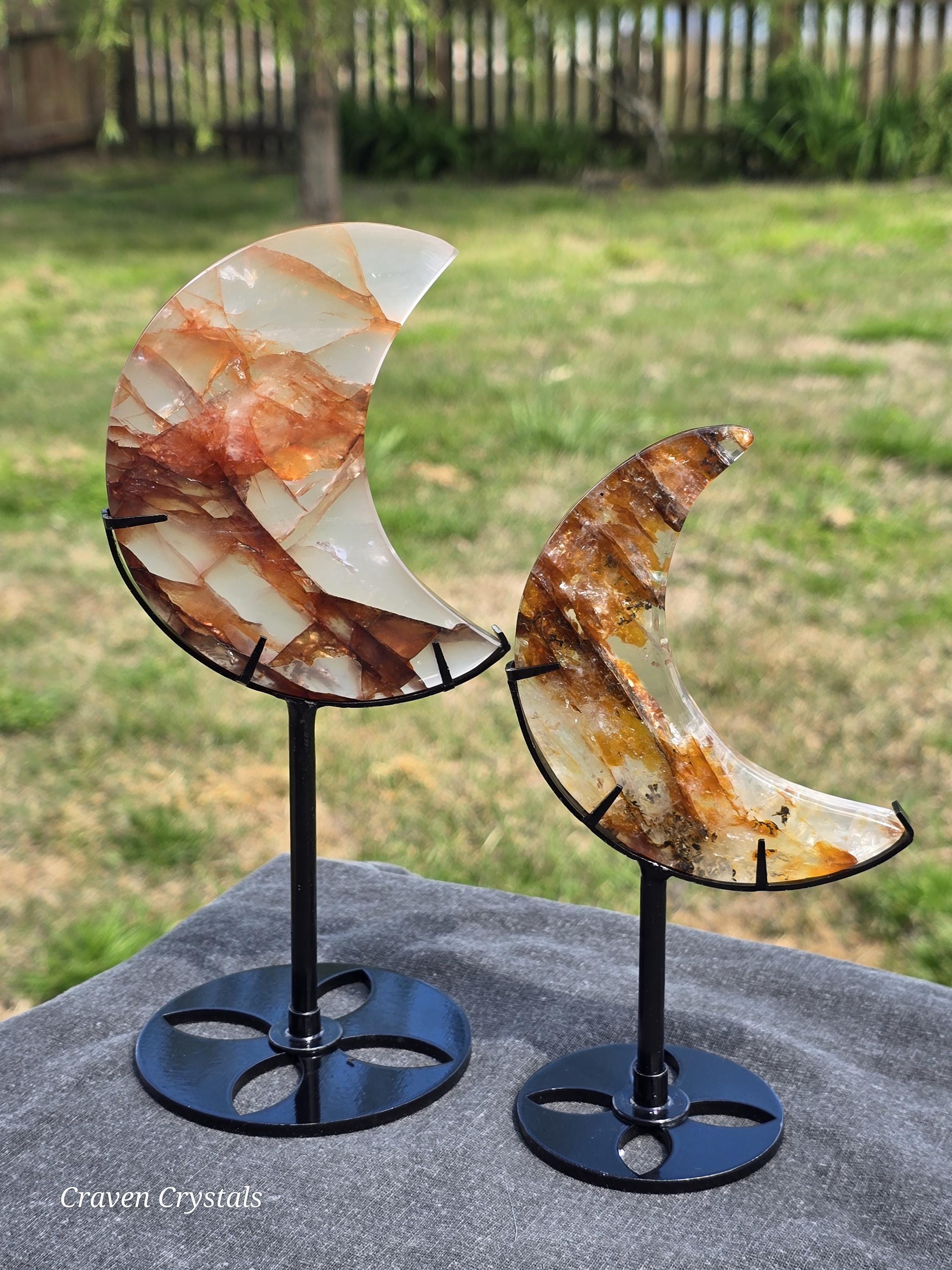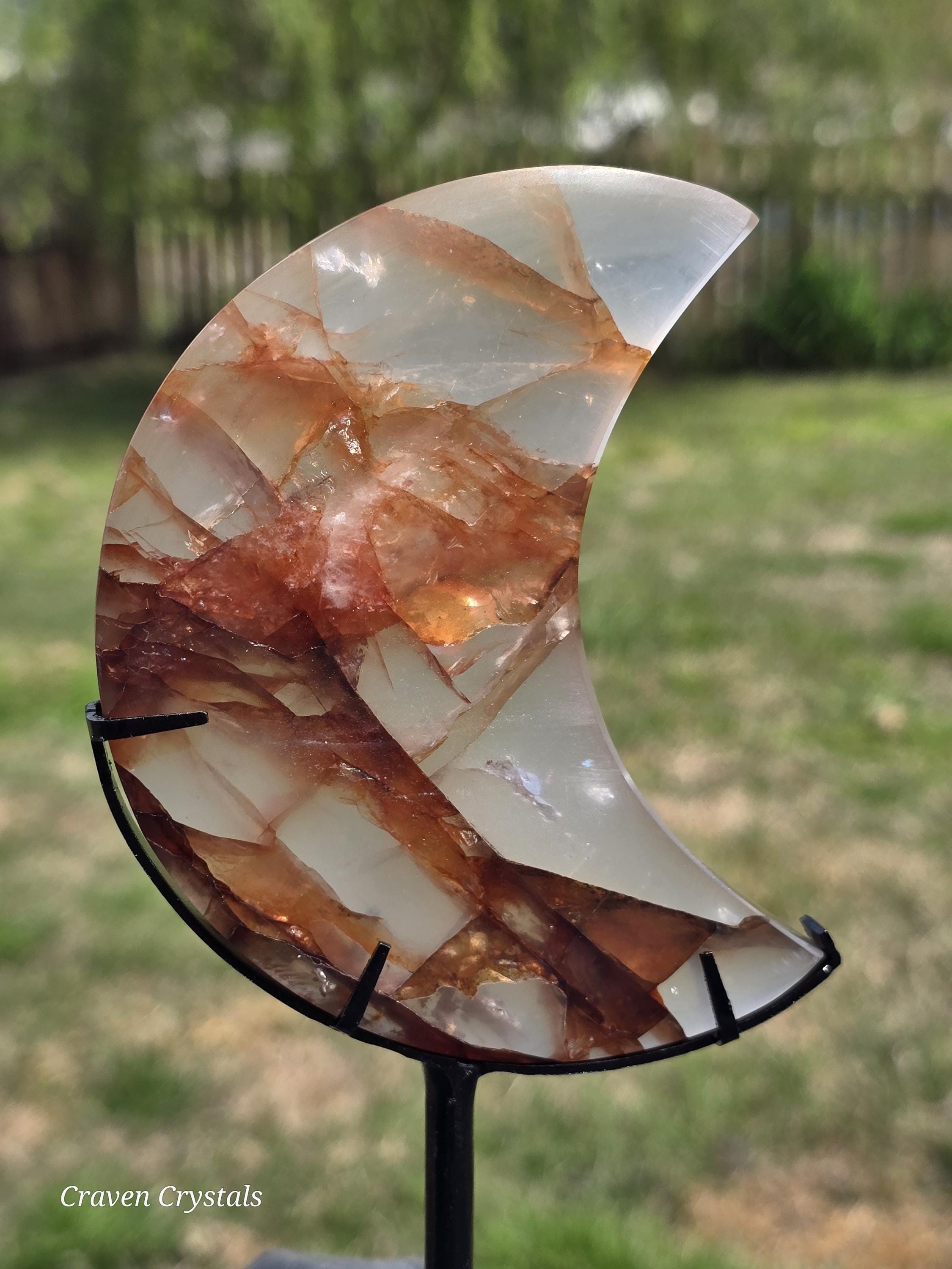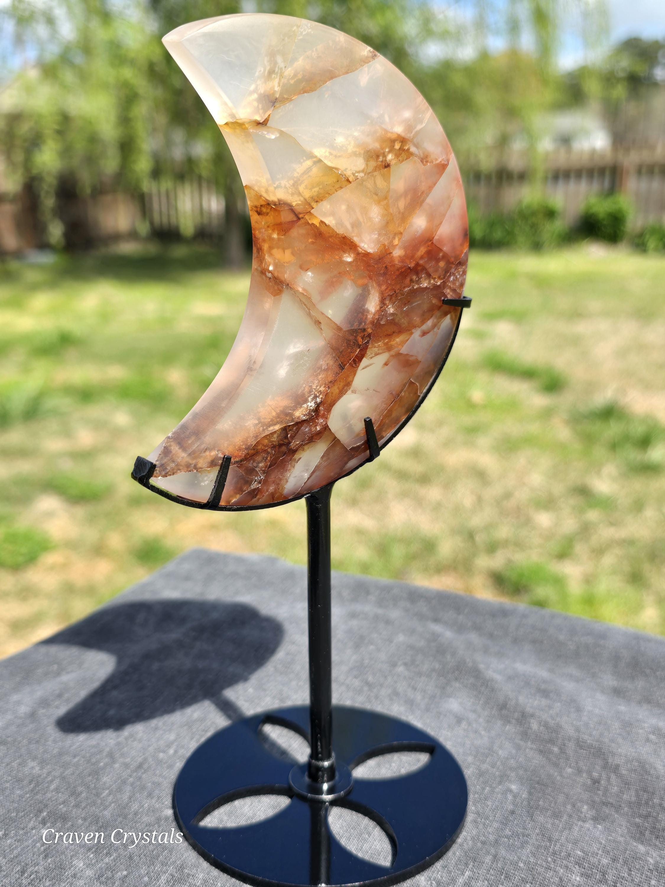 Moon-shaped crystals are often associated with lunar energy and the moon's cycles. The moon is linked to feminine energy, intuition, emotions, and the ebb and flow of life. Crystals shaped like moons are used to harness and amplify these lunar qualities.