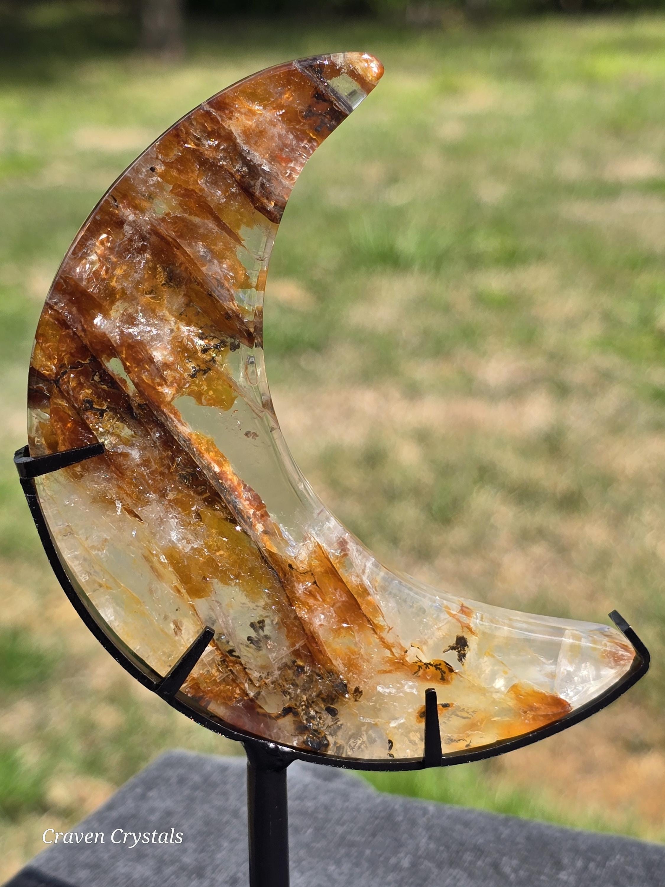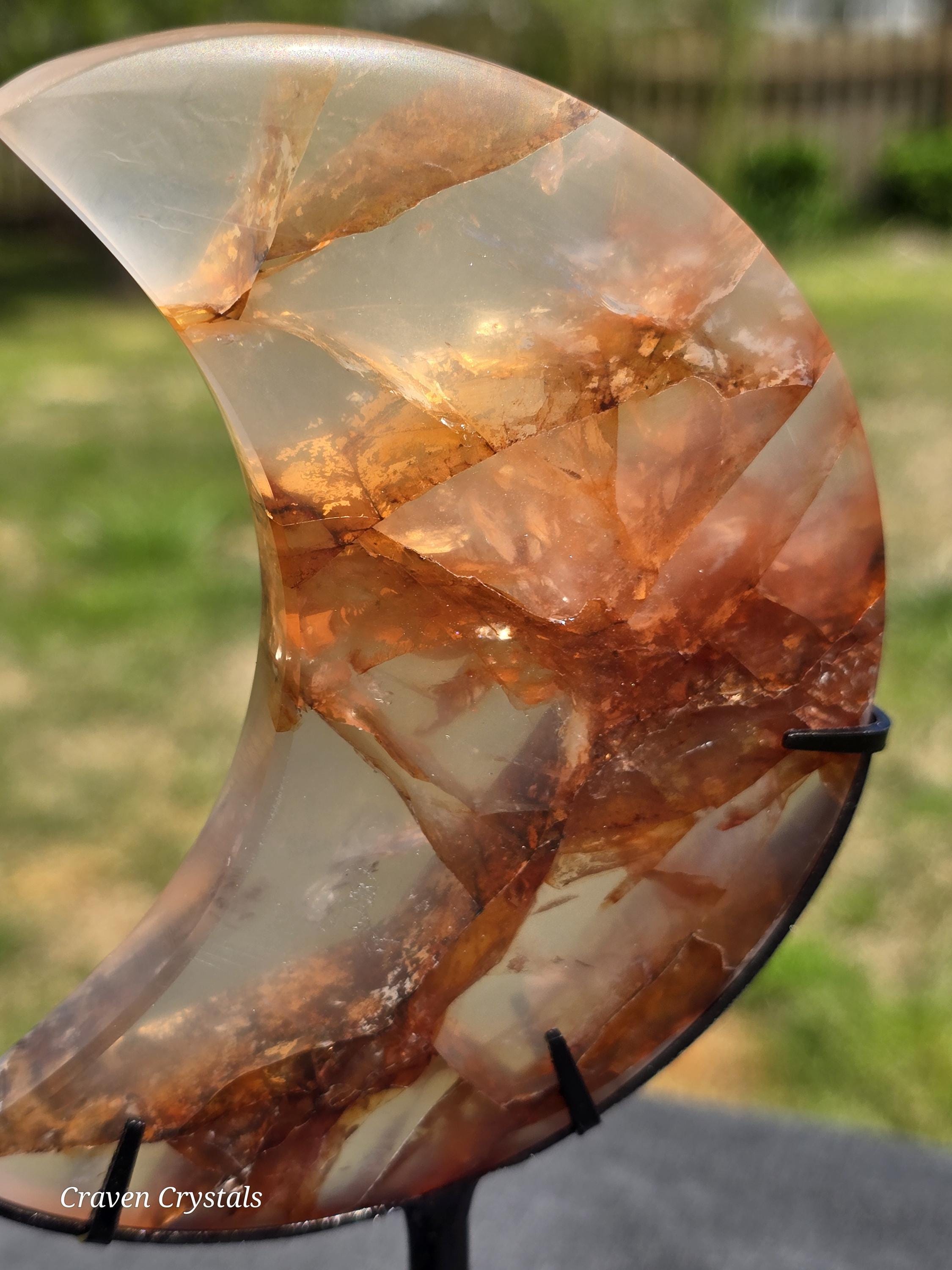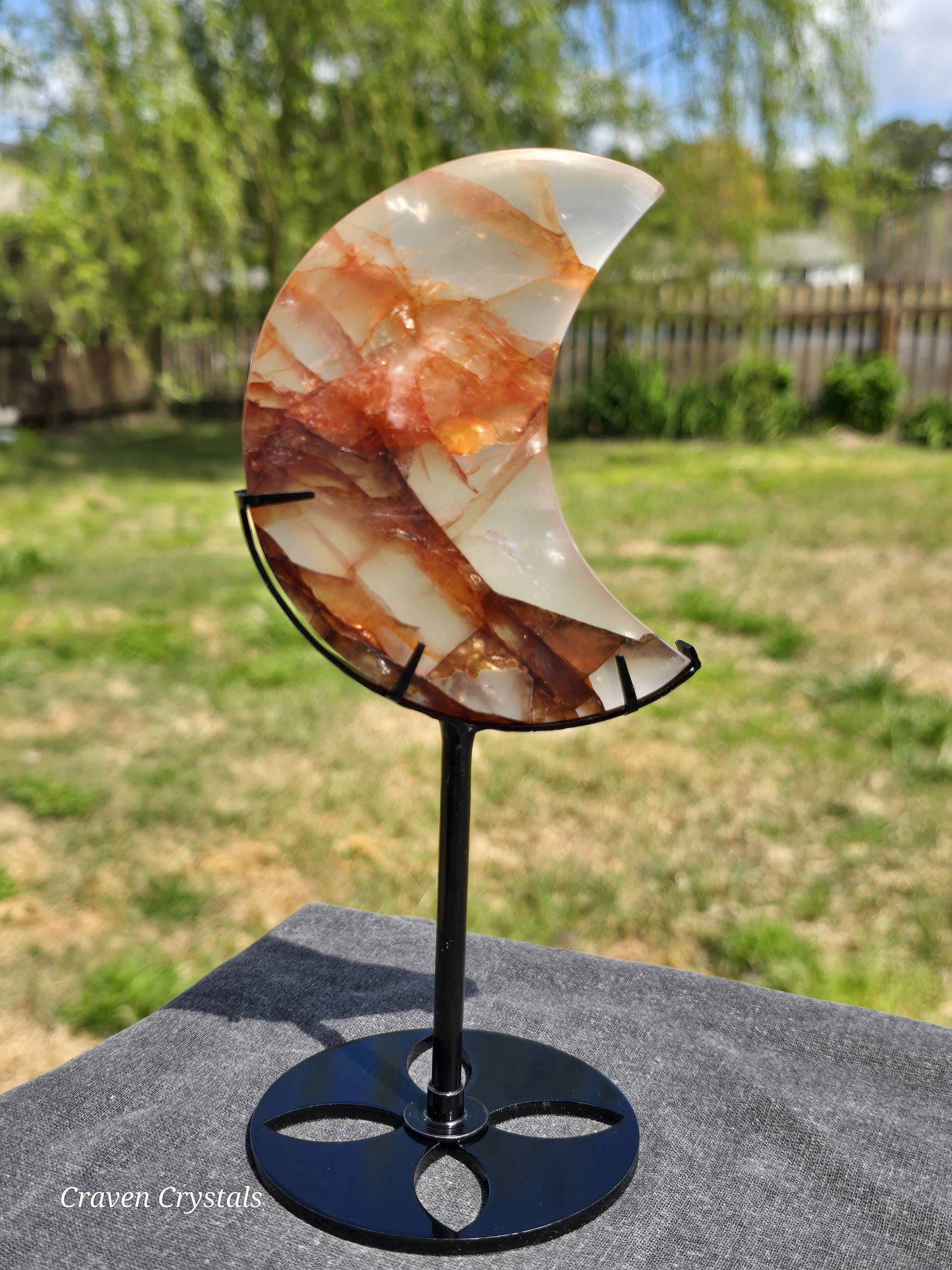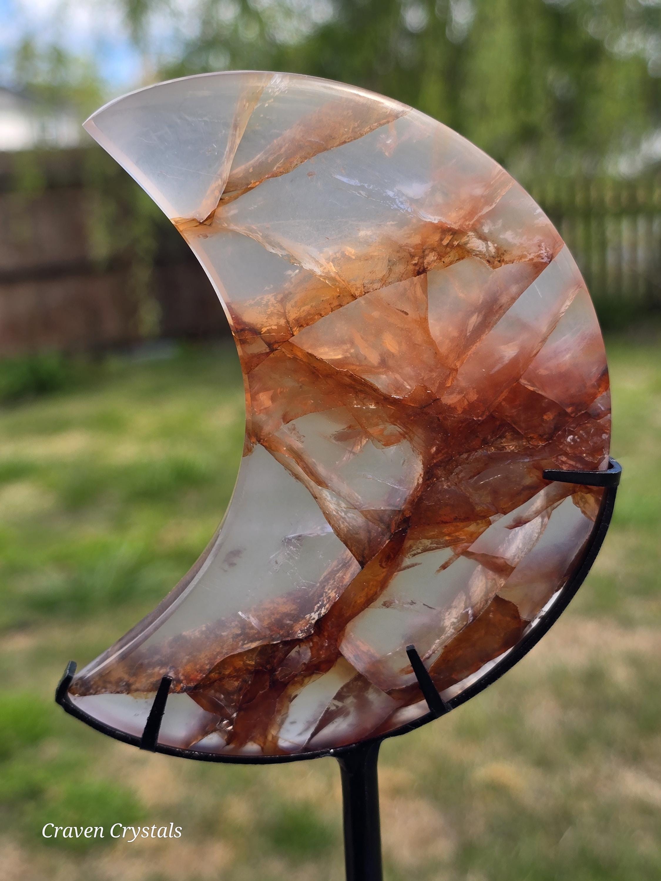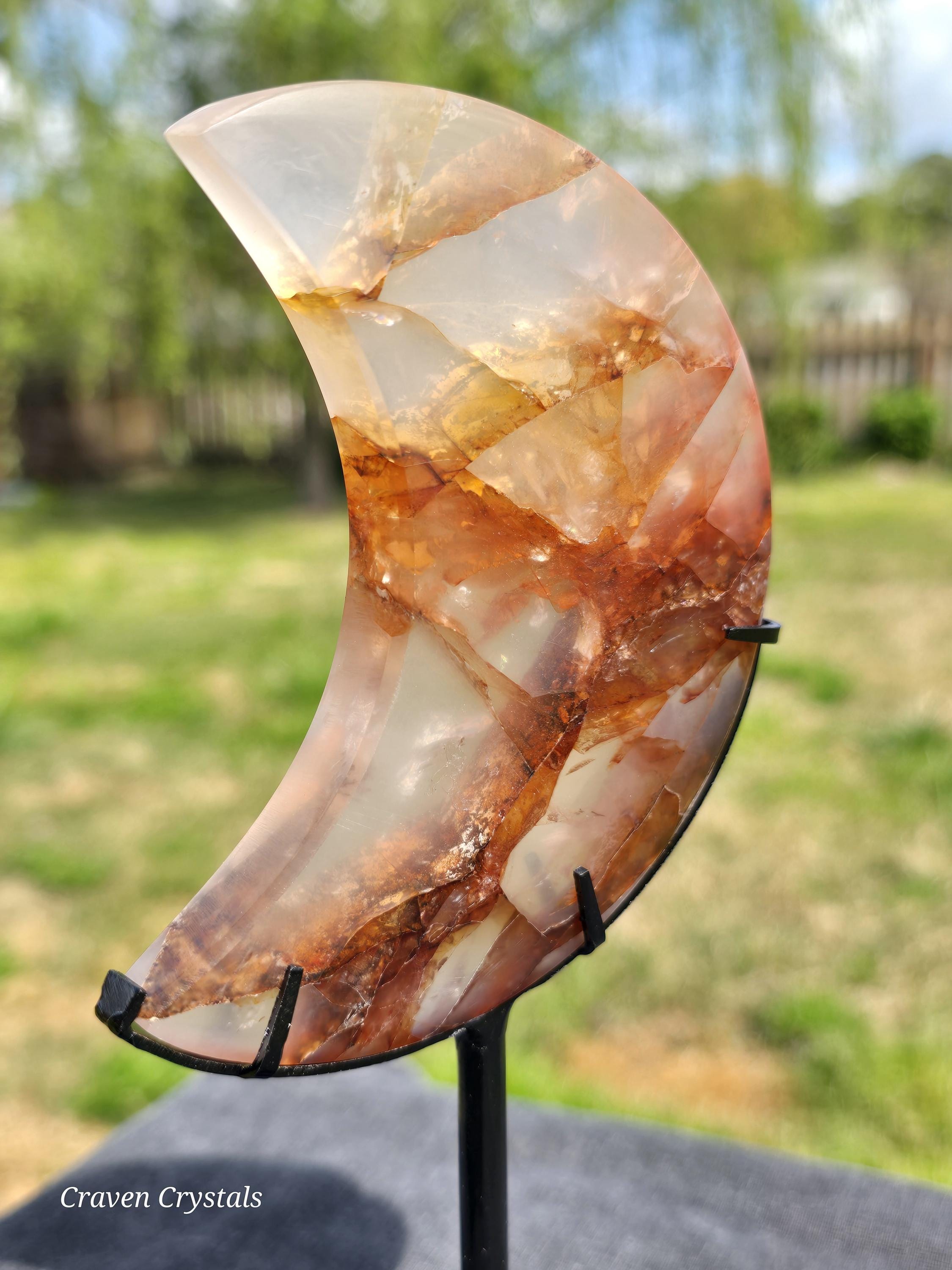Moon-shaped crystals are often associated with lunar energy and the moon's cycles. The moon is linked to feminine energy, intuition, emotions, and the ebb and flow of life. Crystals shaped like moons are used to harness and amplify these lunar qualities.