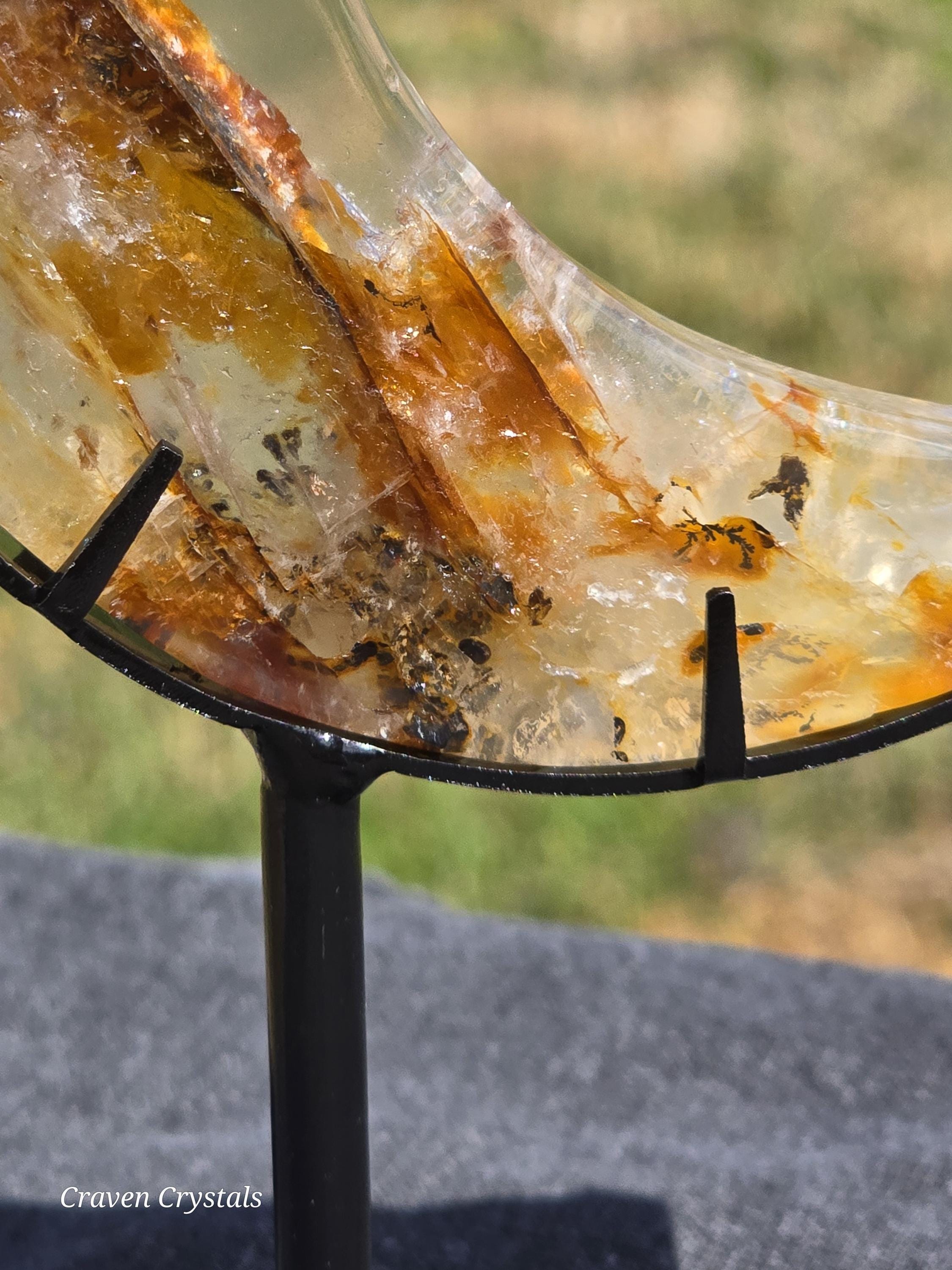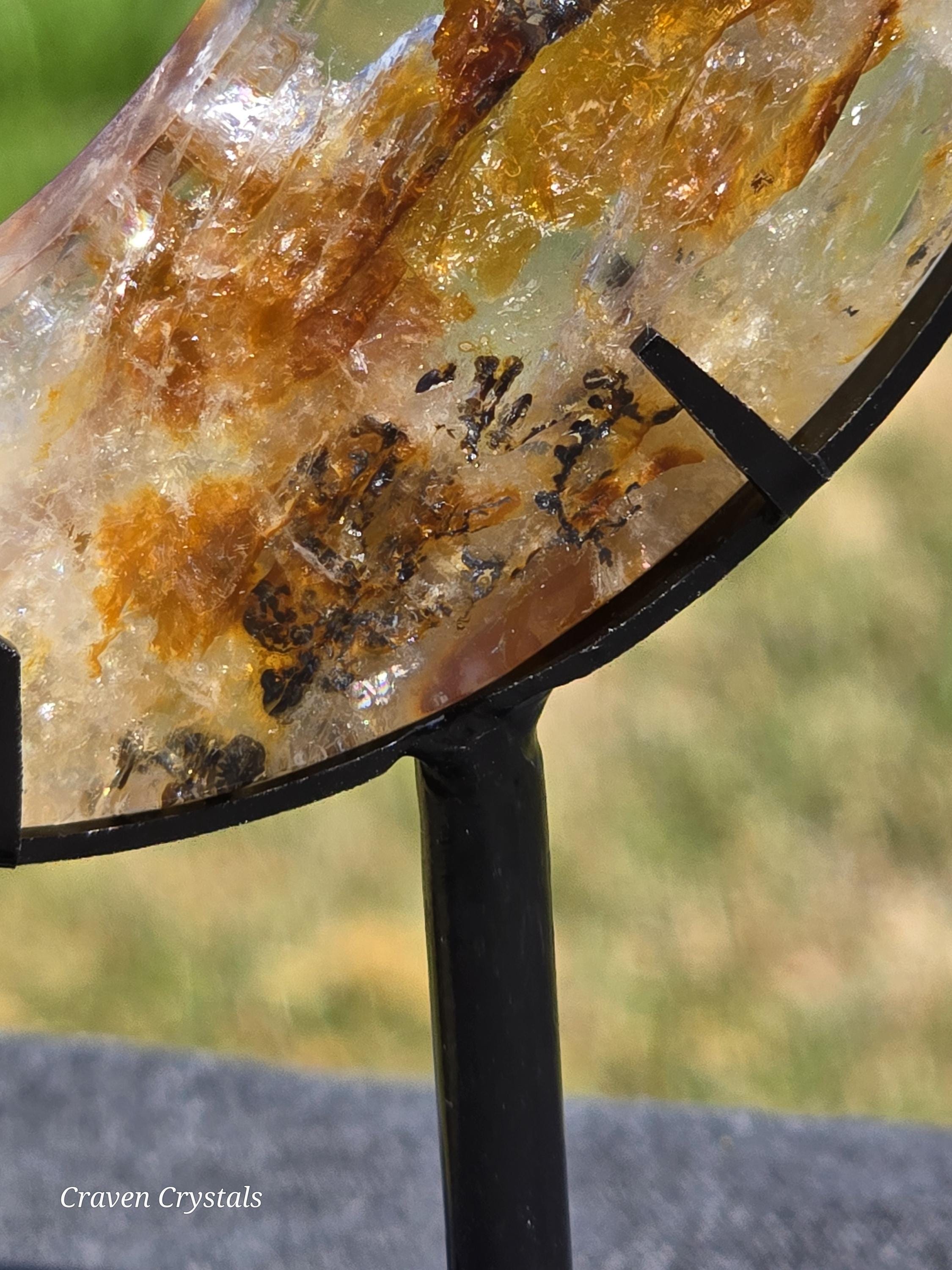 B~ approximately 3.57" wide x 6.25" tall - more clear with dendritic inclusions, small natural chip where the line of Hematoid meets the end.
