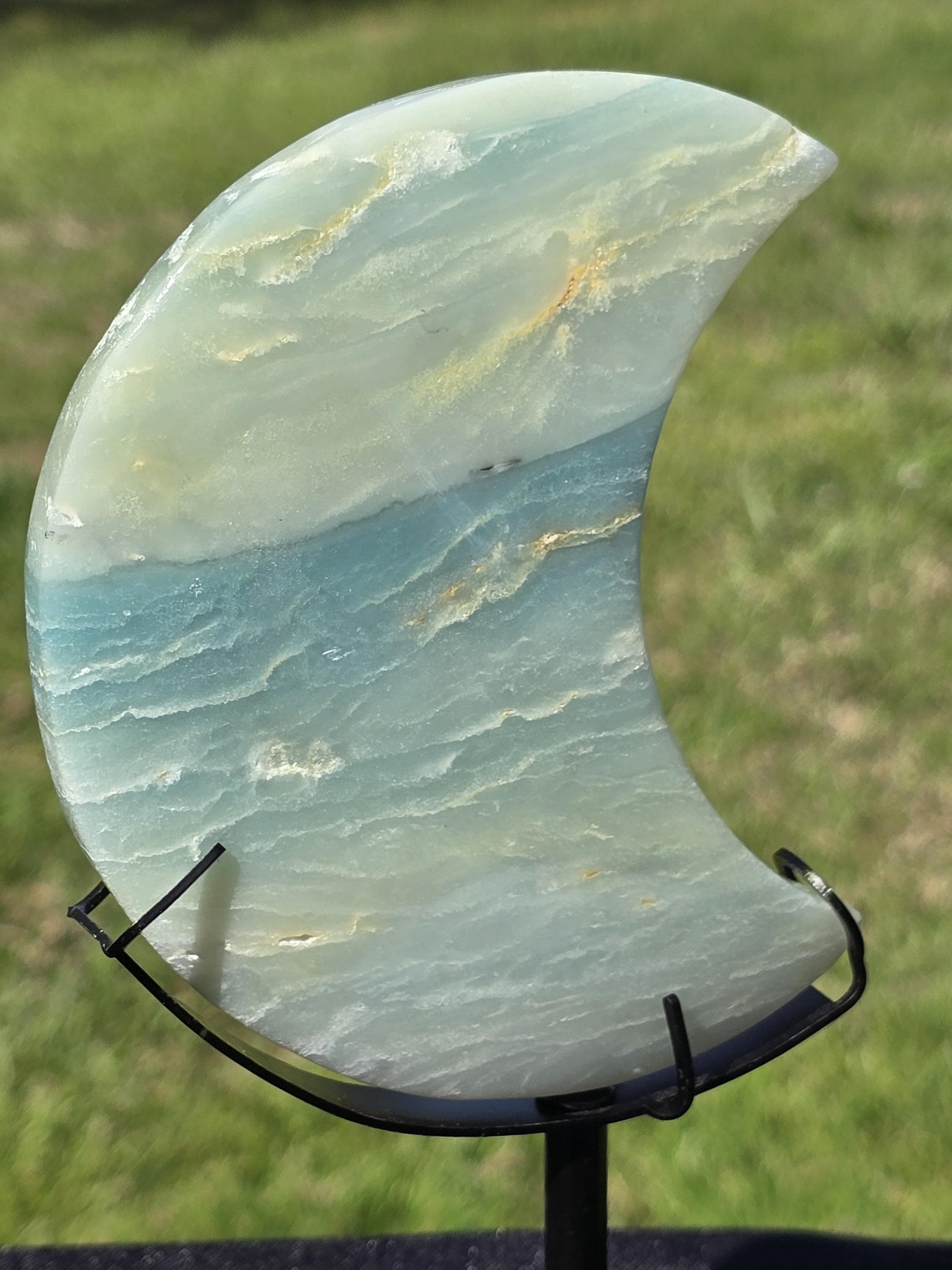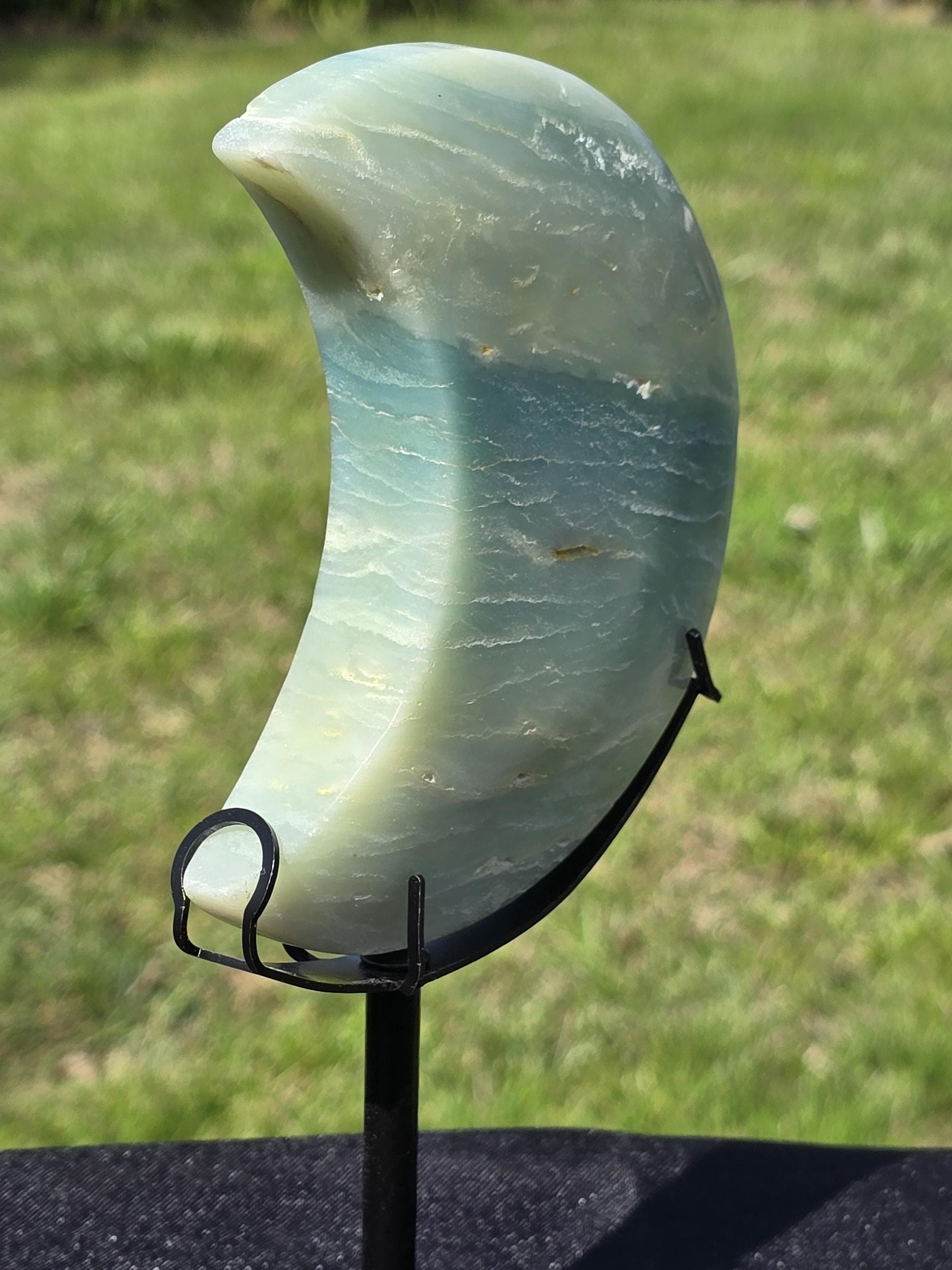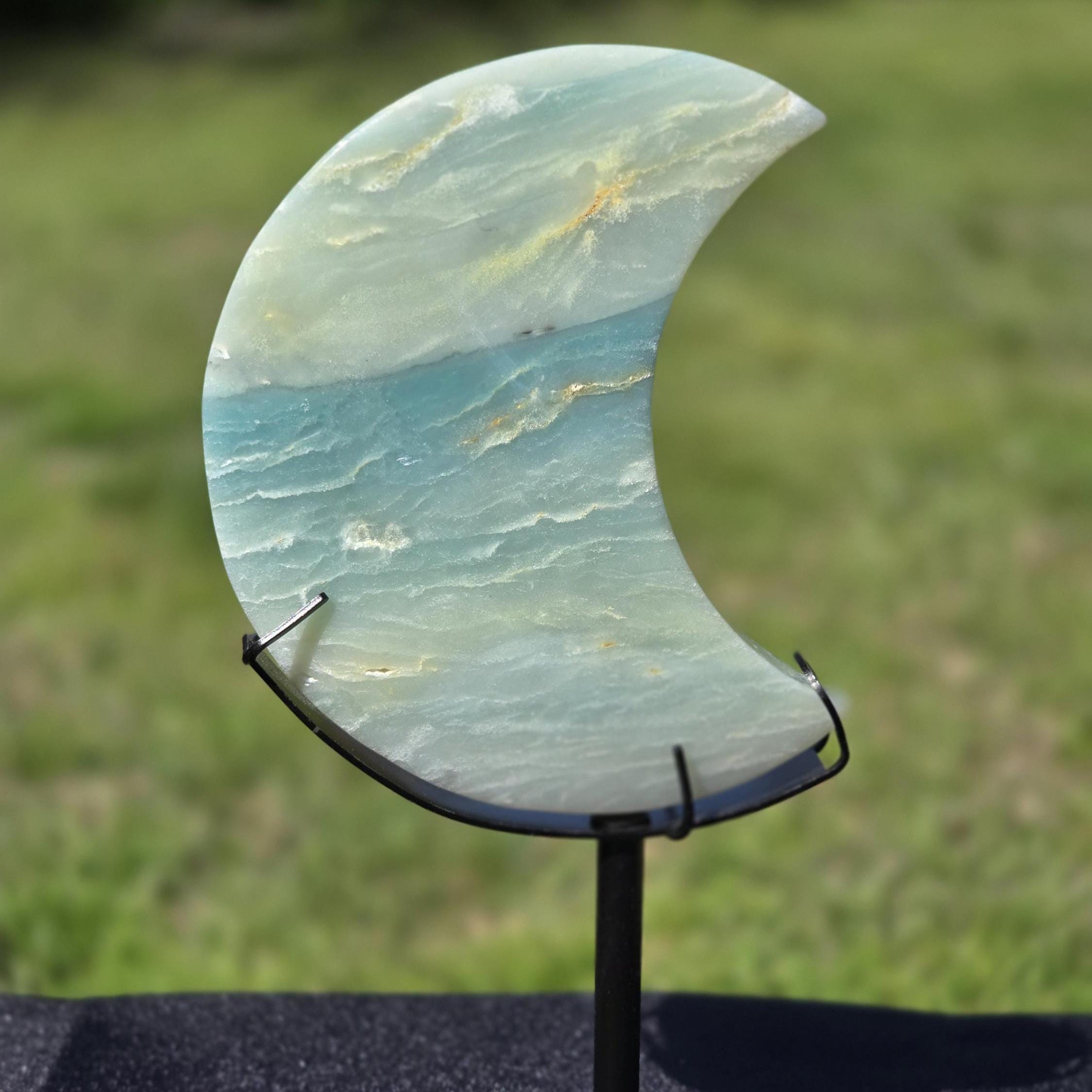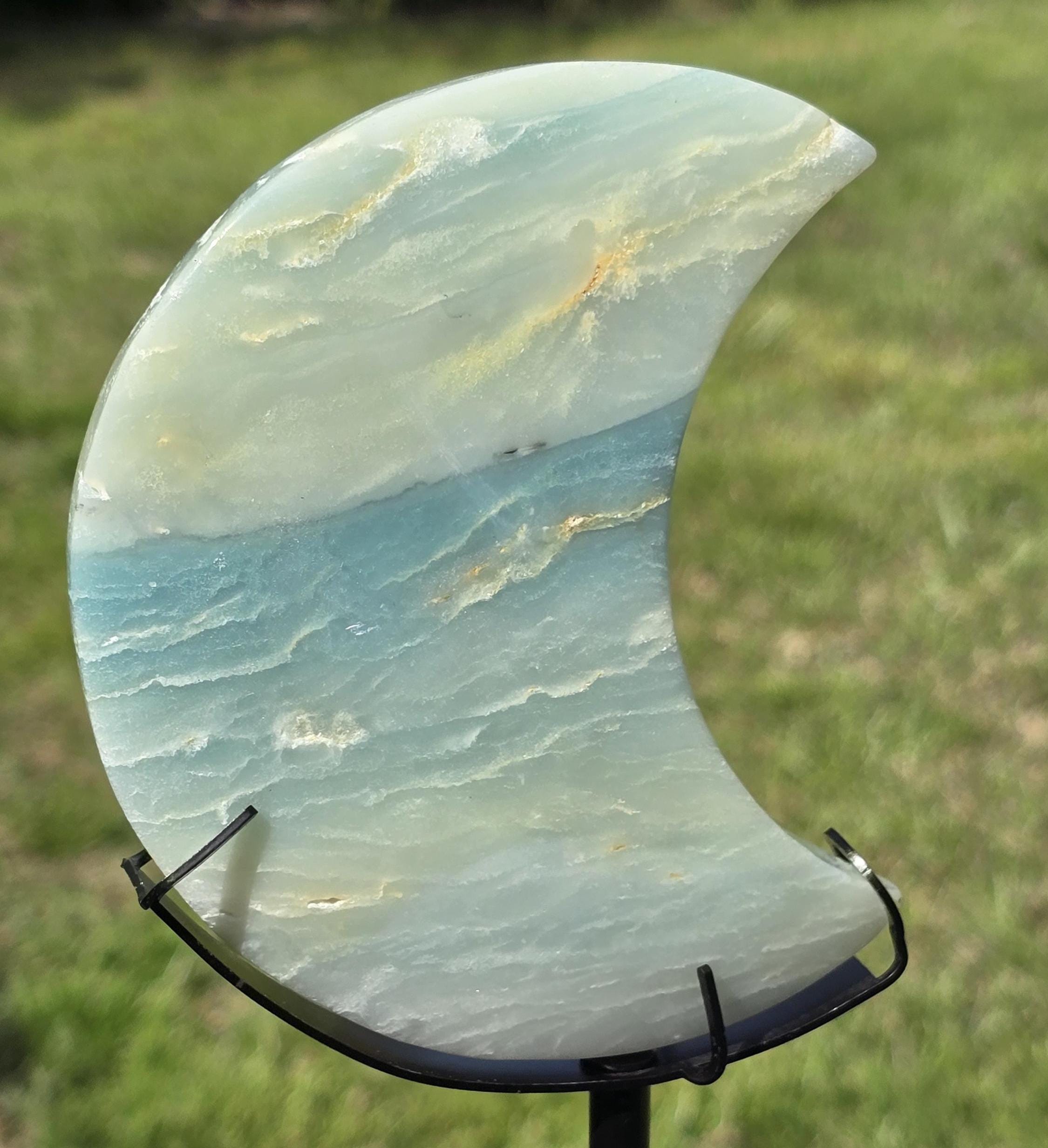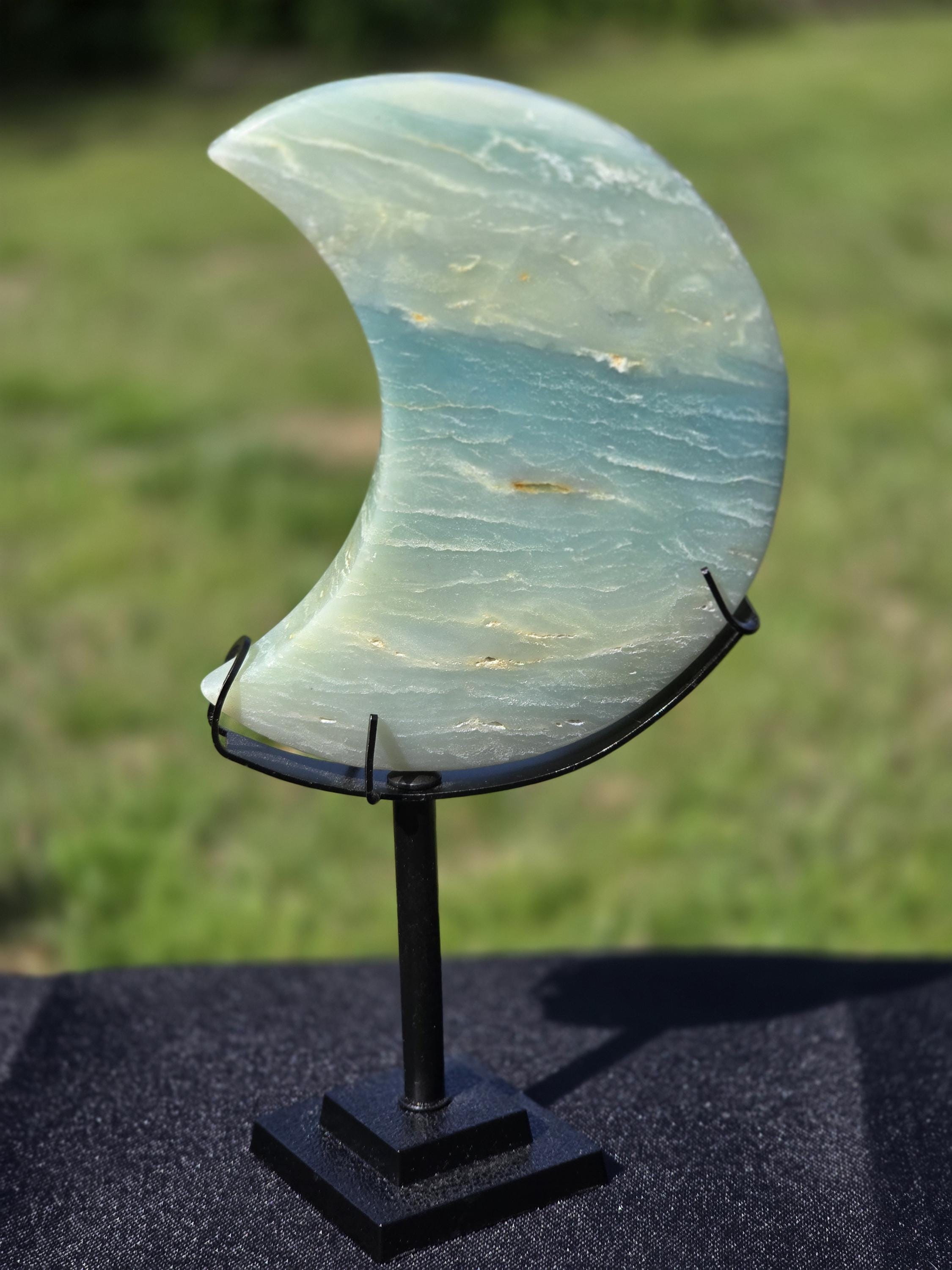 Moon-shaped crystals are often associated with lunar energy and the moon's cycles. The moon is linked to feminine energy, intuition, emotions, and the ebb and flow of life. Crystals shaped like moons are used to harness and amplify these lunar qualities.