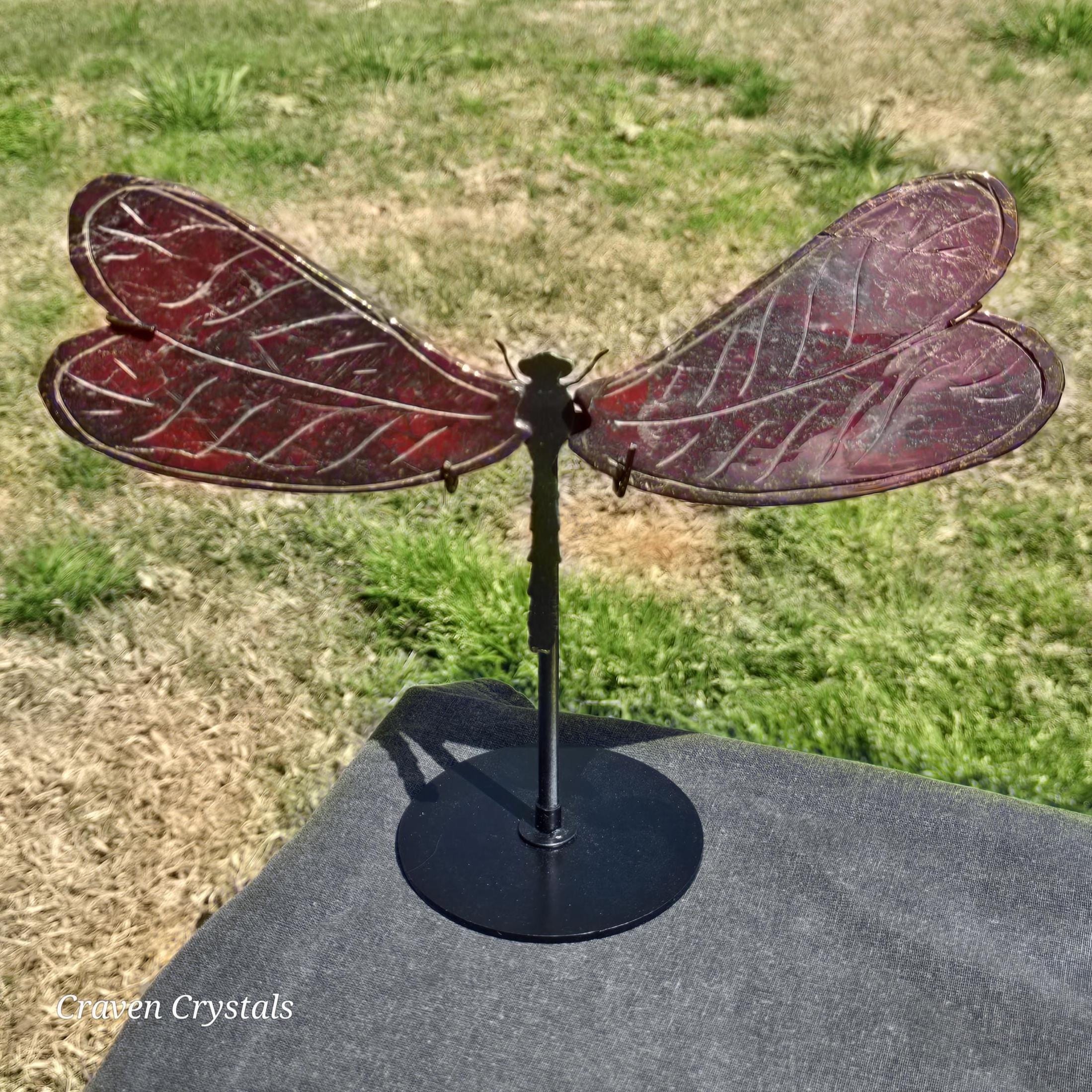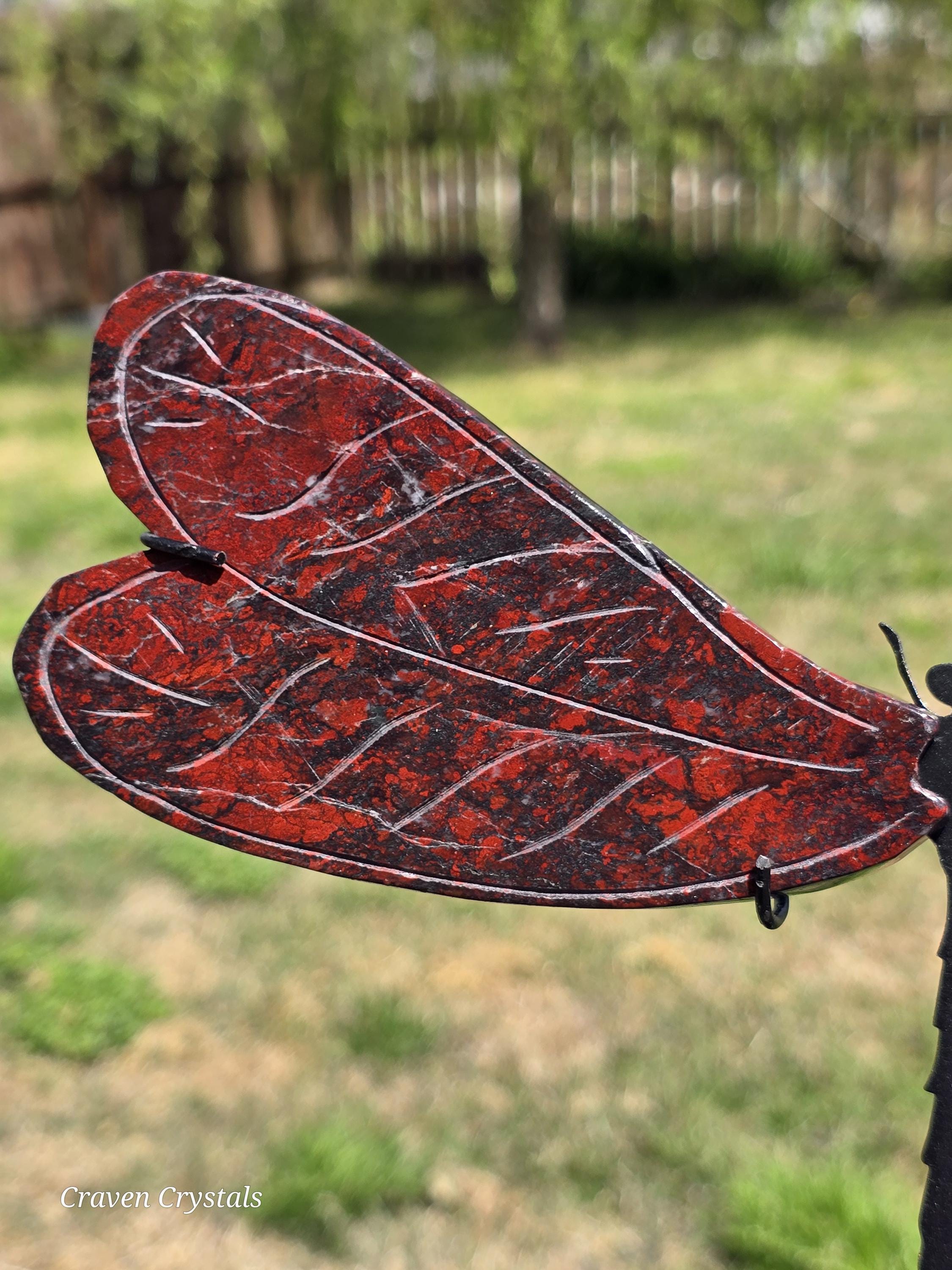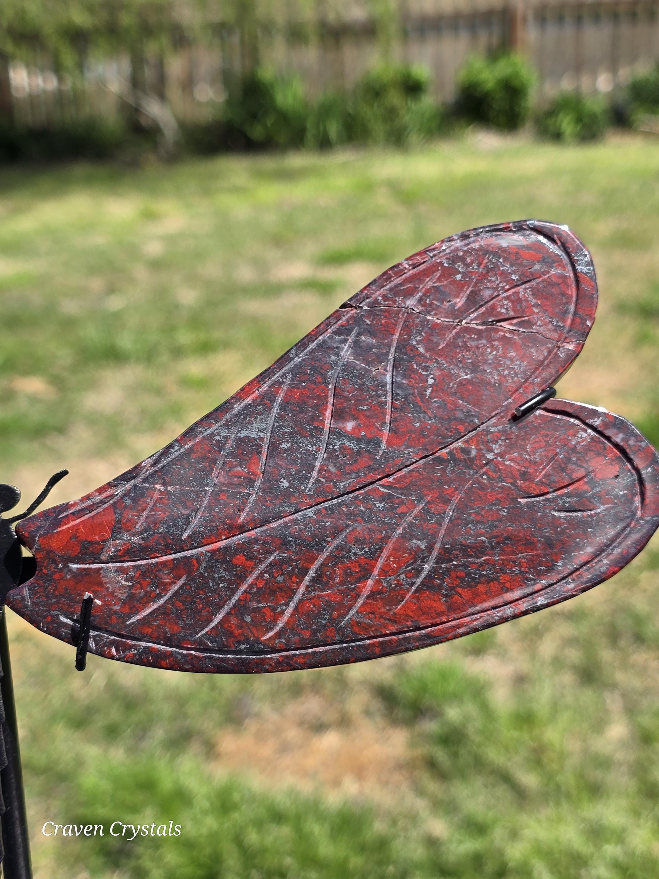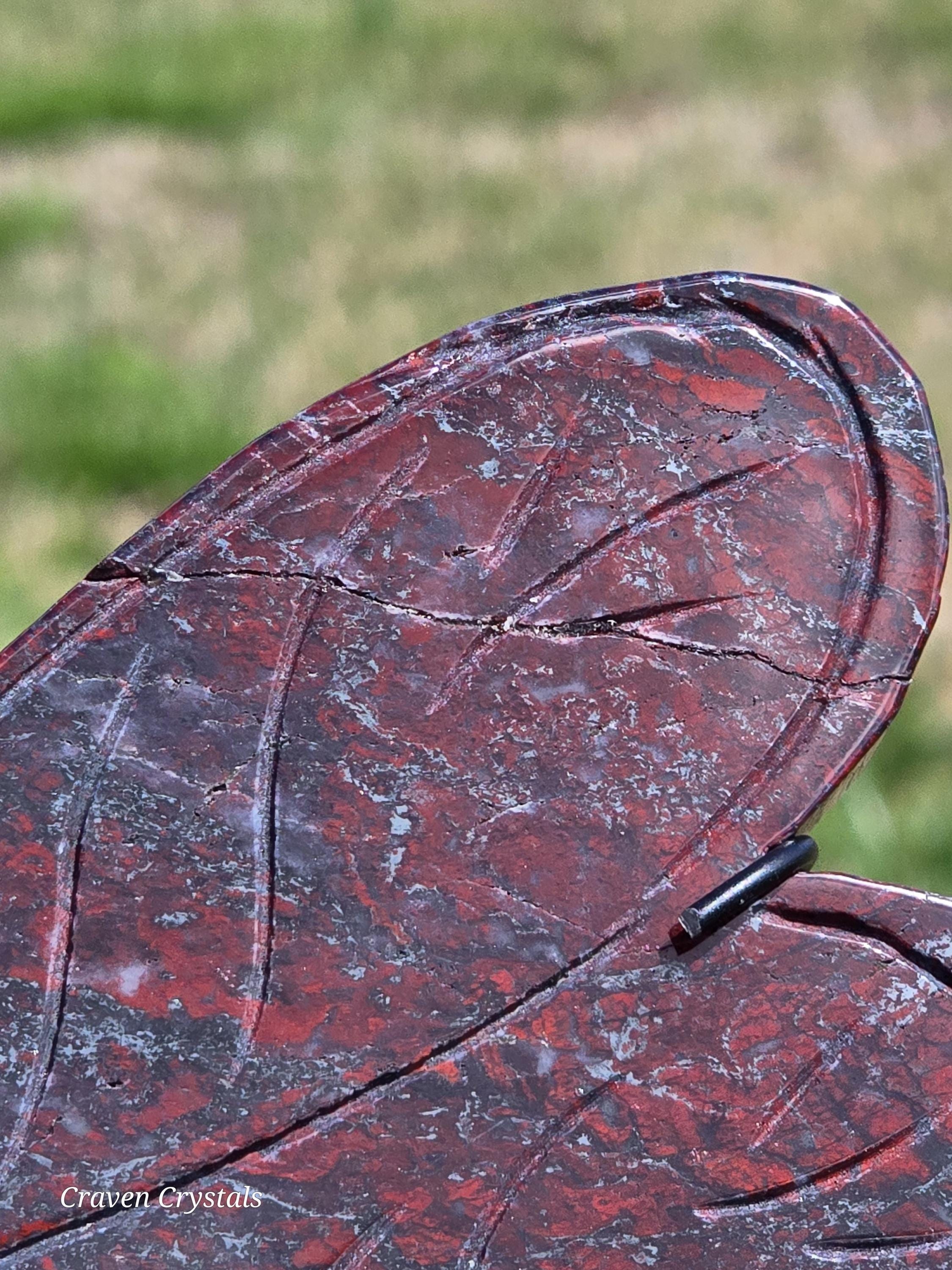 Beautiful deep Red Iron Banded Jasper Crystal Dragonfly Wings with silver metallic streaks