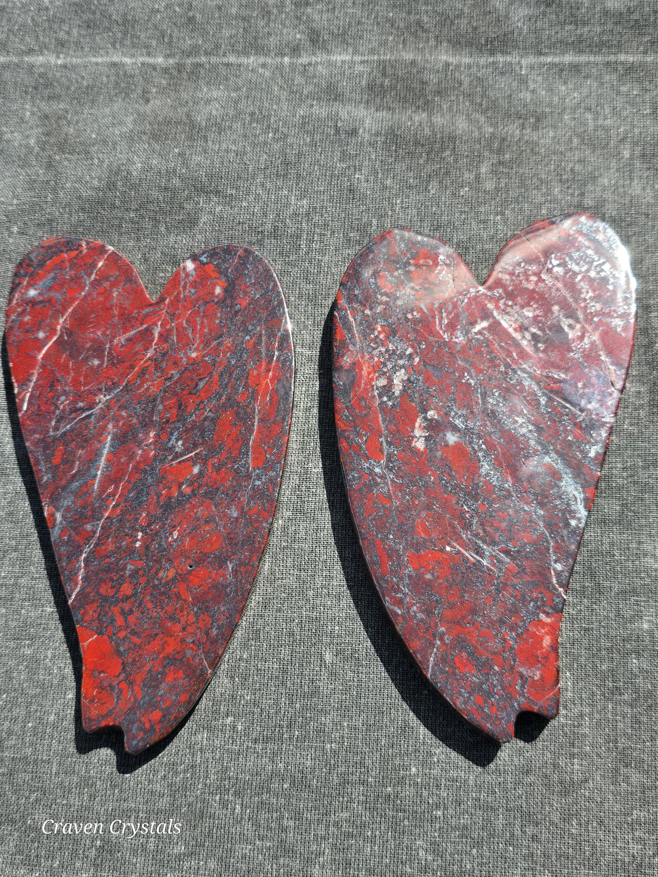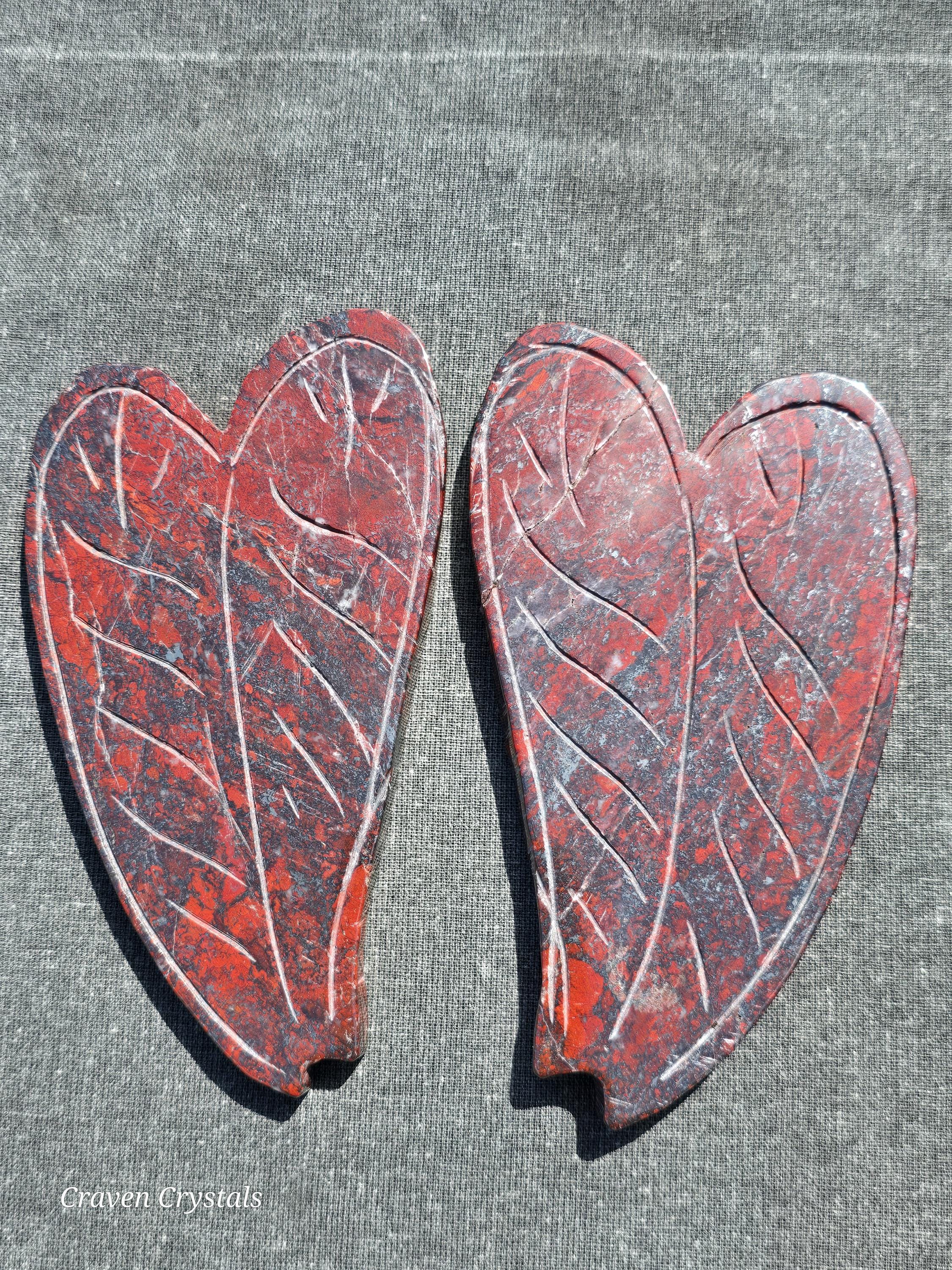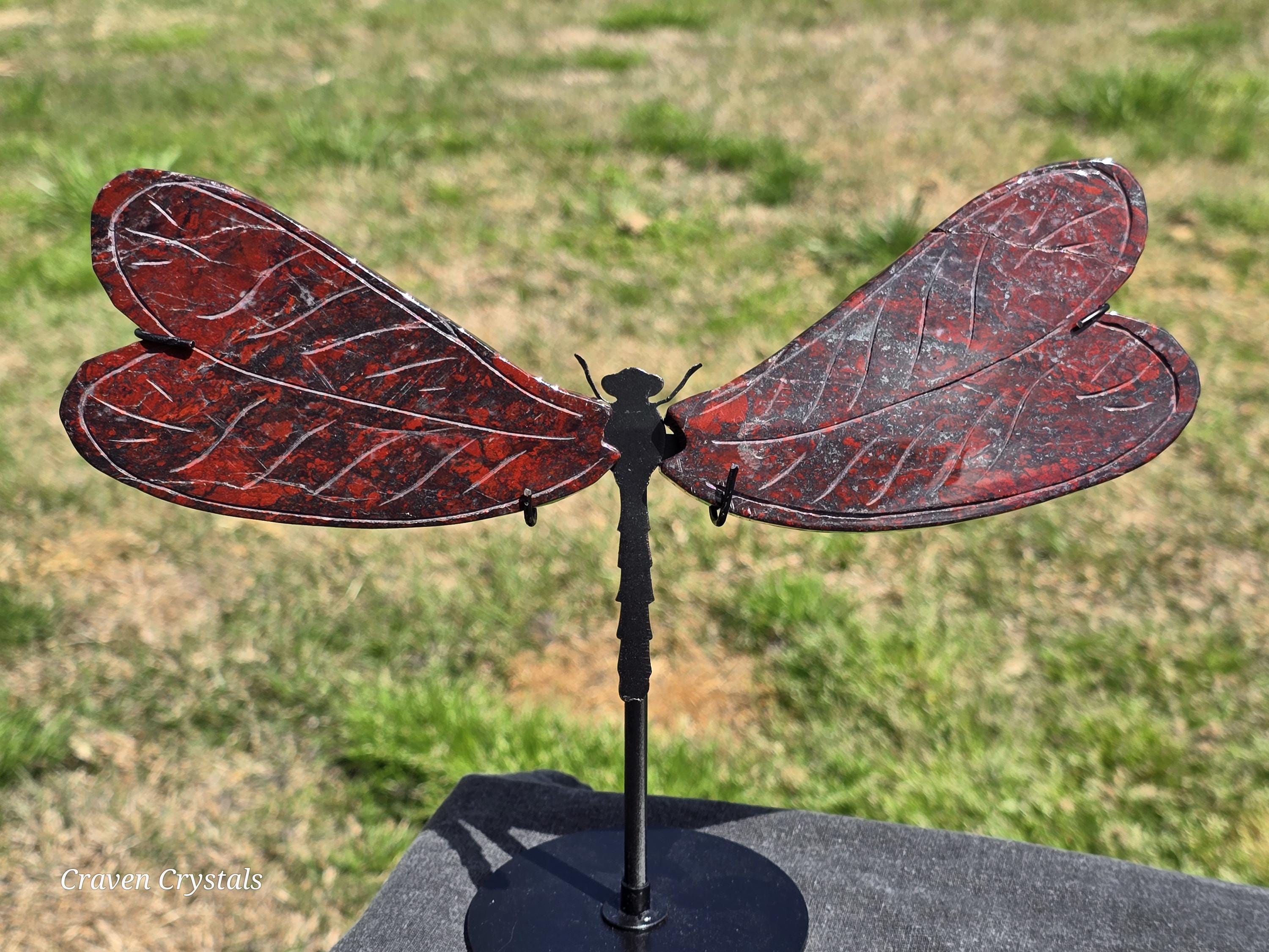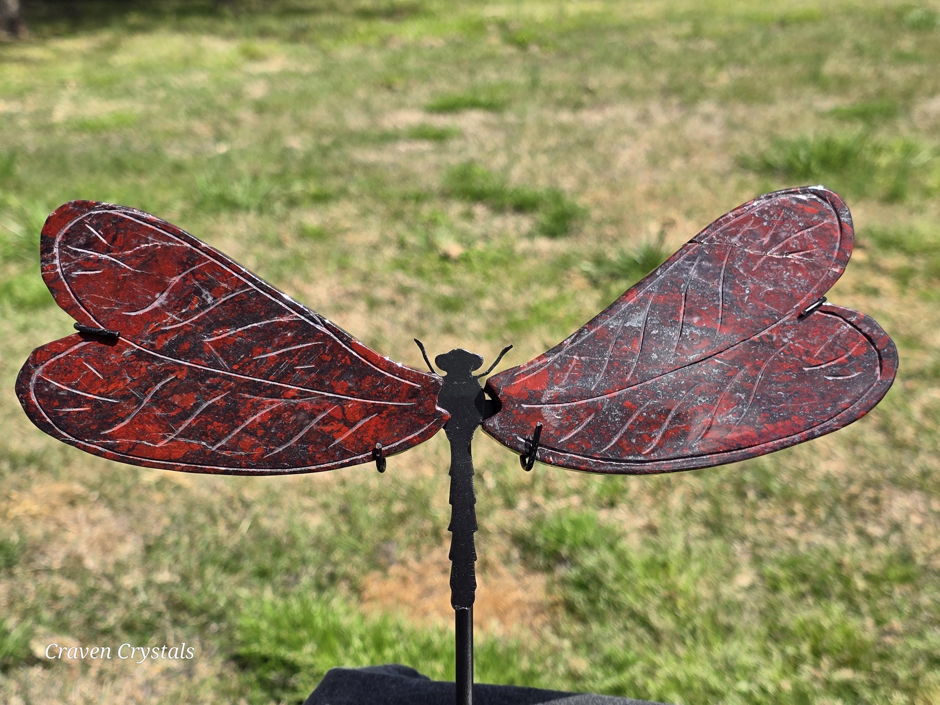 Beautiful deep Red Iron Banded Jasper Crystal Dragonfly Wings with silver metallic streaks