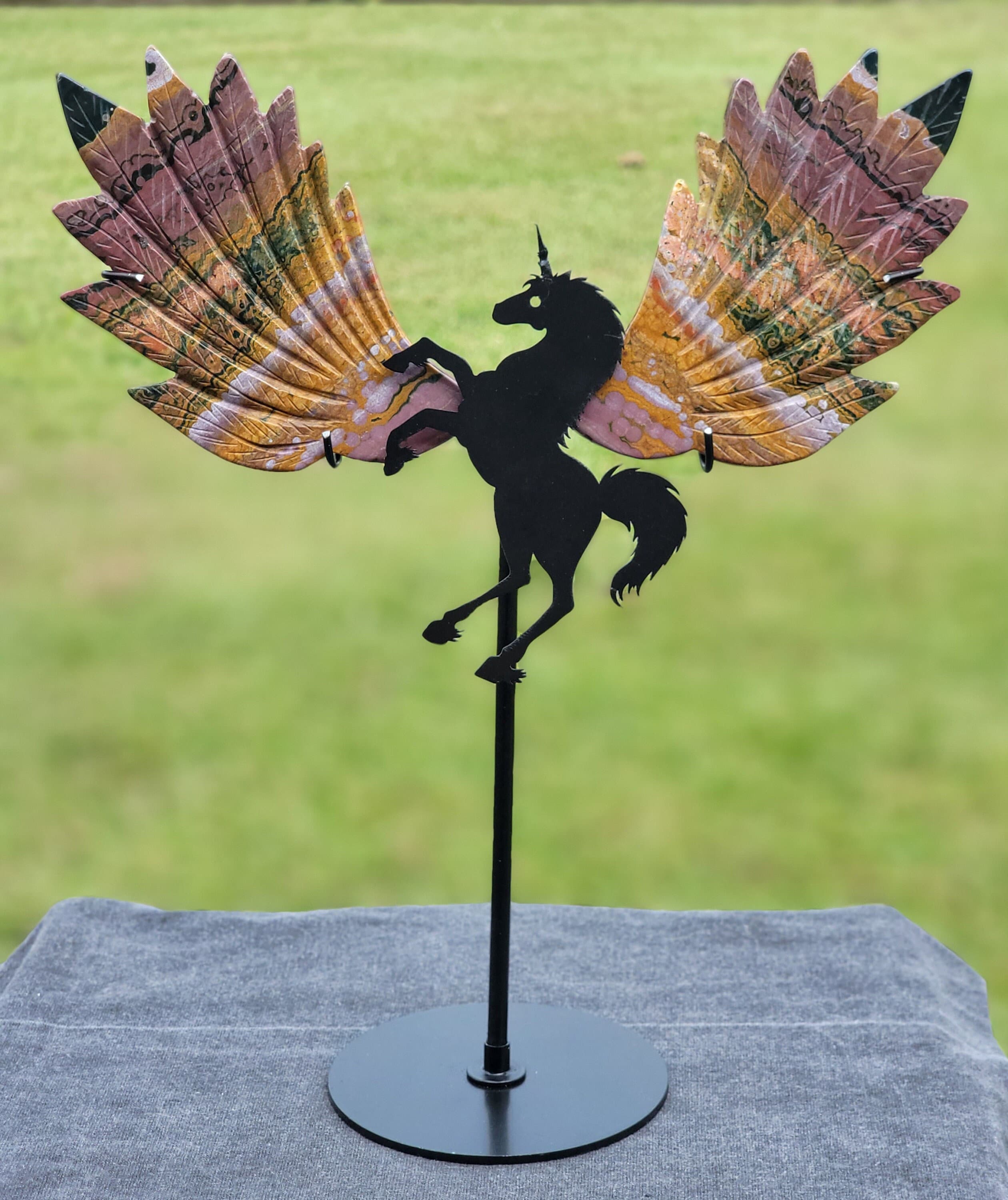 Stunning rare 8th Vein Orbicular Ocean Jasper Crystal Unicorn Pegasus Wings with an amazing mix of colors, banding and orbs.