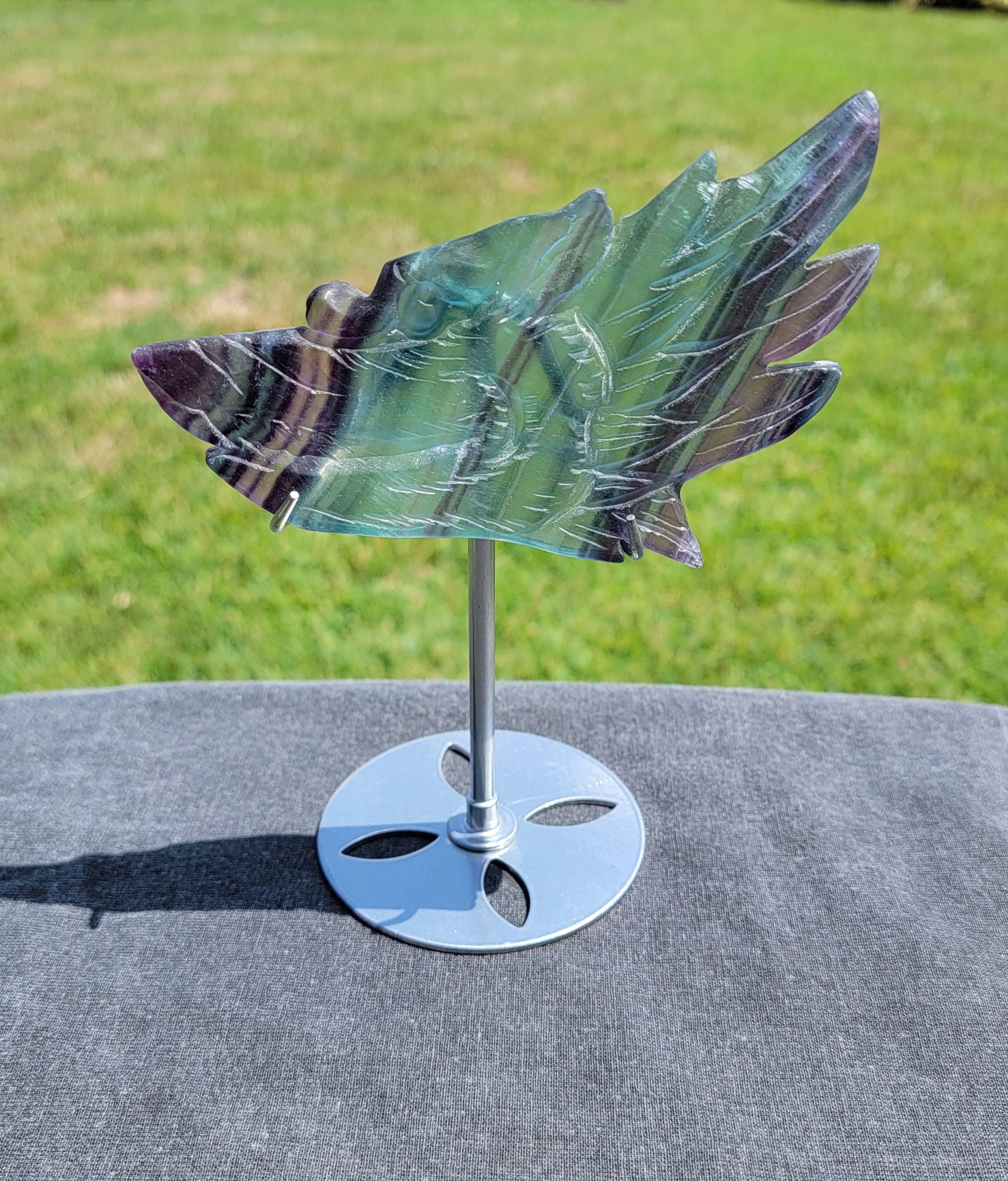 Awesome Rainbow Fluorite Crystal Wolf with bands of green, blue and purple
